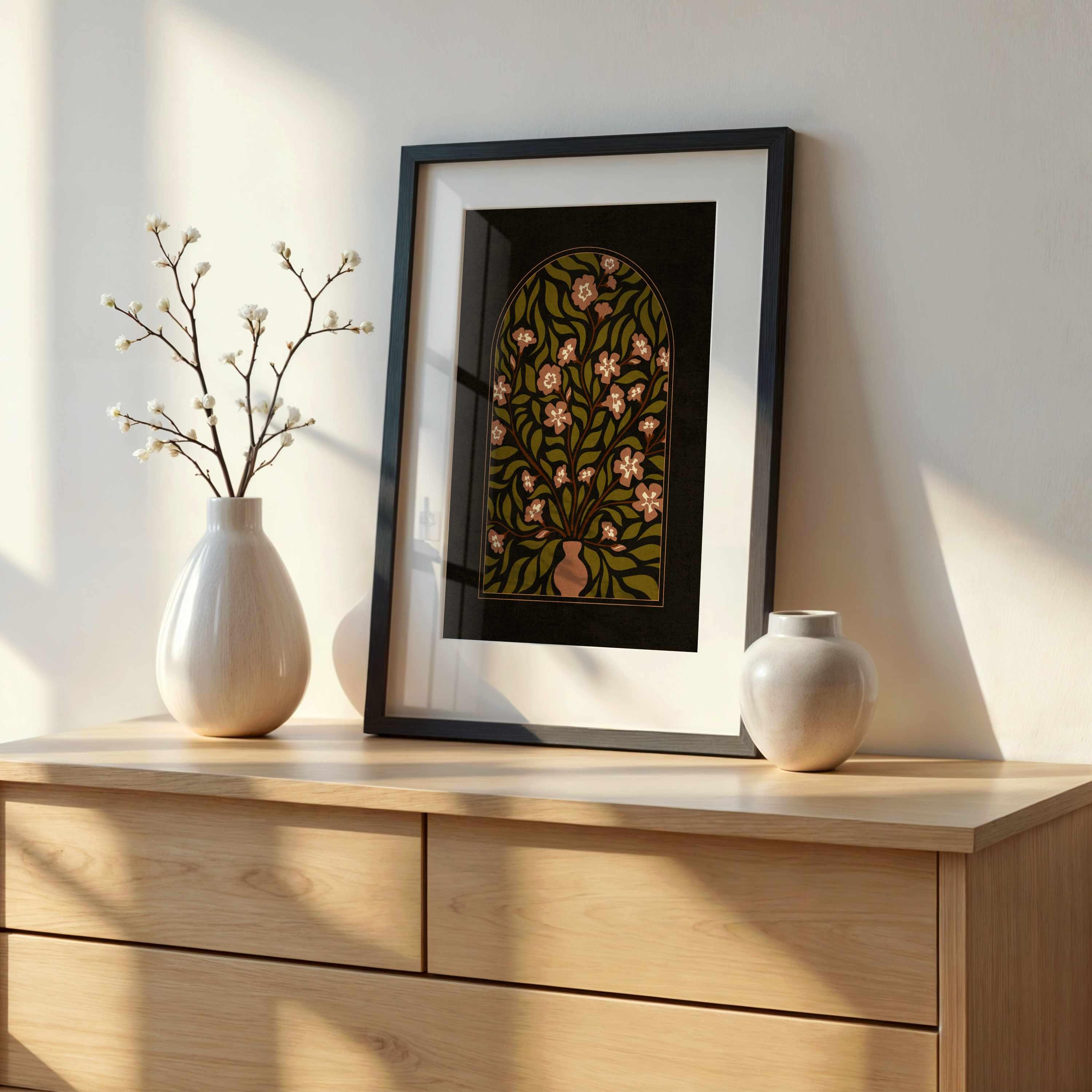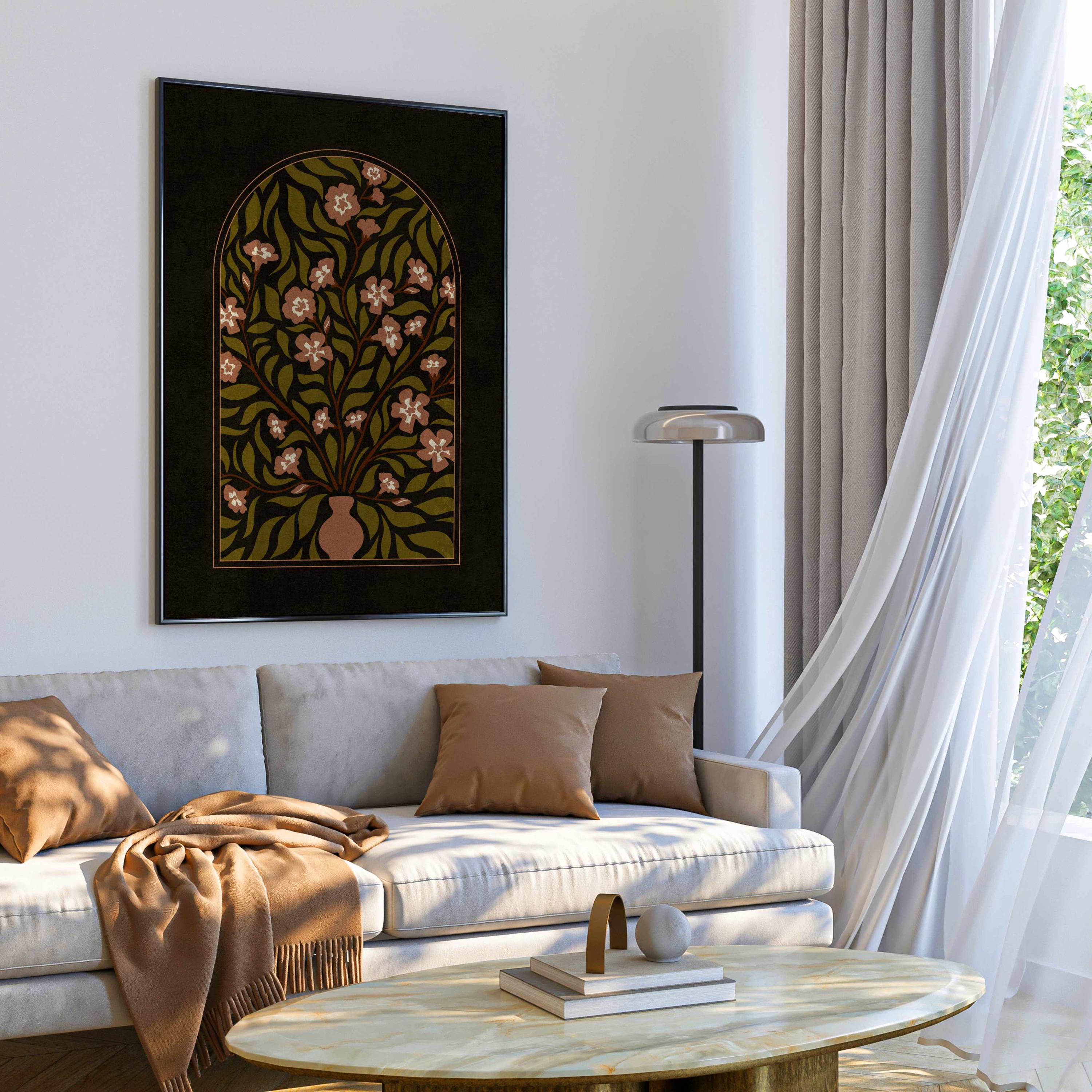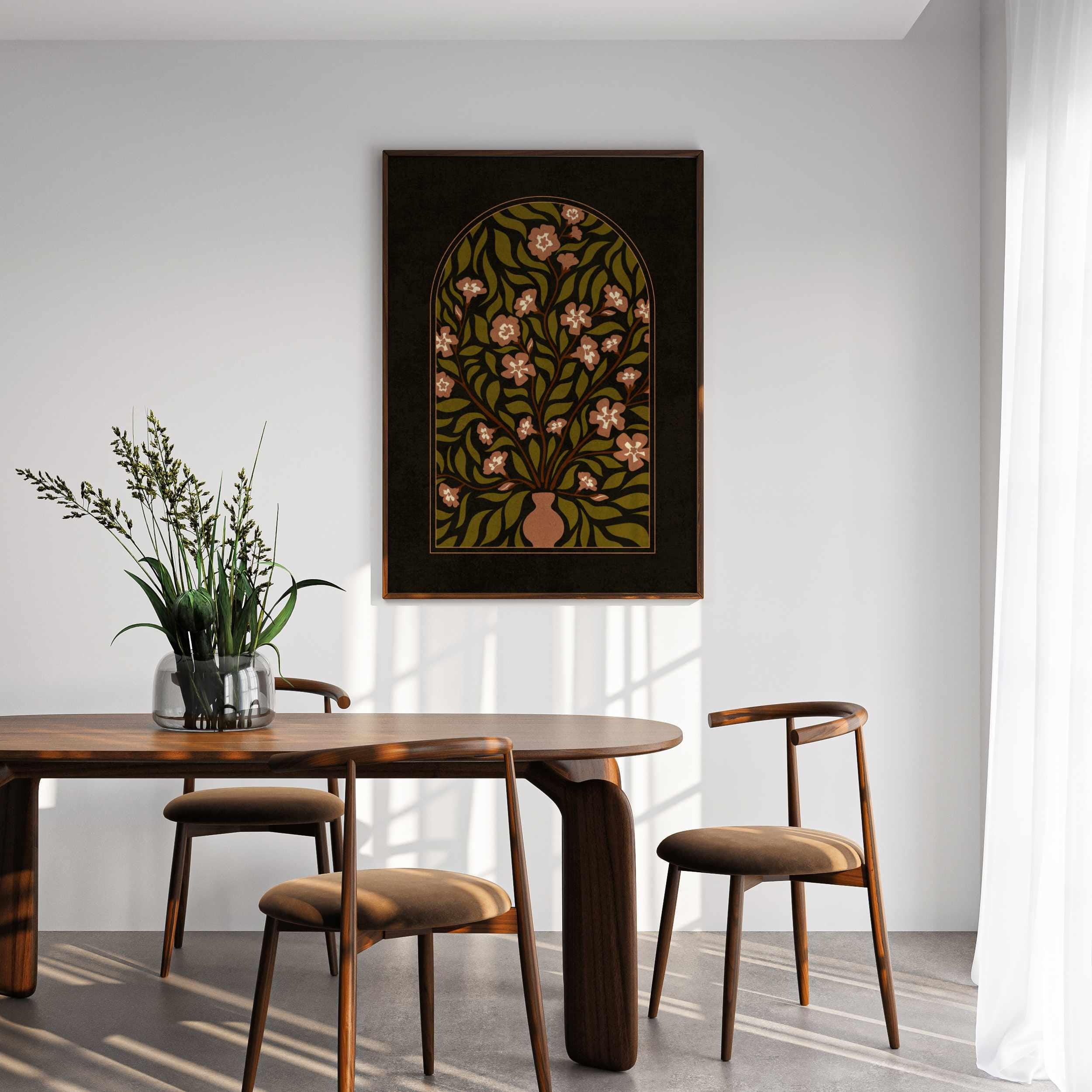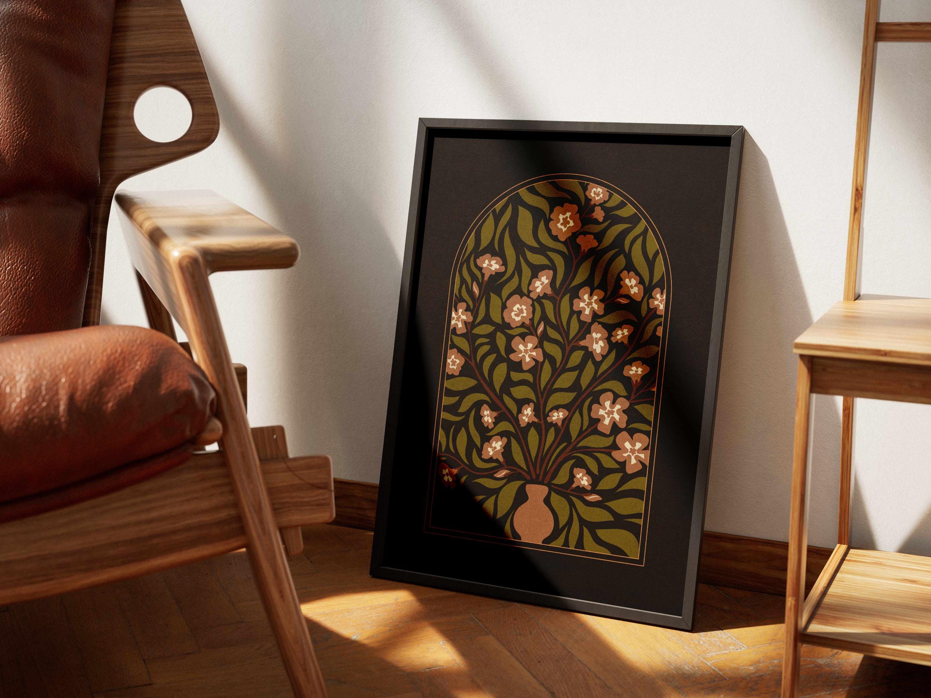 Abstract 70s matisse inspired floral artwork in lovely earthy colors. This retro botanical art print is perfect for enhancing up any mid century modern, boho or retro space, be it your living room, bedroom, office or anywhere else. It also makes a thoughtful and unique gift for your friend for a special event like Christmas, birthday, or housewarming.