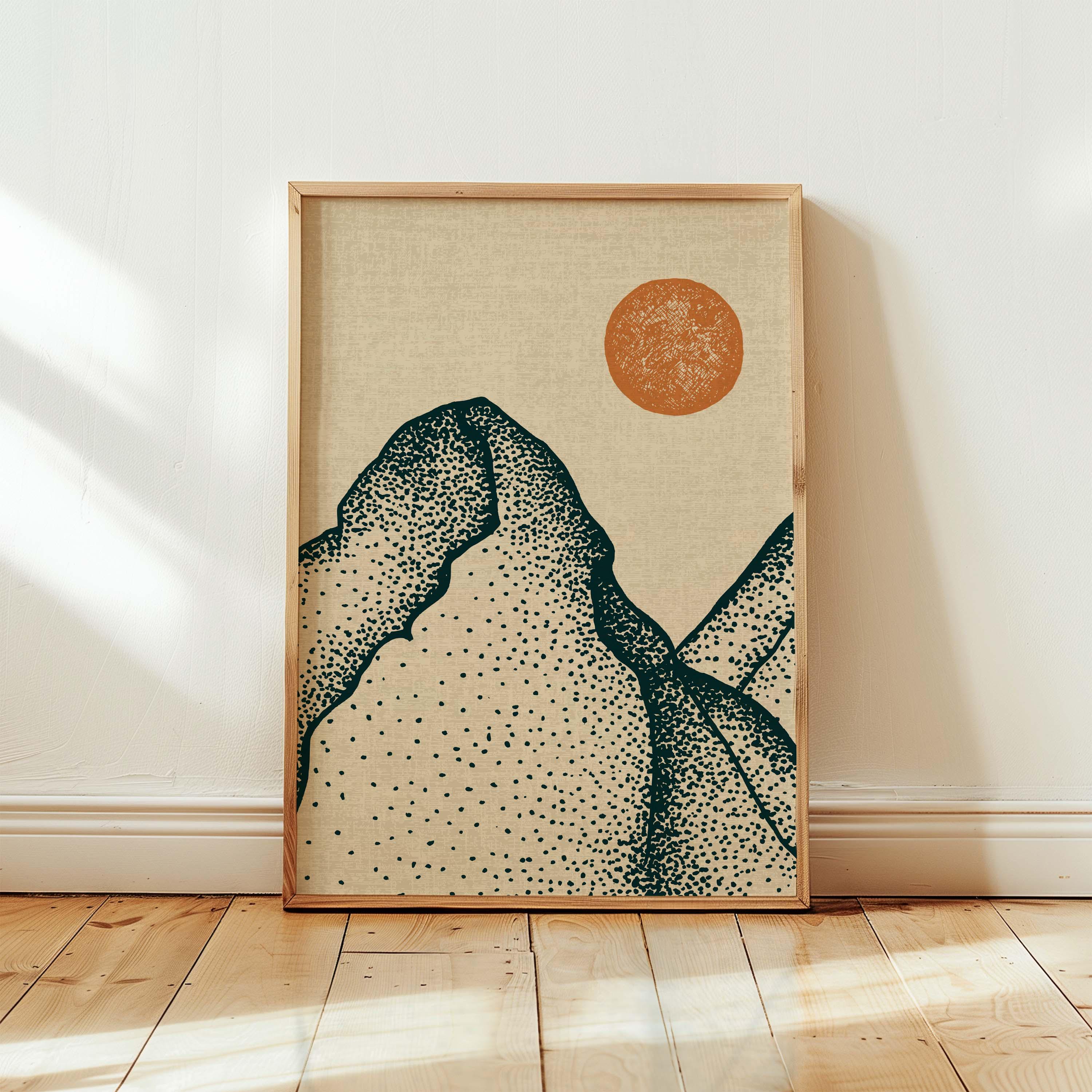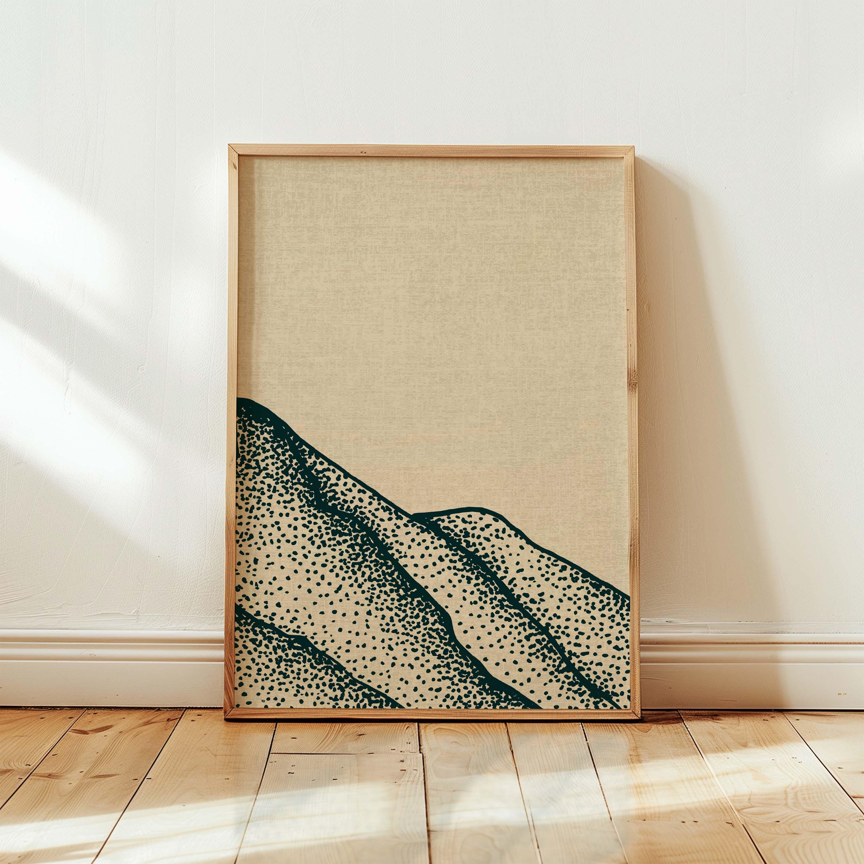 This set features three art prints, each showcasing minimalistic dotwork style mountains on a light background. The neutral color palette makes these prints versatile, allowing them to seamlessly fit into any home decor style. It is designed to be displayed as a triptych, creating a stunning focal point on your wall.