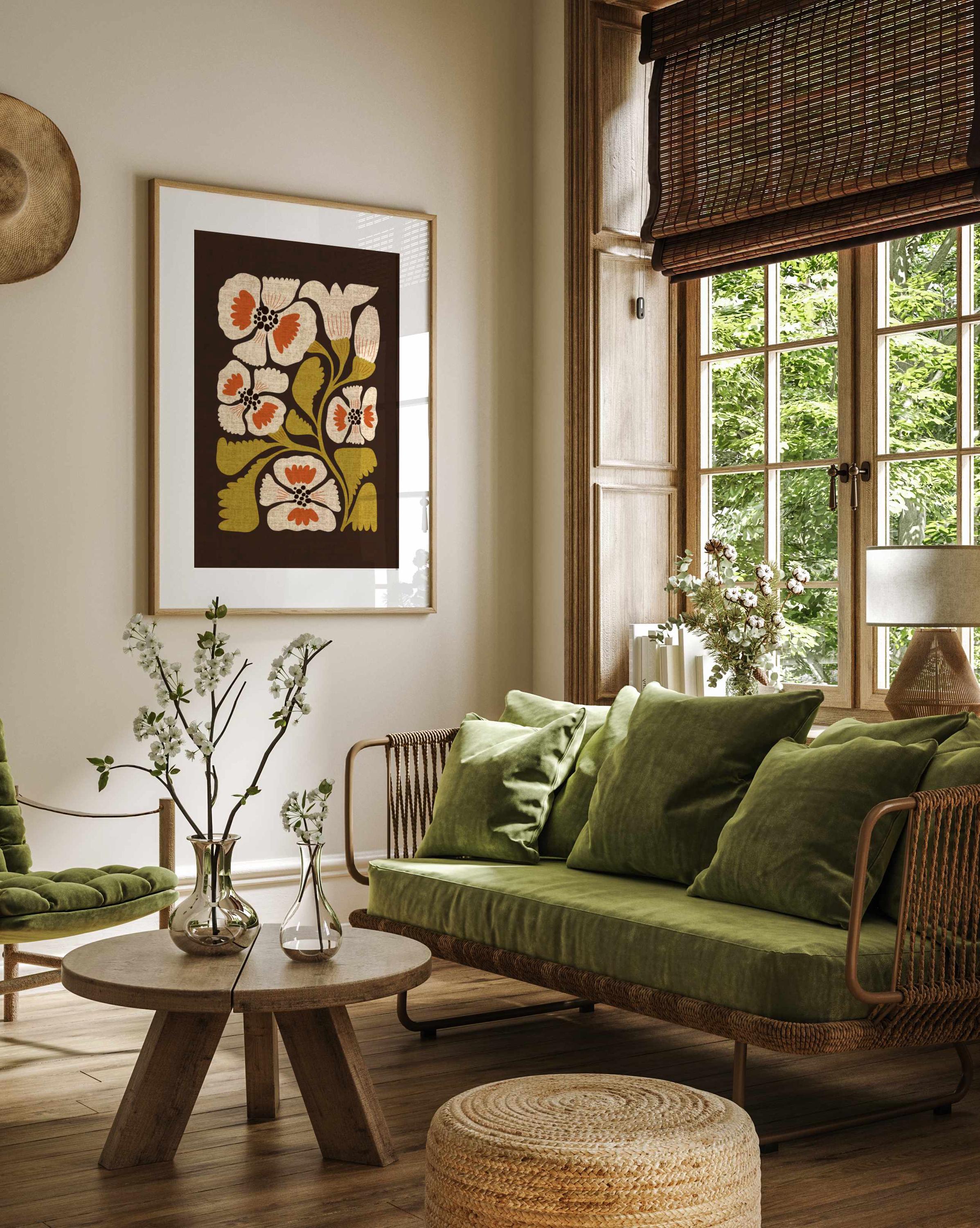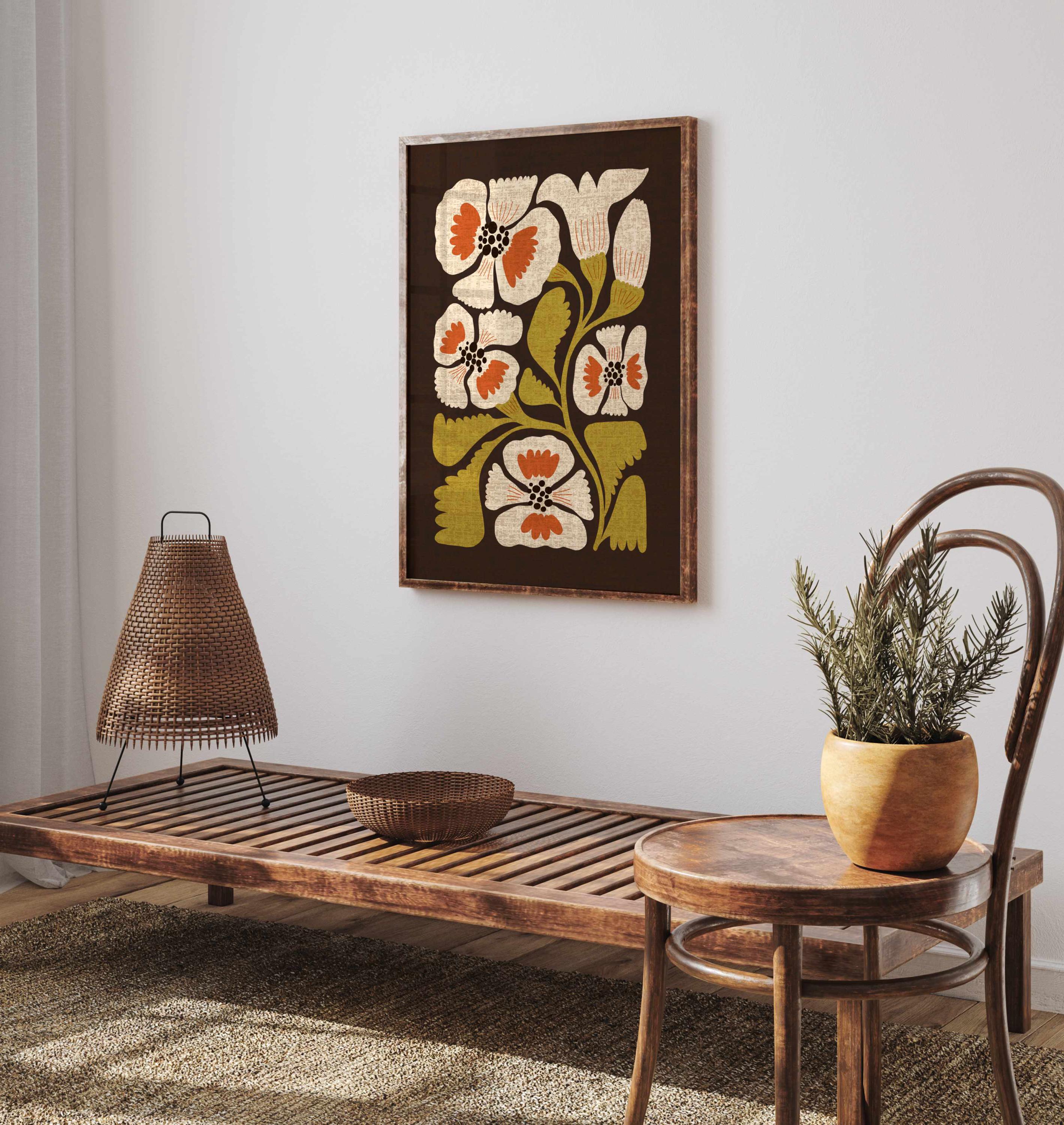 Ideal for mid century modern, boho, and vintage-inspired interiors, this print adds warmth and color to any living room, bedroom, kitchen, hallway, or gallery wall.