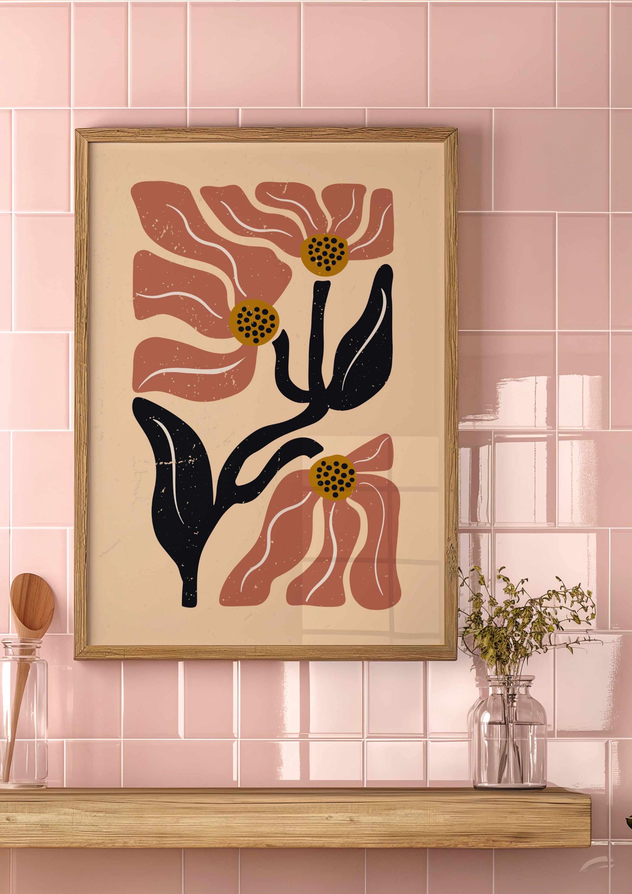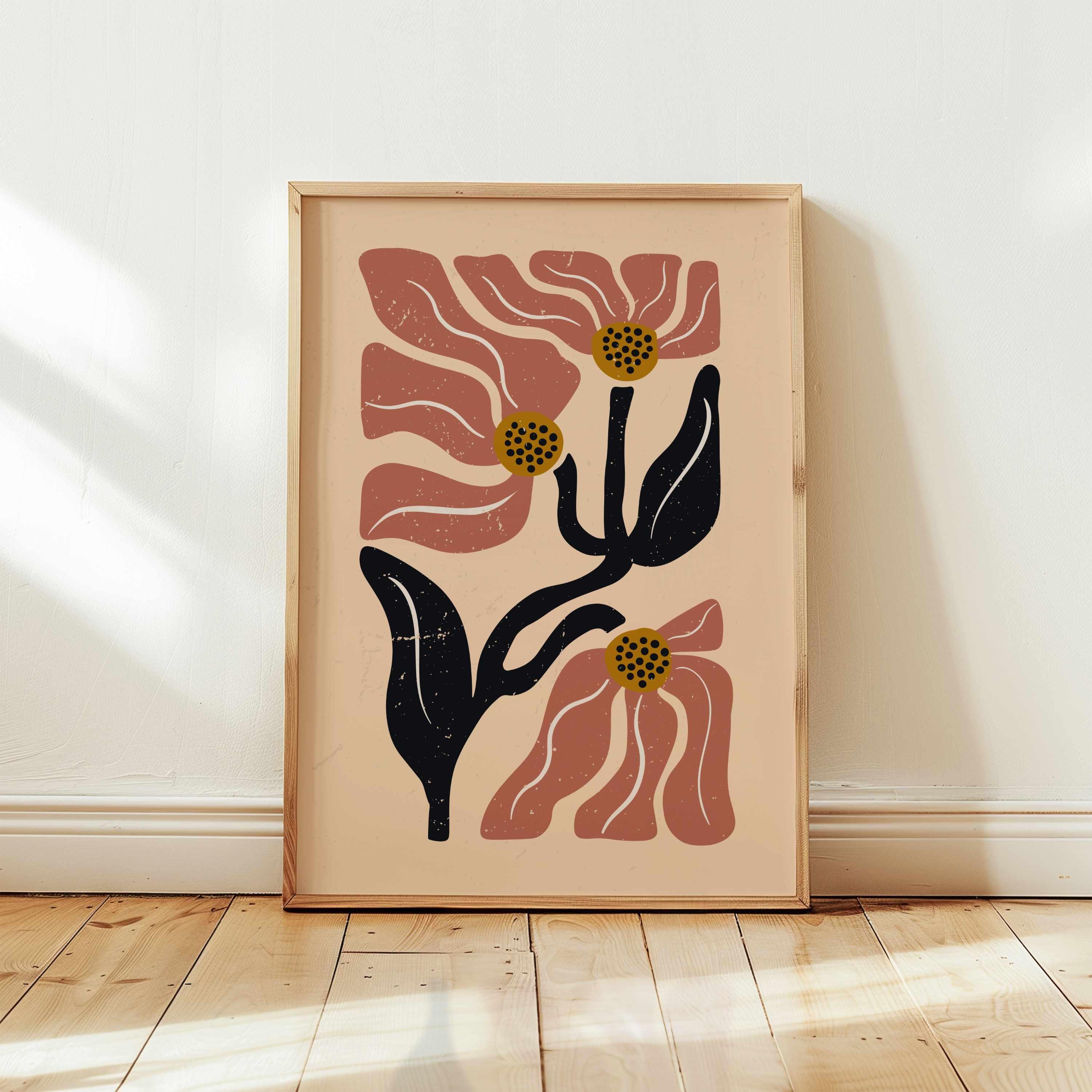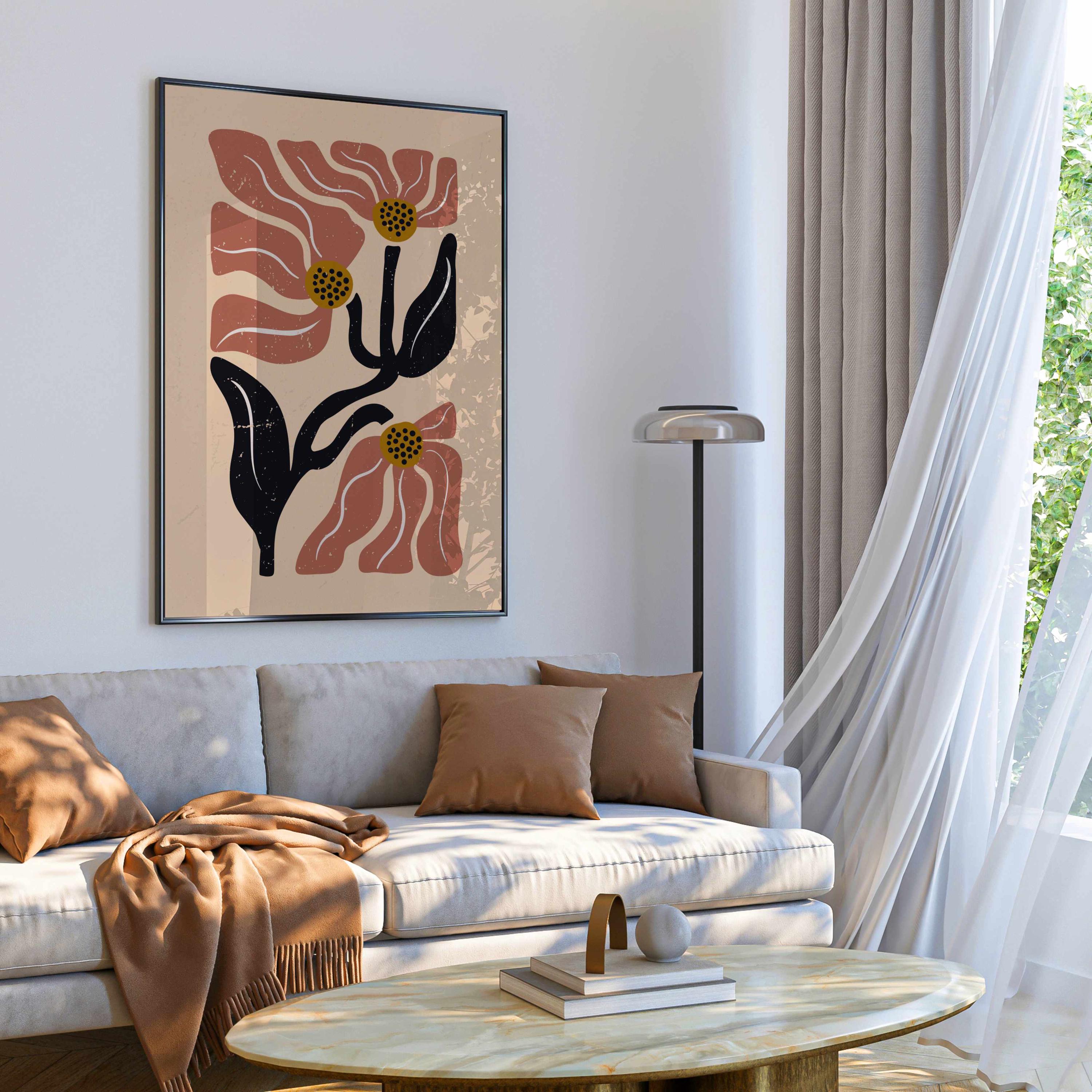 70s groovy floral print featuring abstract Matisse style flowers in soft and feminine colors. This retro botanical print is perfect for brightening up any mid century, contemporary or modern boho space, be it your living room, bedroom, office, nursery or anywhere else. This print also makes a thoughtful and unique gift for your friend for a special event like Christmas, birthday, or housewarming.