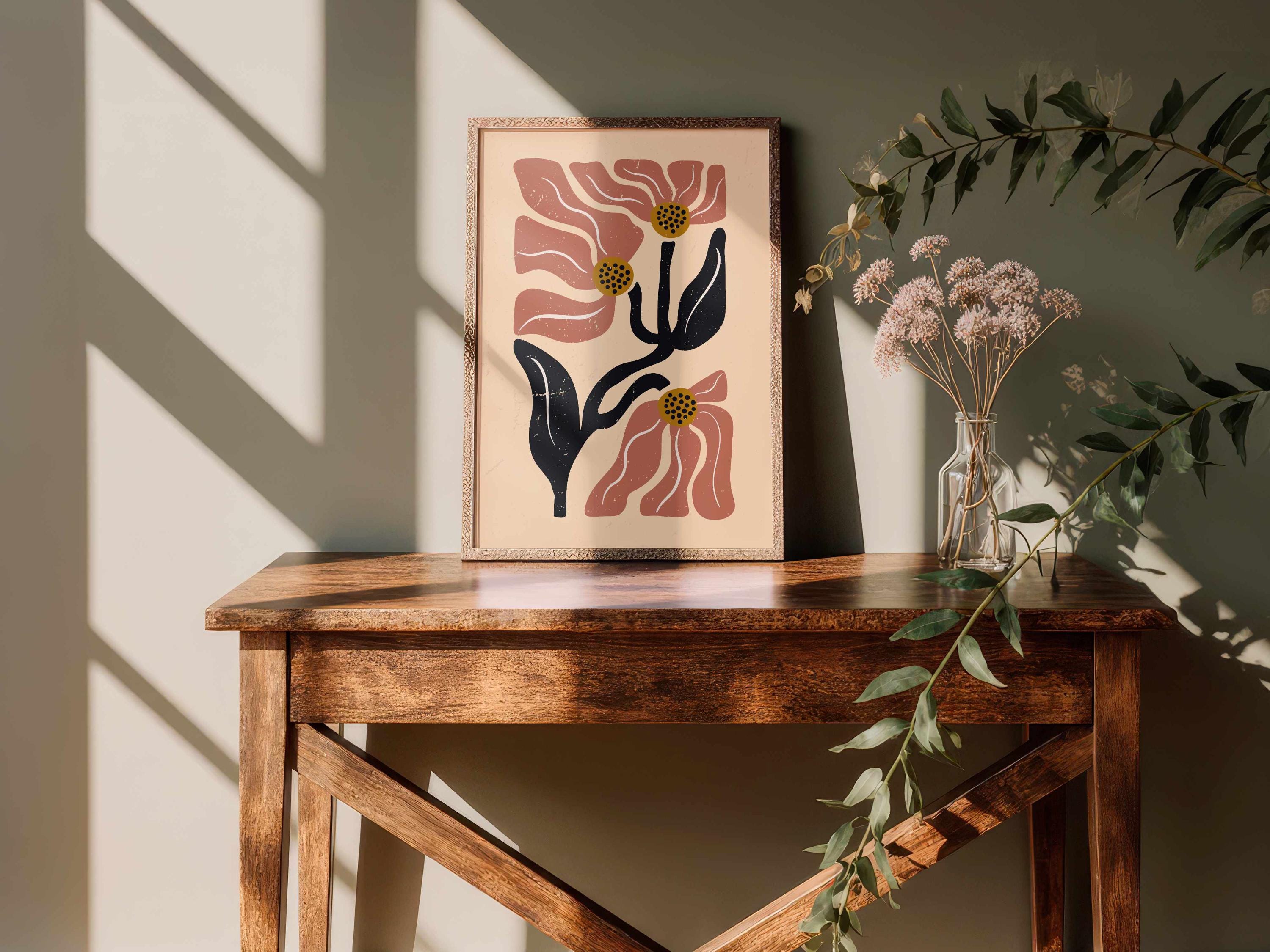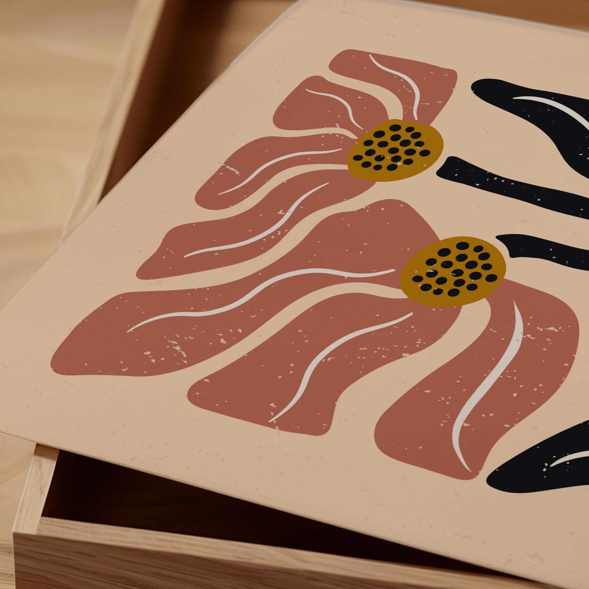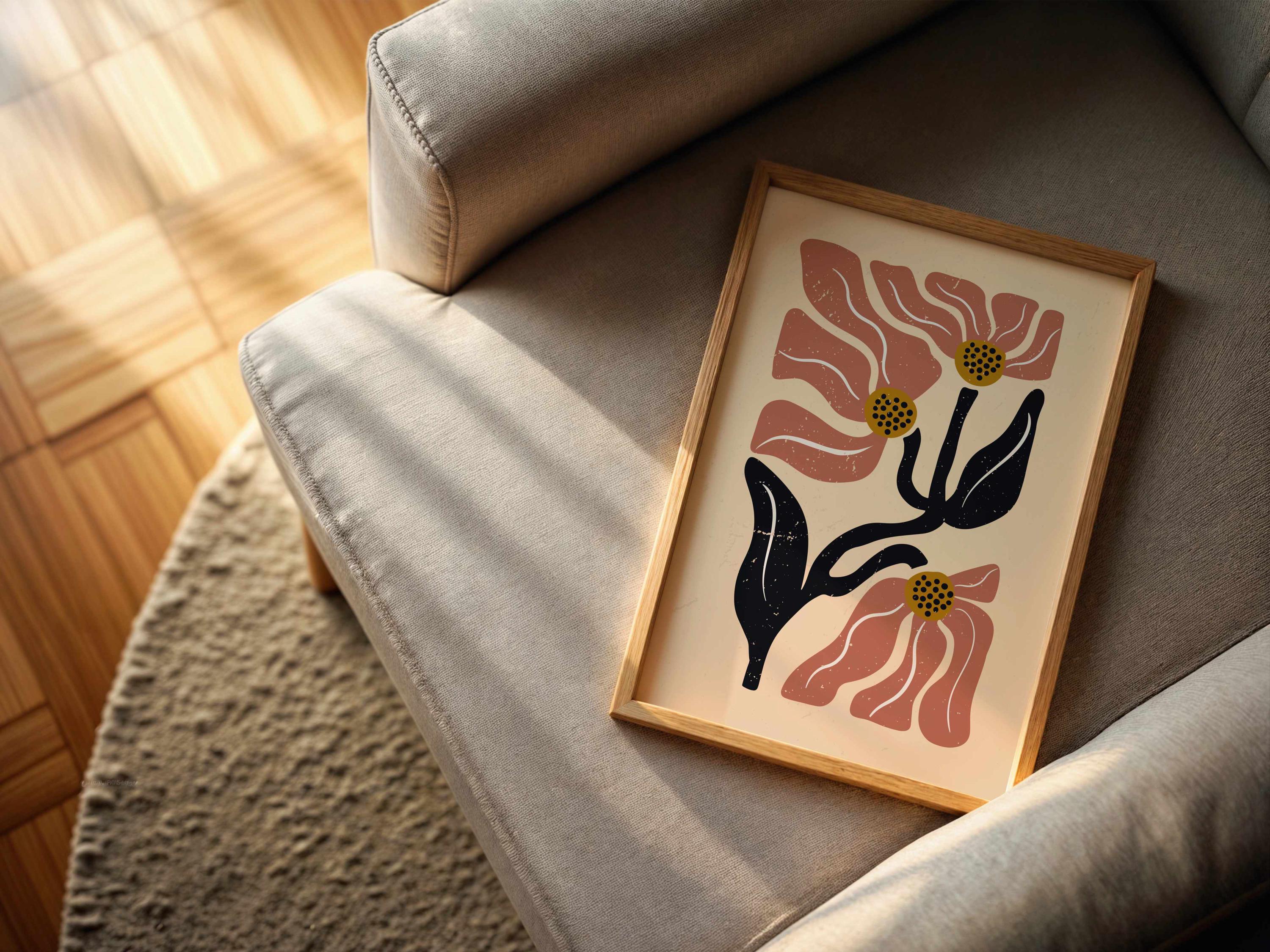 70s groovy floral print featuring abstract Matisse style flowers in soft and feminine colors. This retro botanical print is perfect for brightening up any mid century, contemporary or modern boho space, be it your living room, bedroom, office, nursery or anywhere else. This print also makes a thoughtful and unique gift for your friend for a special event like Christmas, birthday, or housewarming.