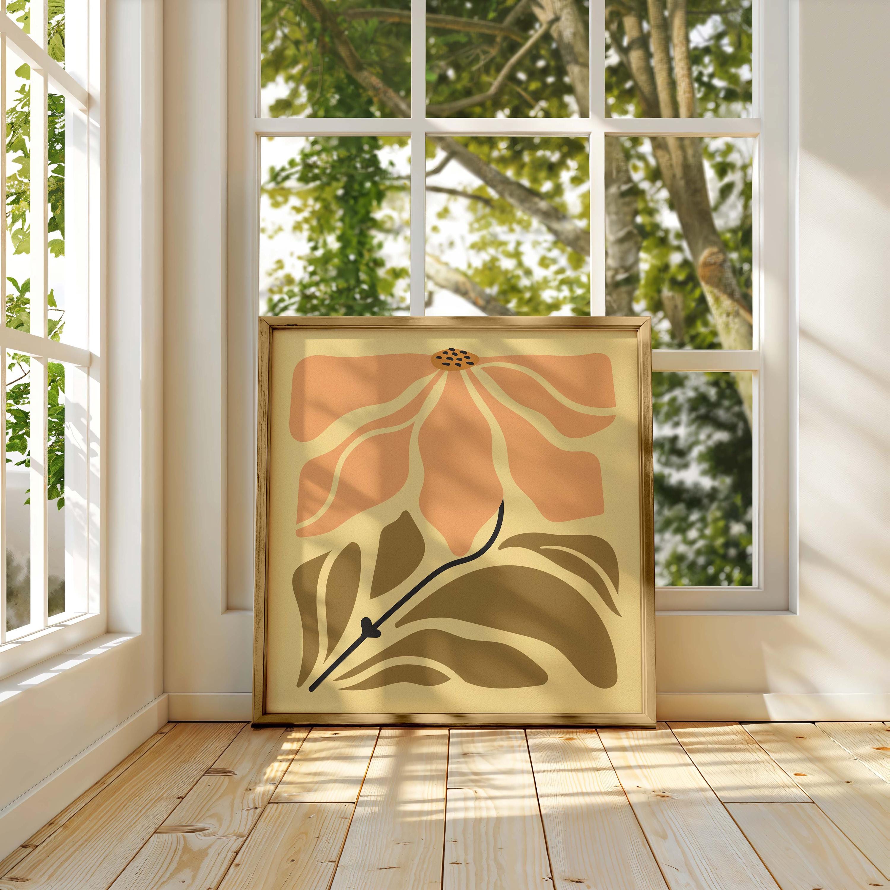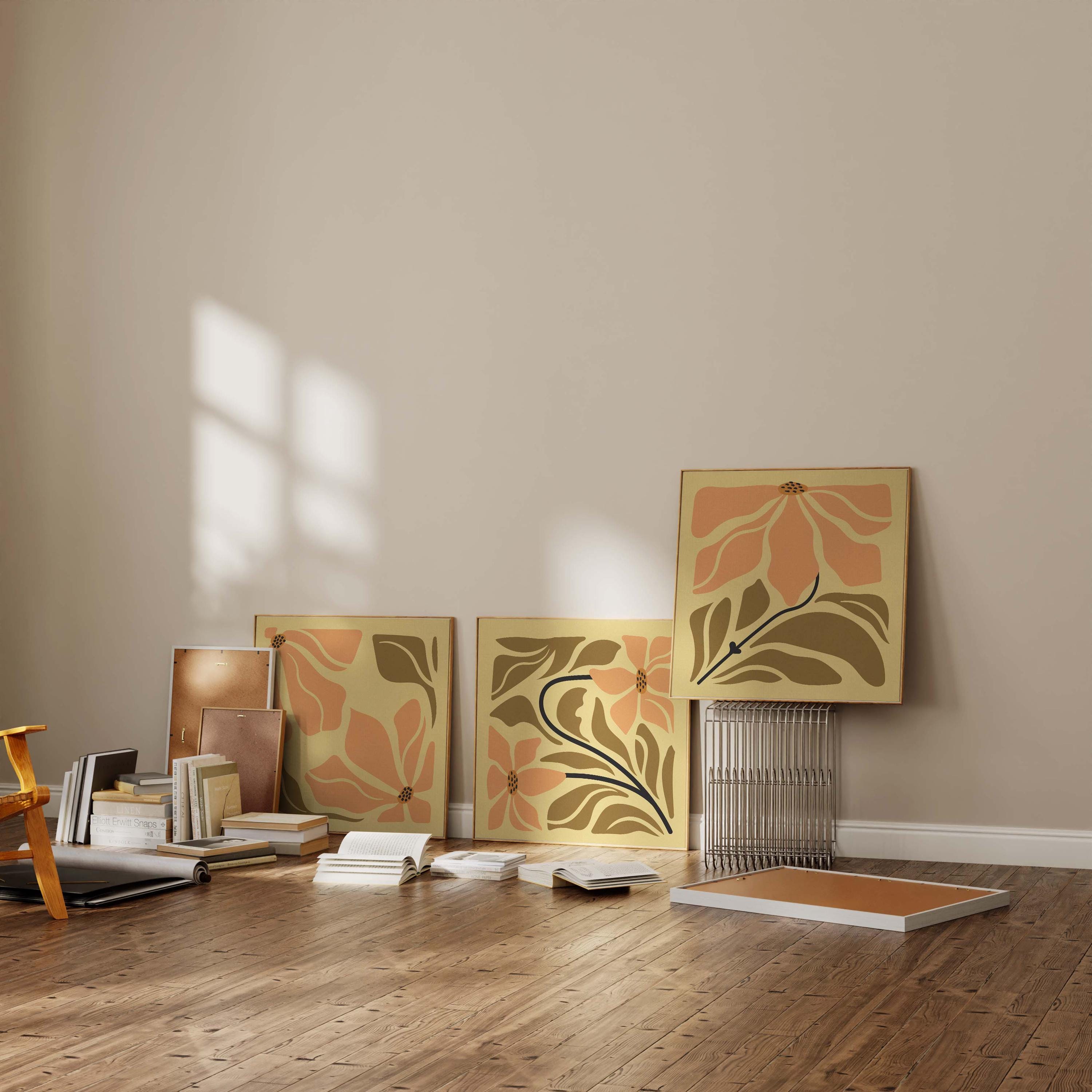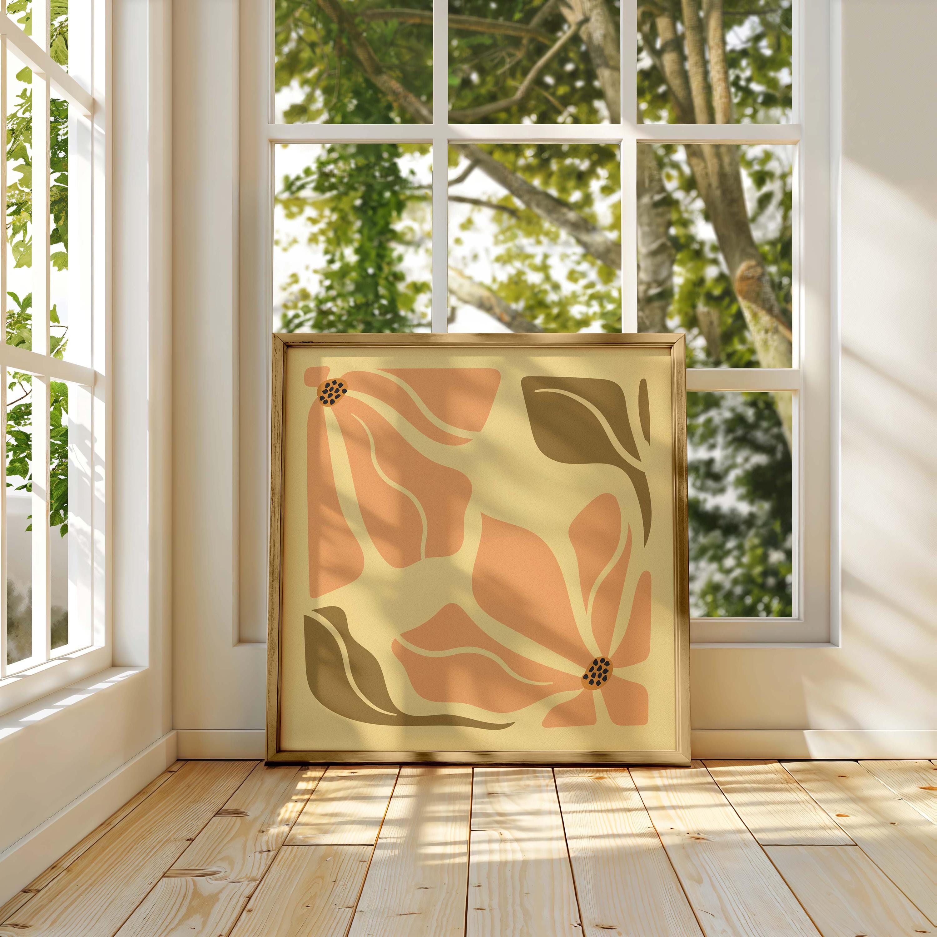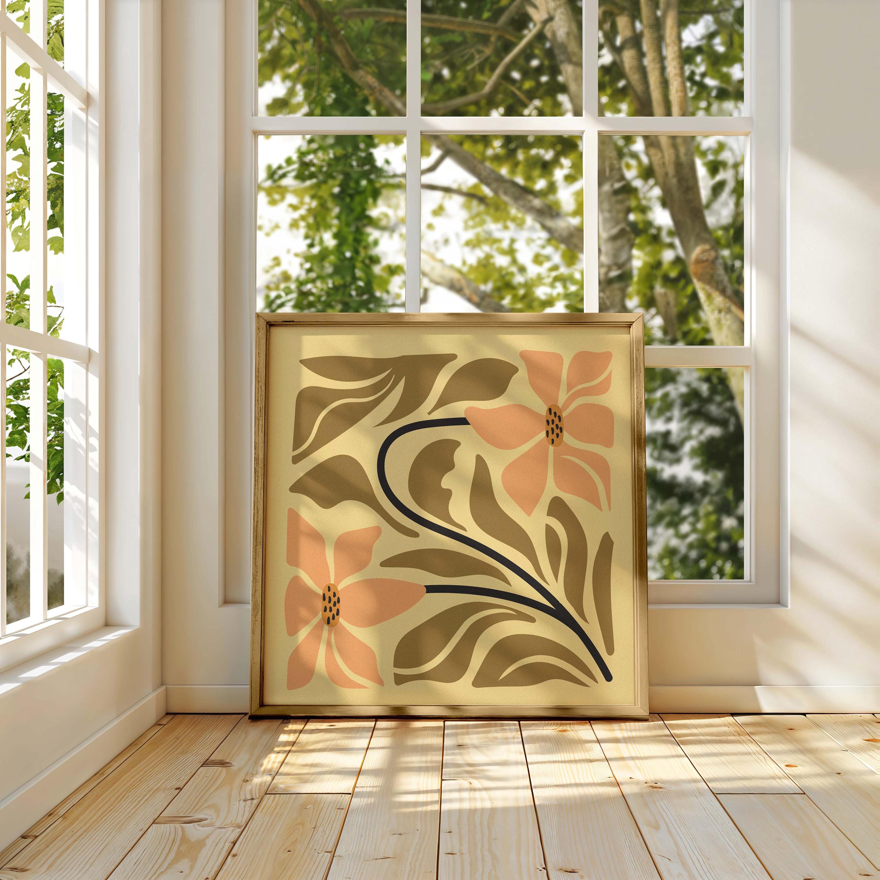 Retro floral wall art set in soft neutrals inspired by abstract Matisse organic shapes and groovy 70s design. Perfect for boho, mid century, or vintage-inspired interiors, these square prints add a playful yet grounded vibe to any wall.