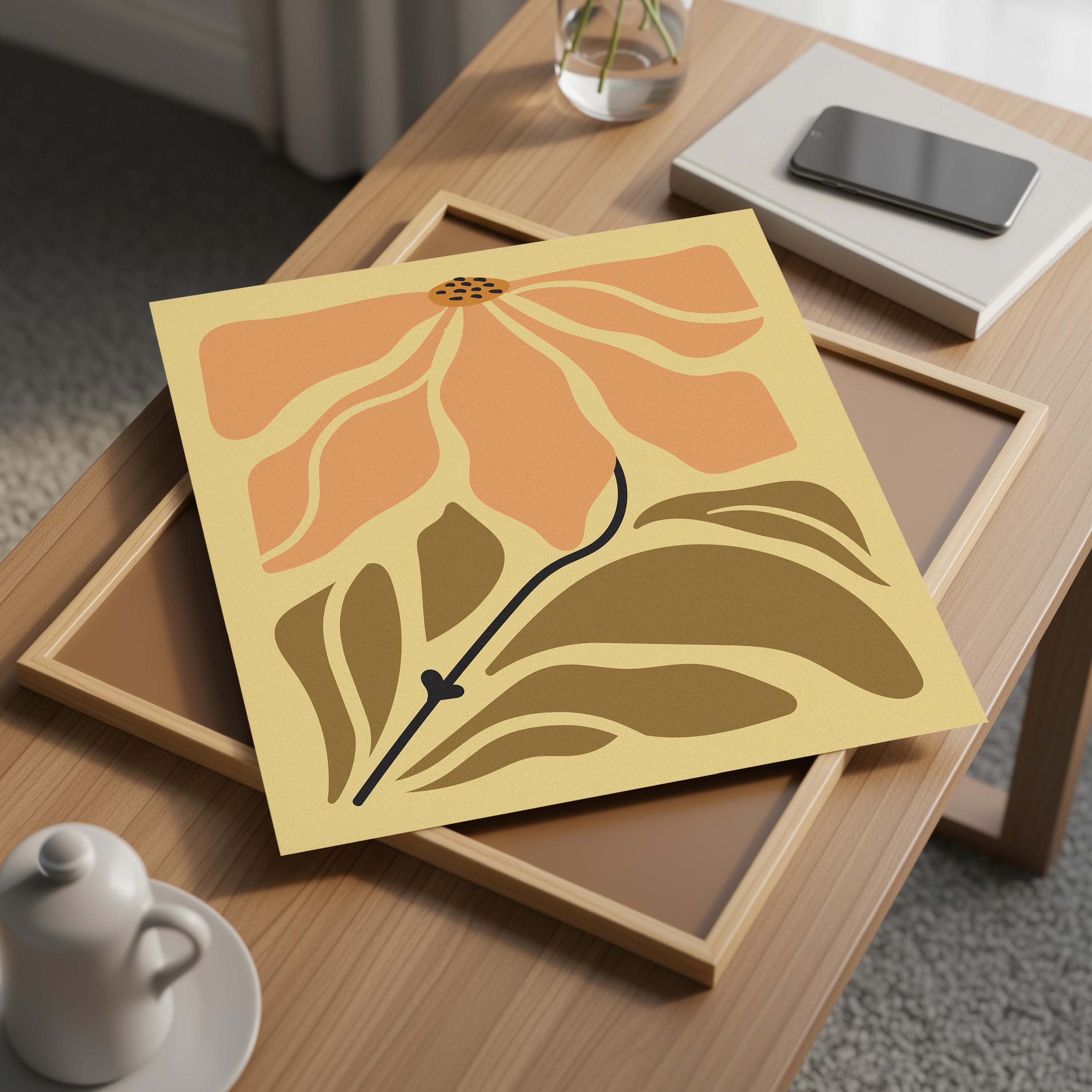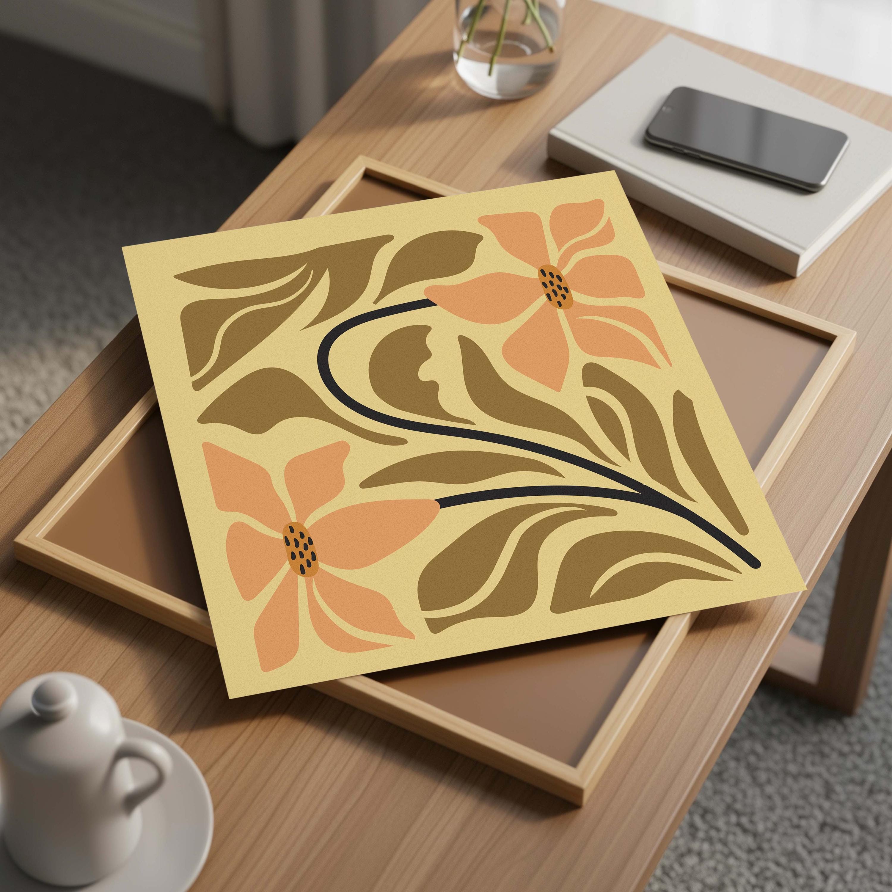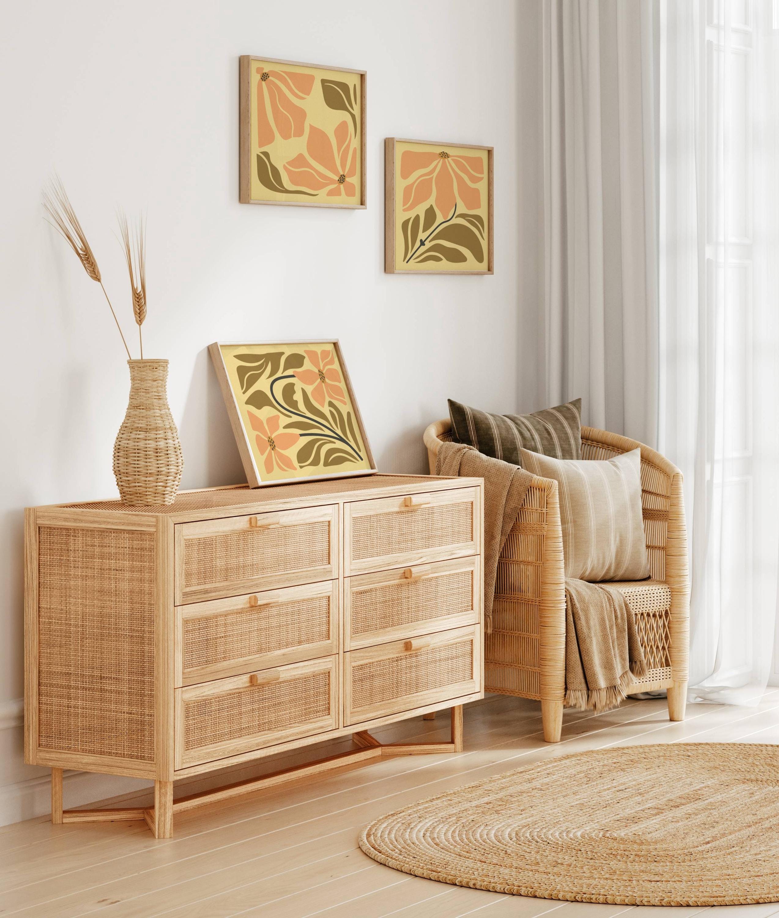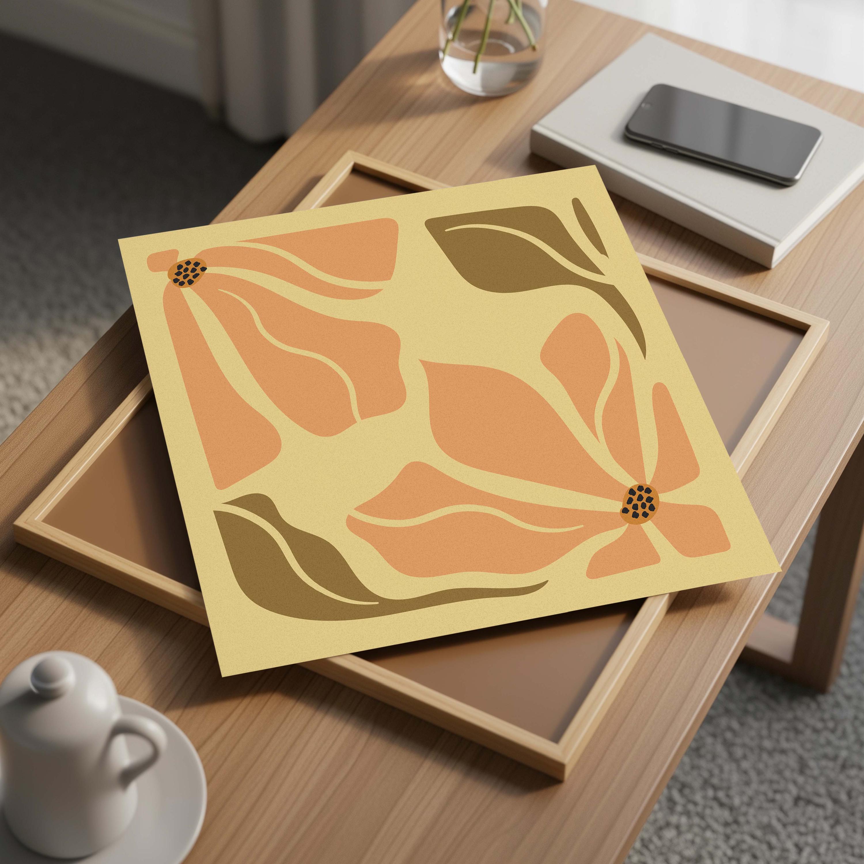 Retro floral wall art set in soft neutrals inspired by abstract Matisse organic shapes and groovy 70s design. Perfect for boho, mid century, or vintage-inspired interiors, these square prints add a playful yet grounded vibe to any wall.