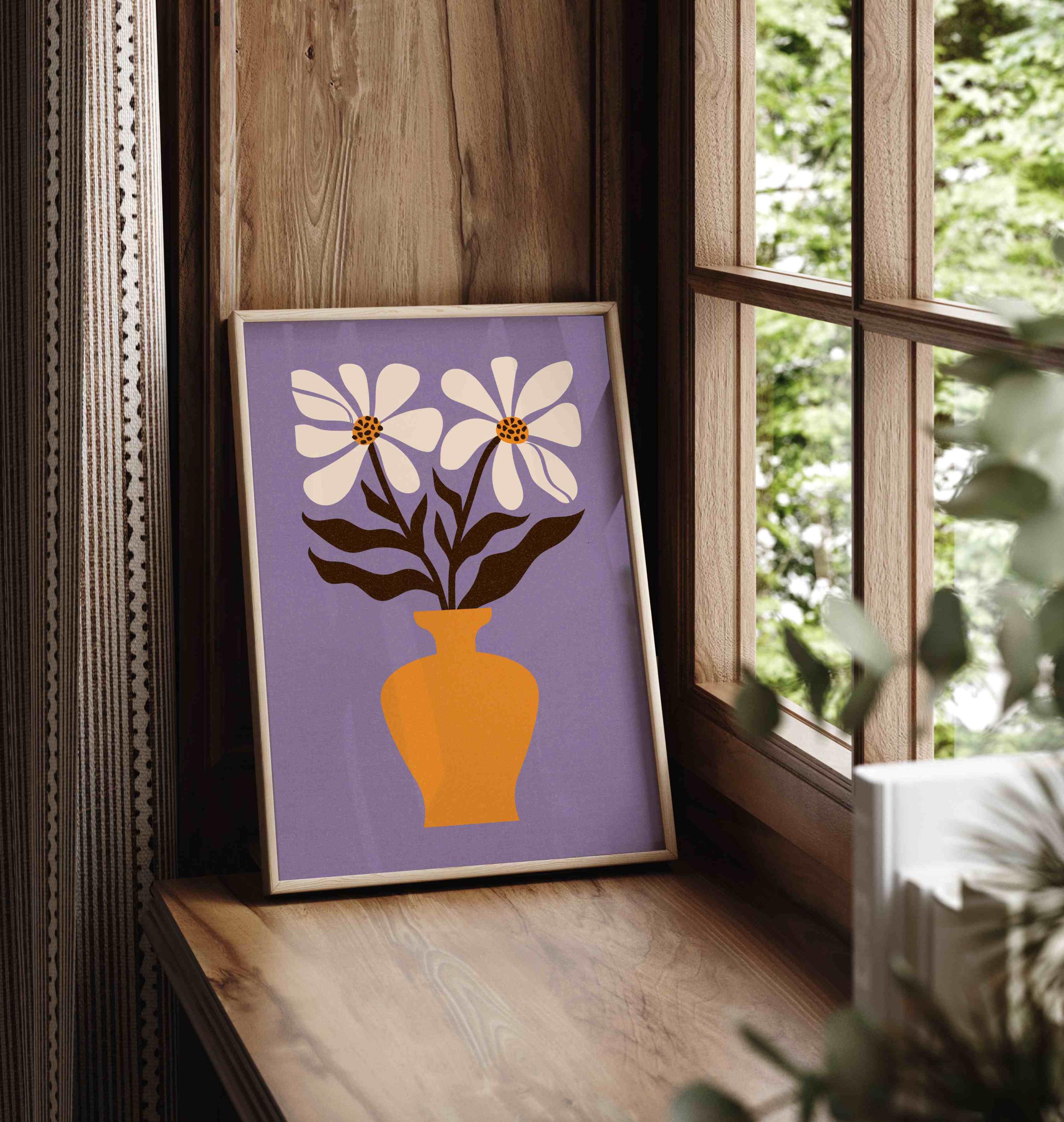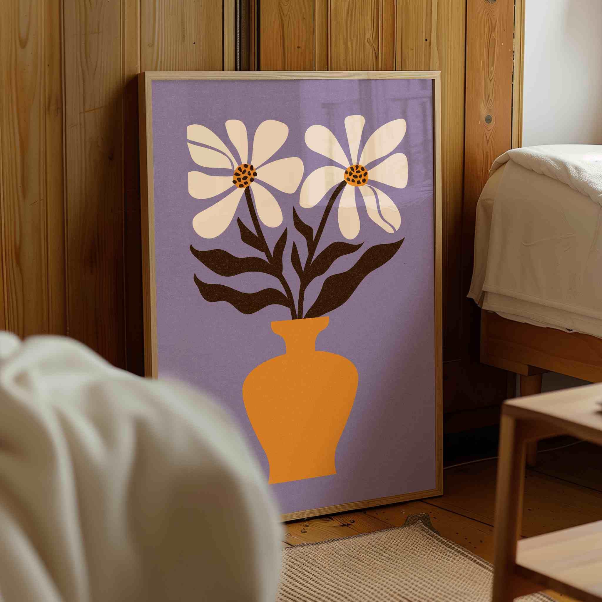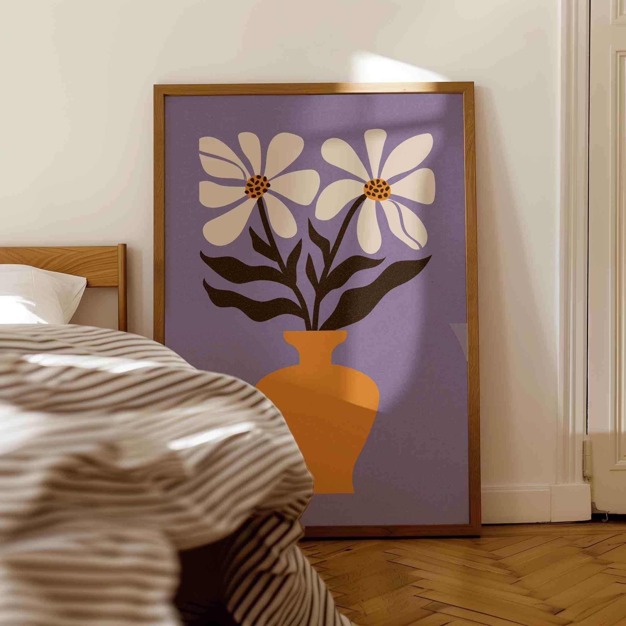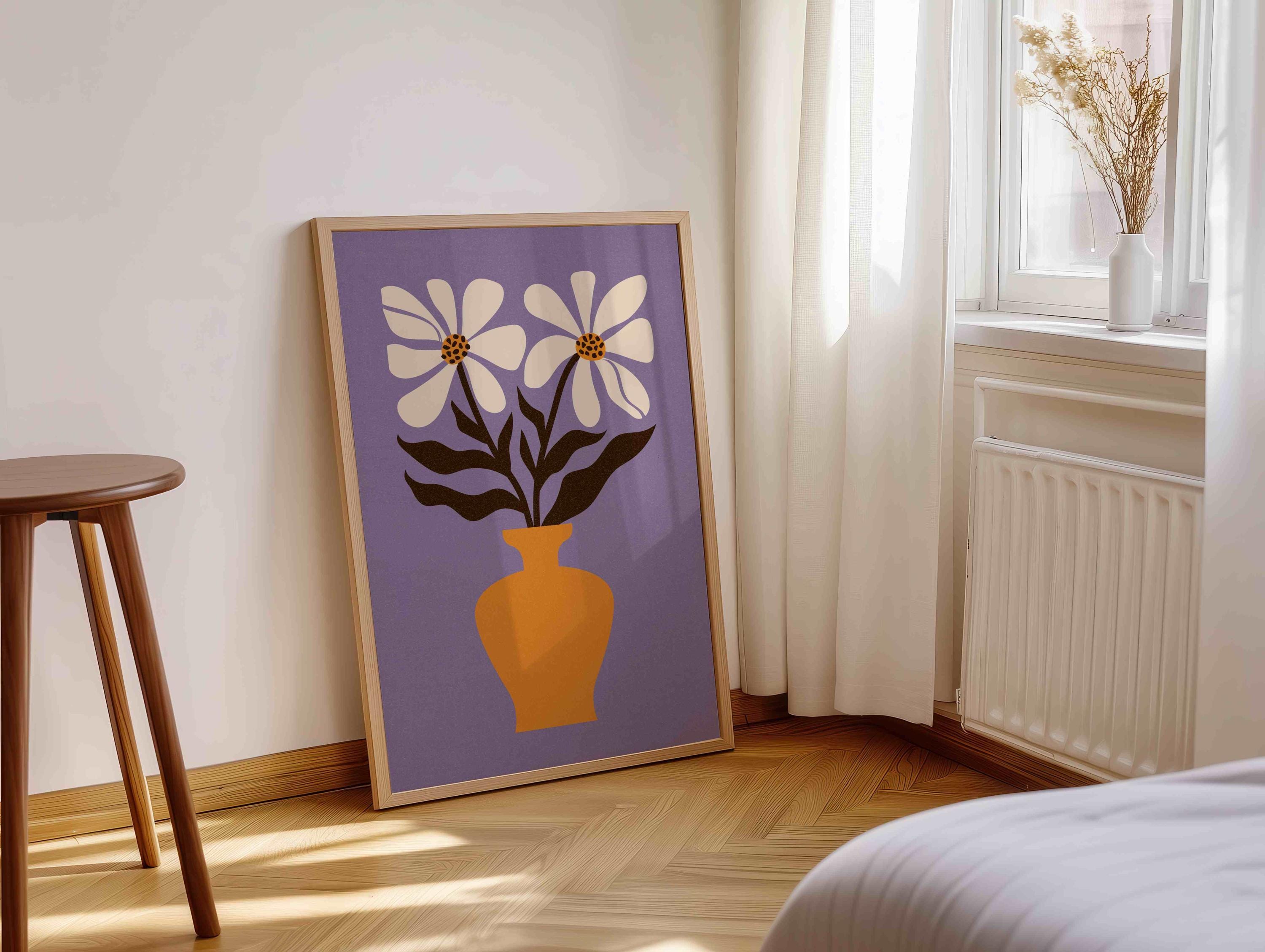 Retro aesthetic flower illustration art print featuring Matisse-inspired flowers, perfect for brightening up any space, be it your living room, nursery, bedroom, office, or anywhere else. This print also makes a thoughtful and unique gift for your friend for a special event like Christmas, birthday, or housewarming.