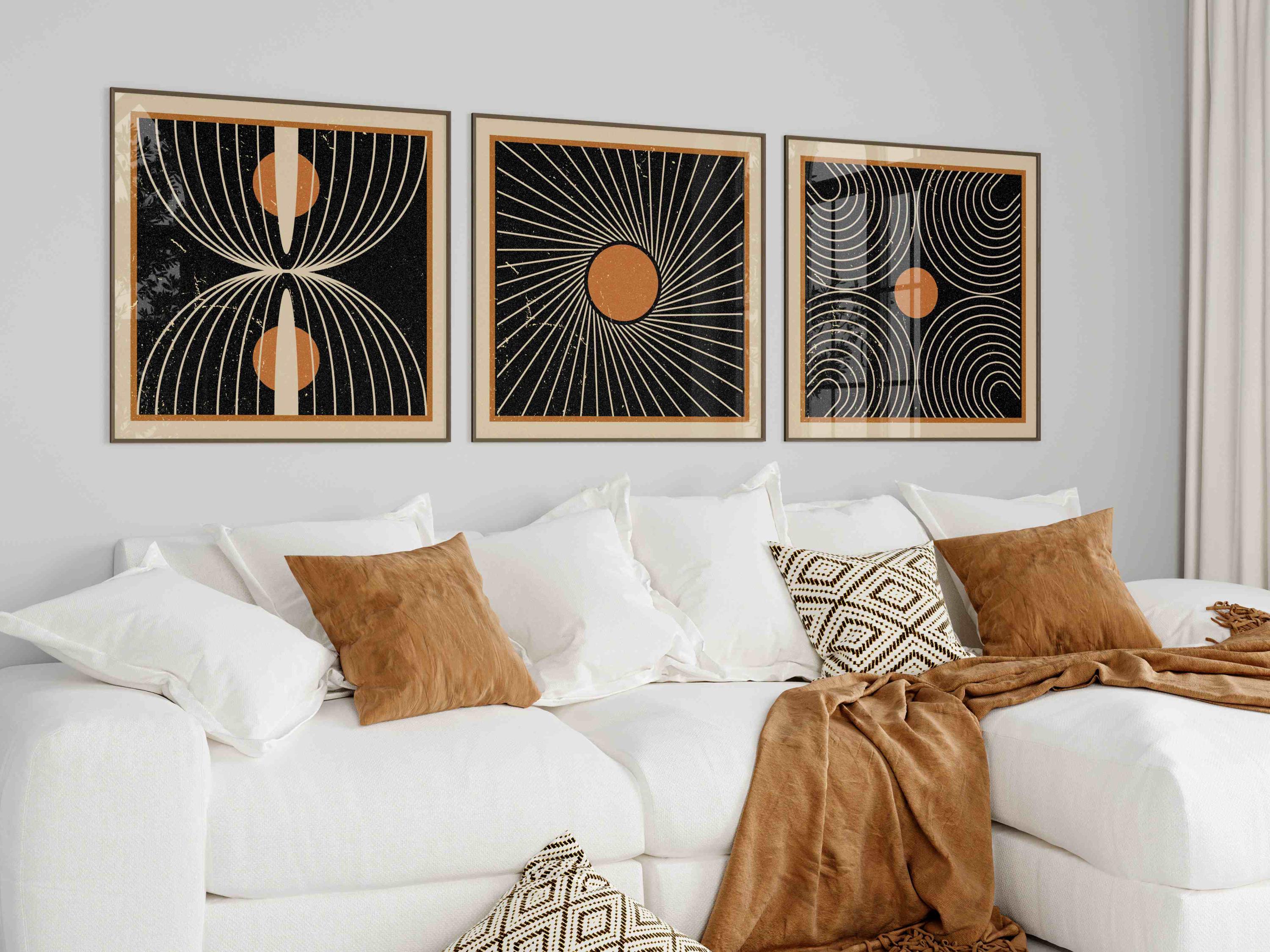 Abstract wall art set inspired by the clean lines of mid century modern design and the simplicity of Japandi style. An ideal choice for enhancing your living room decor, or elevating your office space.