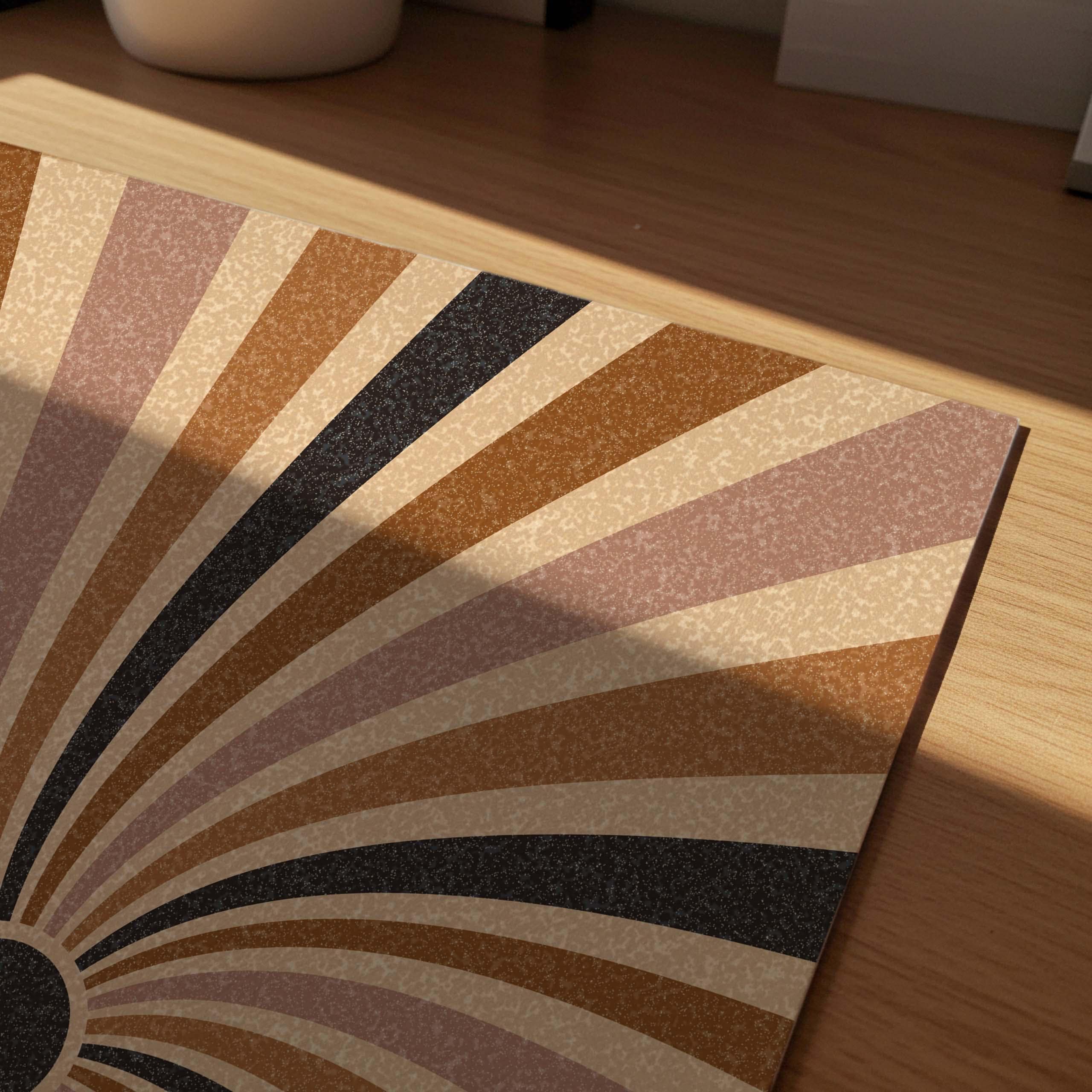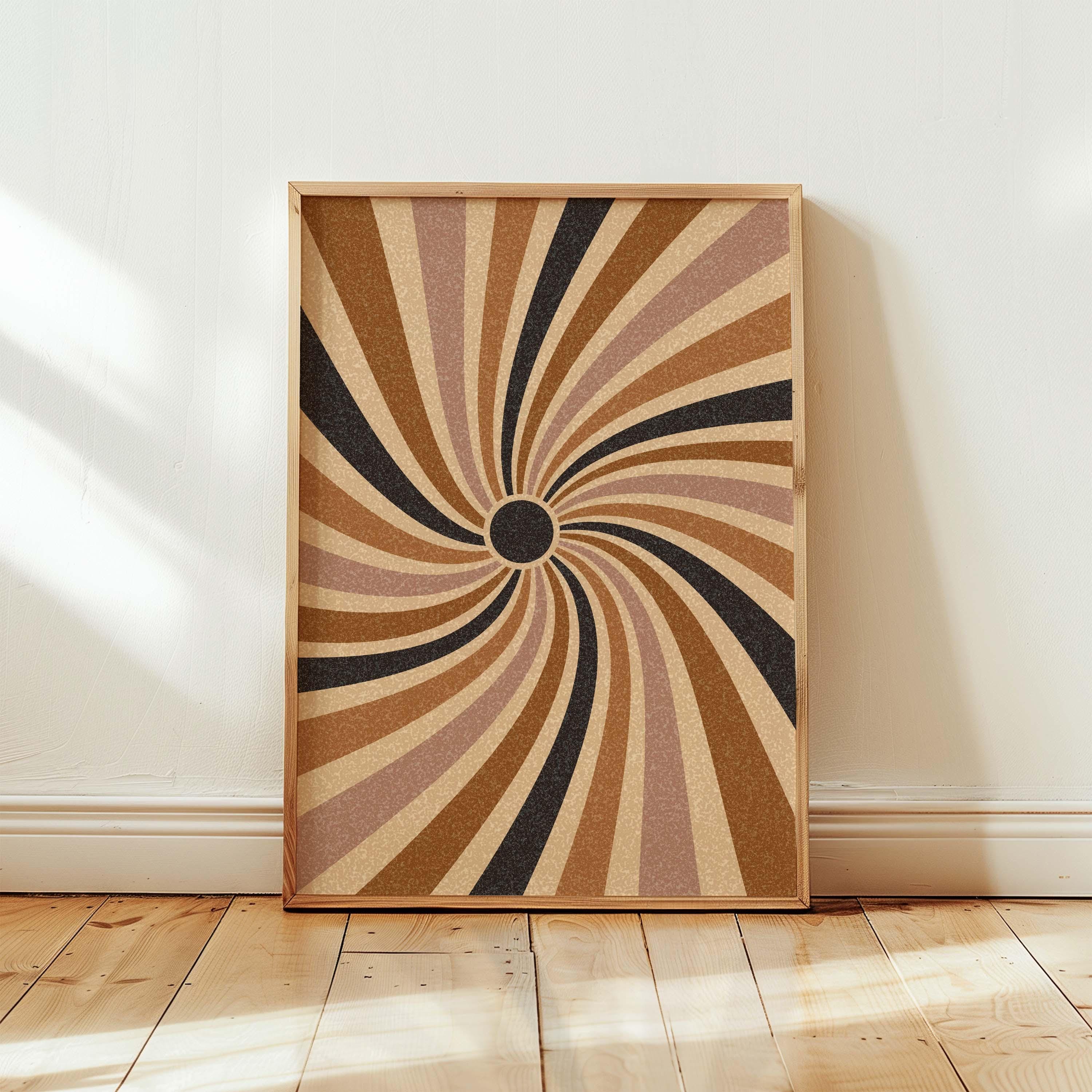 Groovy 70s sunburst print set in soft, neutral colors that is designed to be displayed as a triptych, creating a stunning focal point on your wall. This funky sunshine set is perfect for enhancing up any mid century, retro or boho space, be it your living room, bedroom, office or anywhere else.