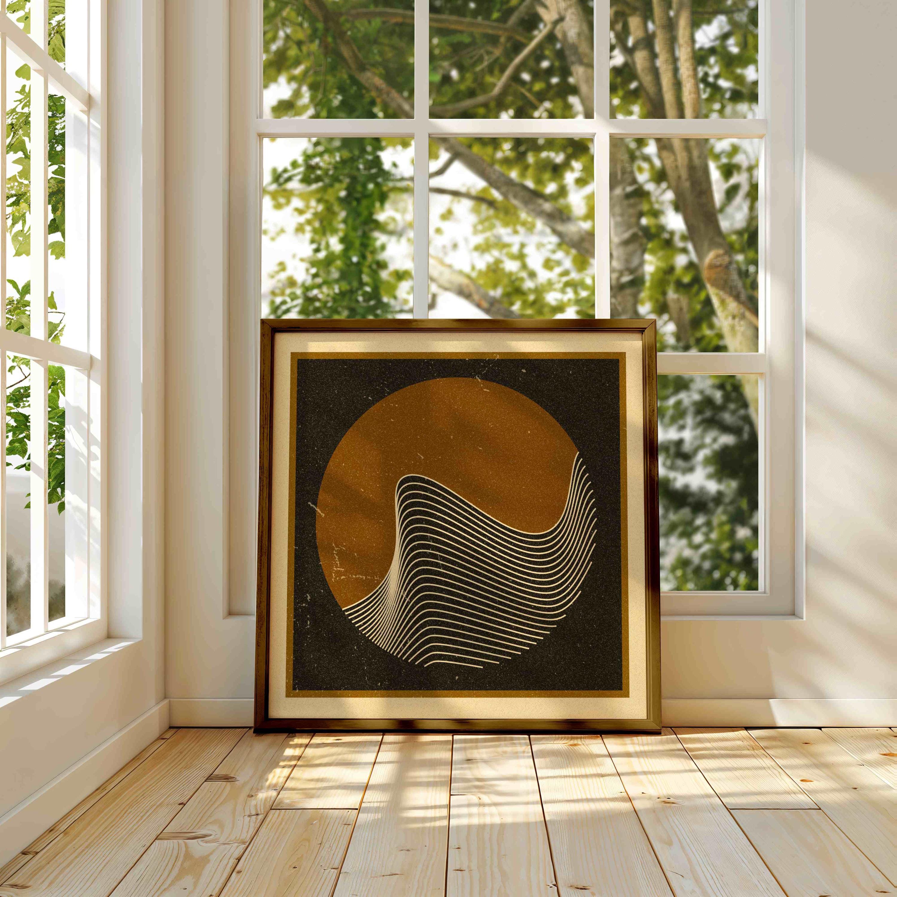 Minimalist three piece square print set featuring abstract line art waves and geometric shapes in neutral colors. This mid century art set is perfect for enhancing up any modern, contemporary or Scandinavian style space, be it your living room, bedroom, office or anywhere else.
