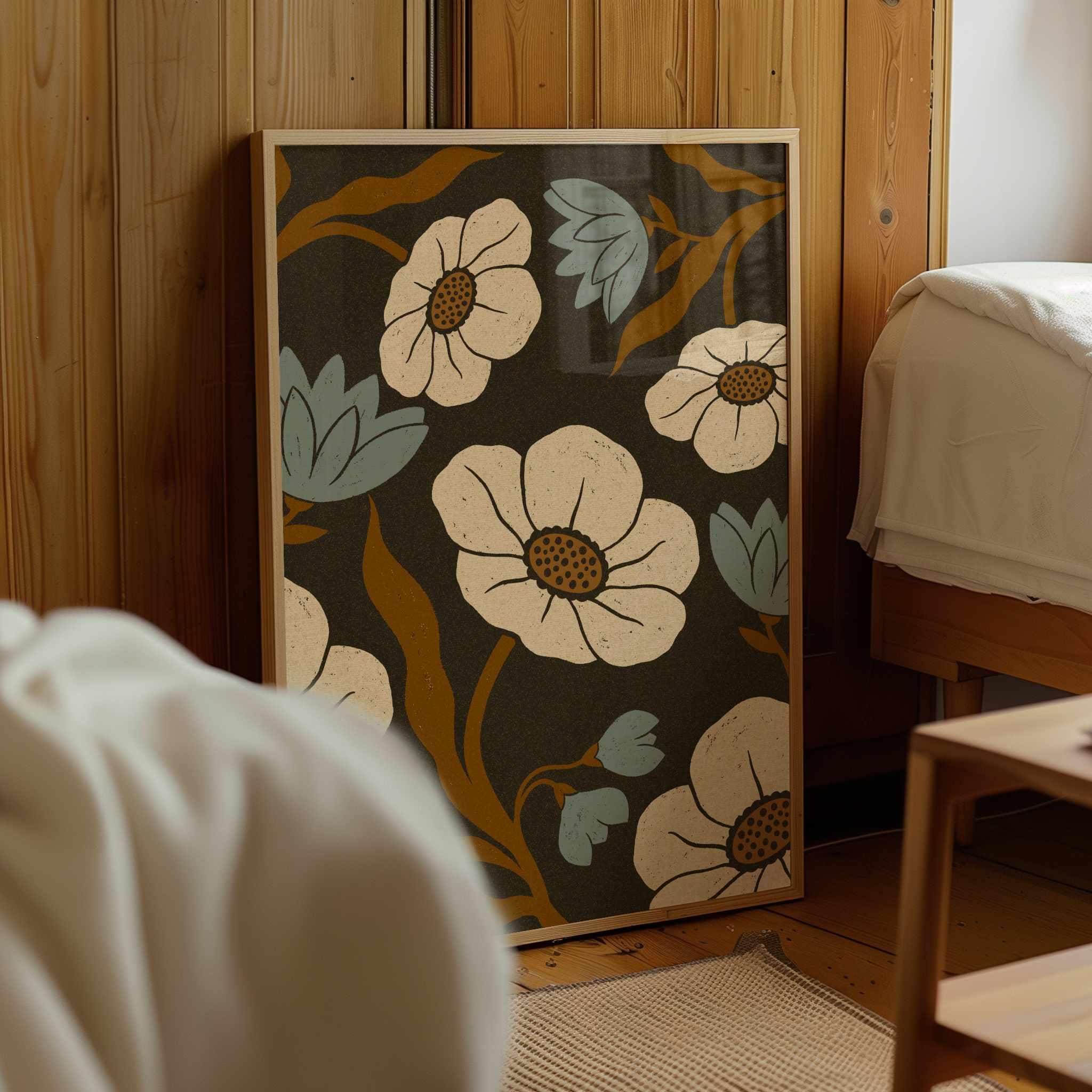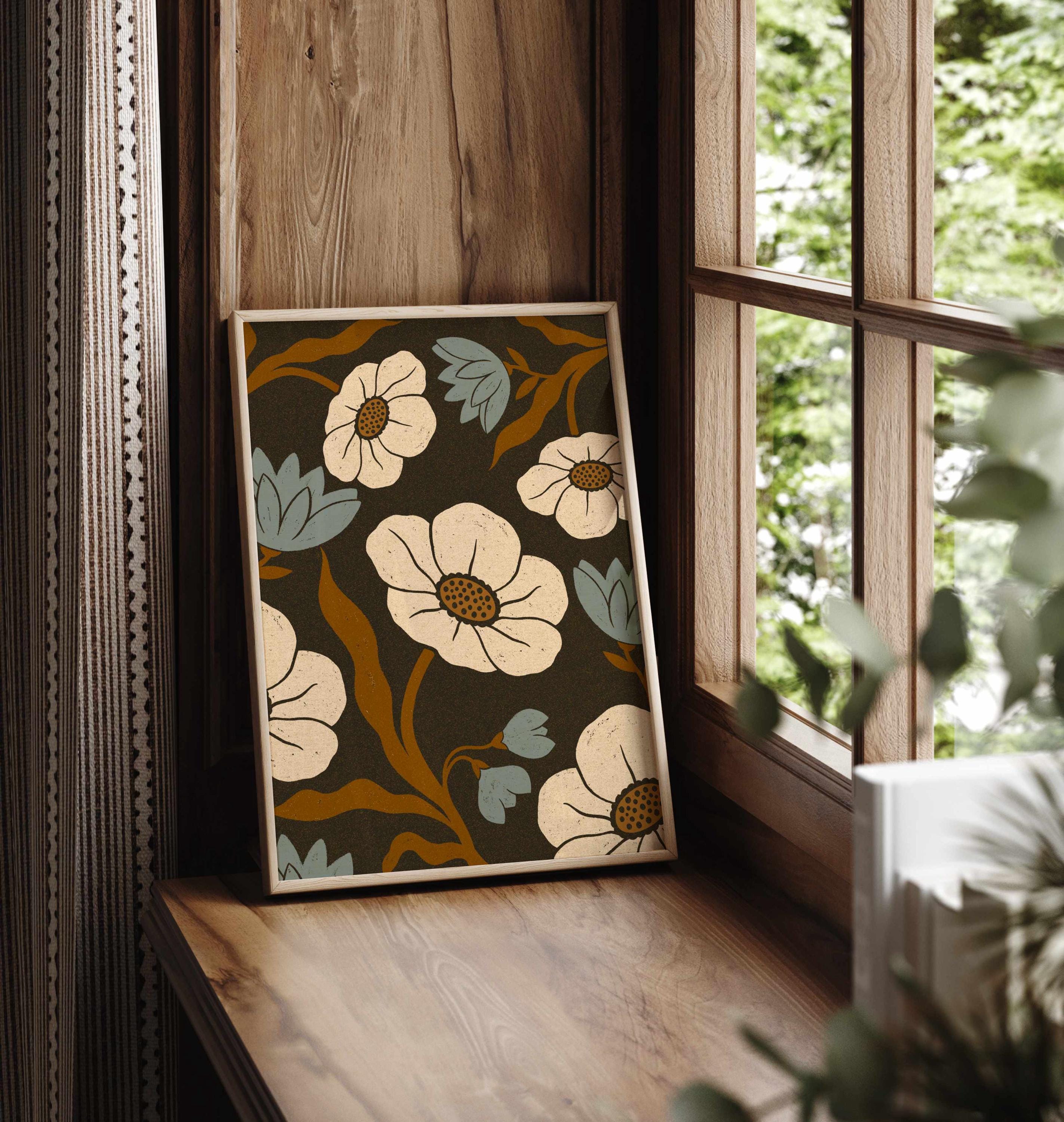 Retro flower illustration art print that features Matisse-inspired flowers from the 60s-70s. This botanical print is perfect for enhancing up any space, be it your living room, bedroom, nursery, office, or anywhere else.