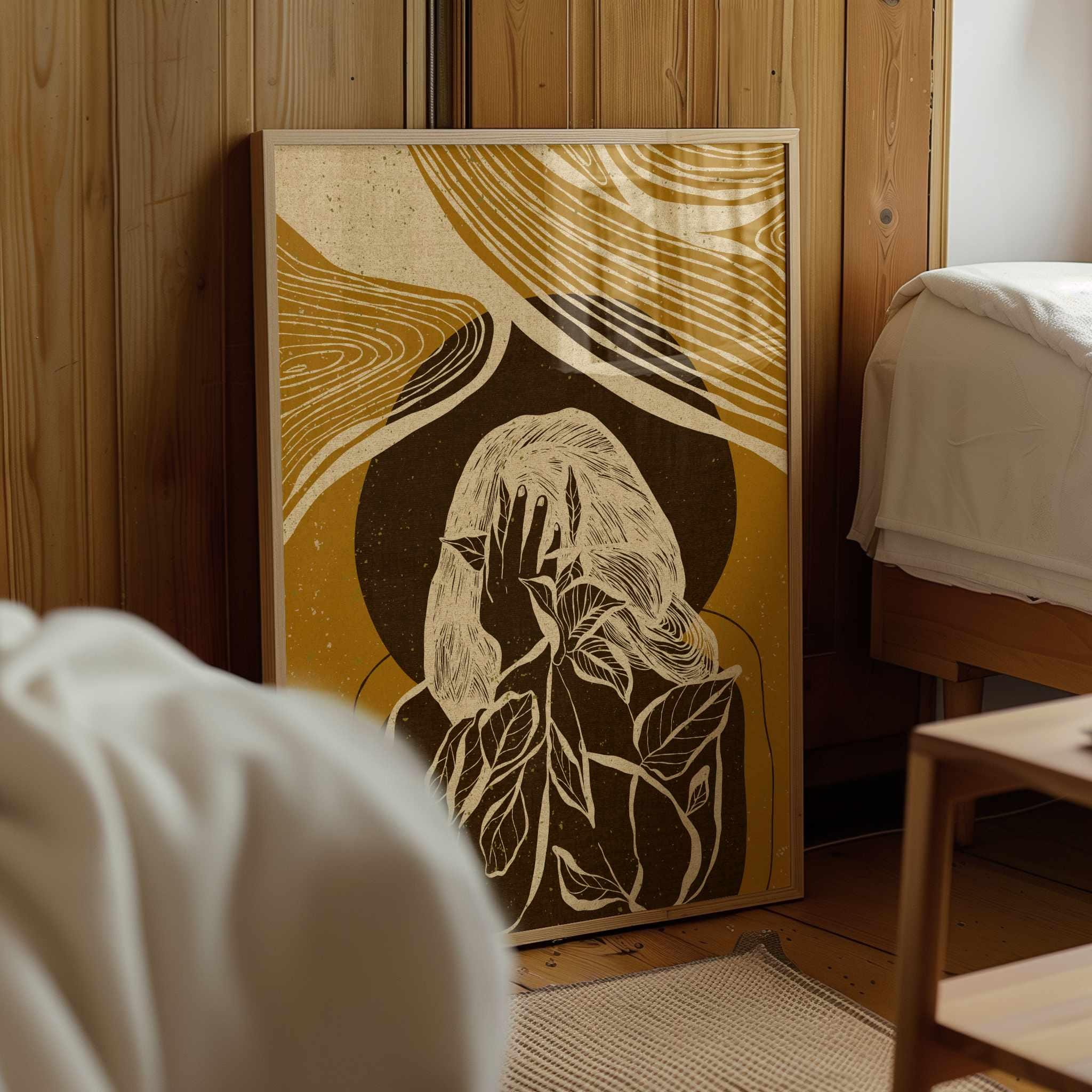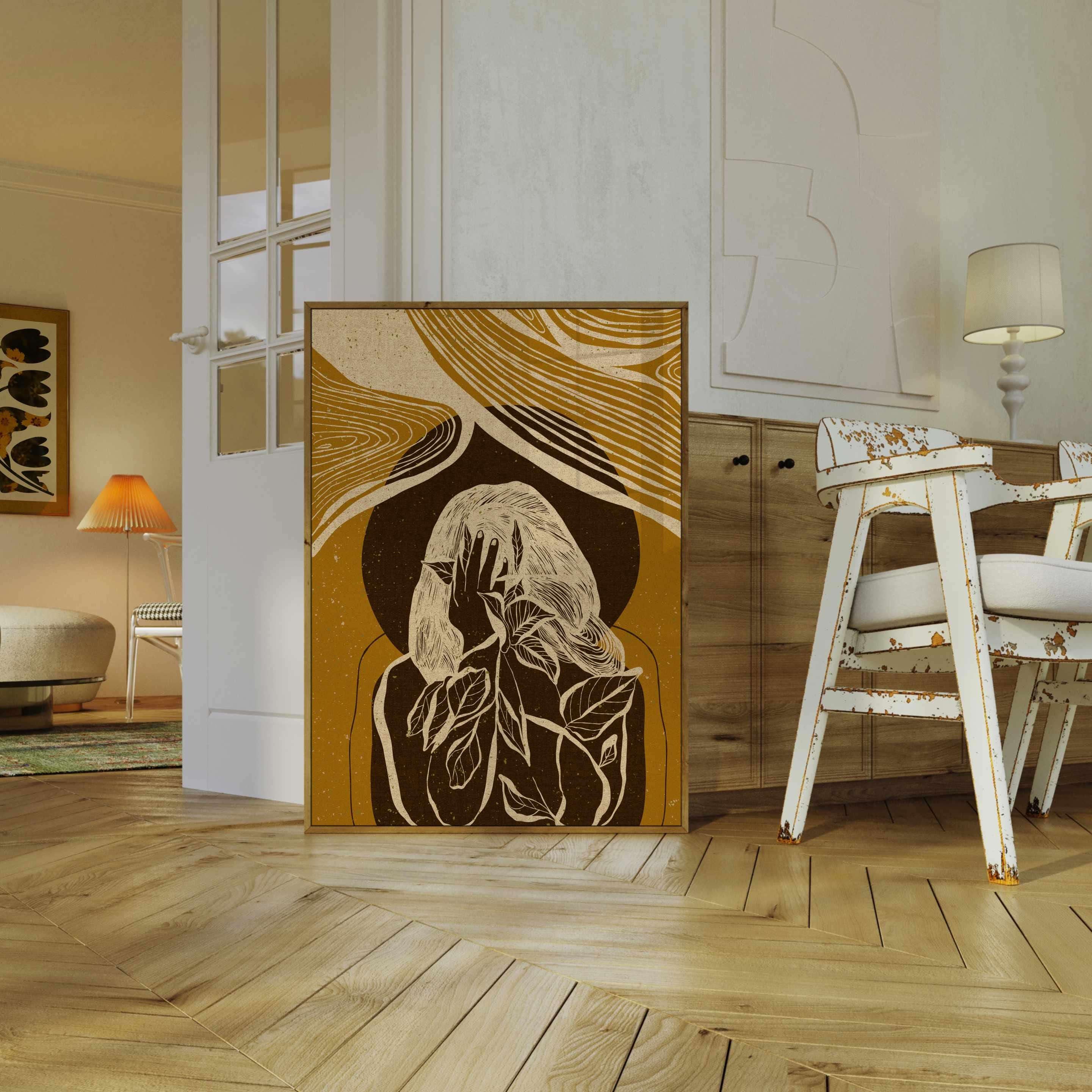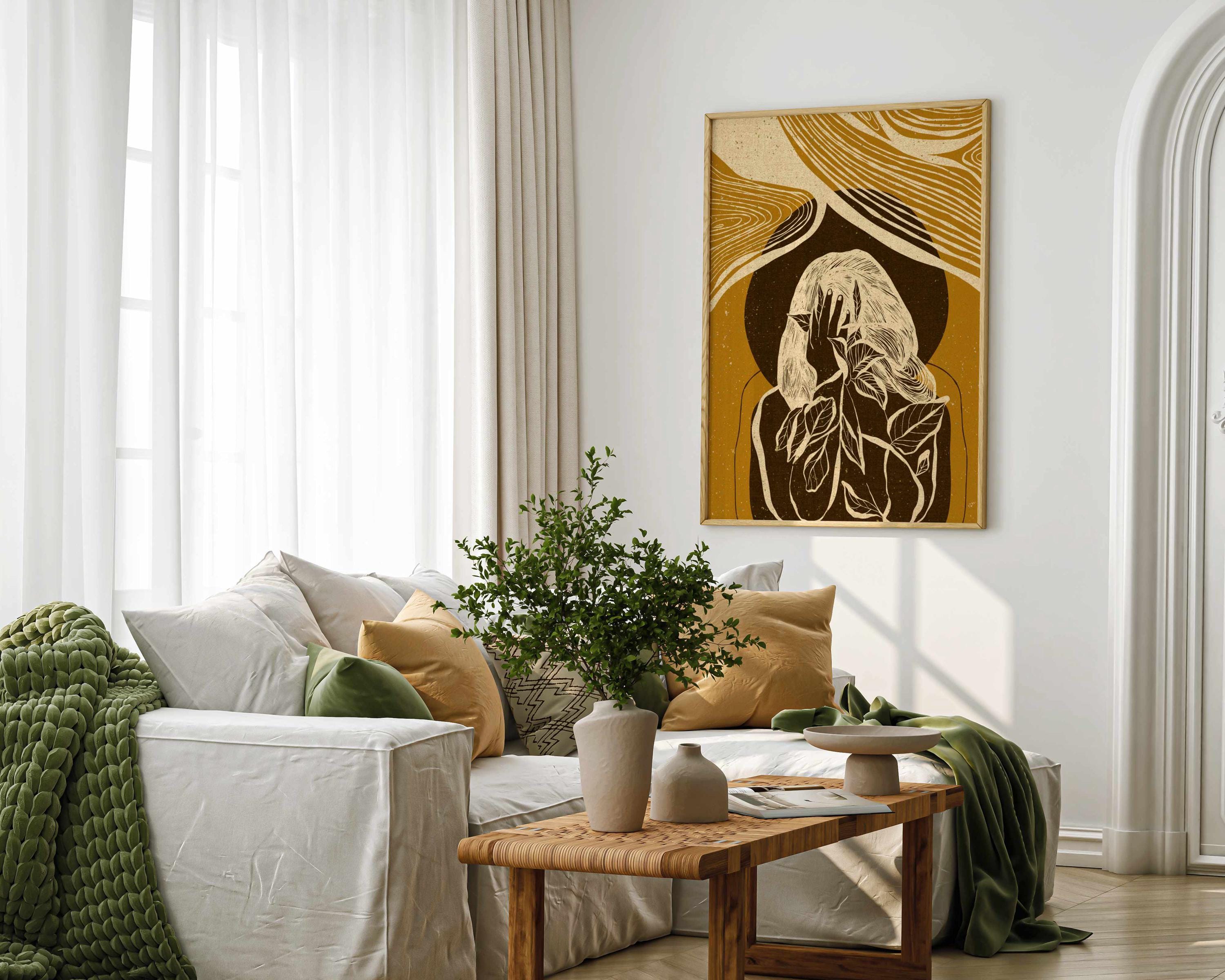 Abstract woman portrait art print in beautiful earthy colors that is perfect for enhancing any boho, contemporary or mid century space, be it your living room, bedroom, office, or anywhere else.