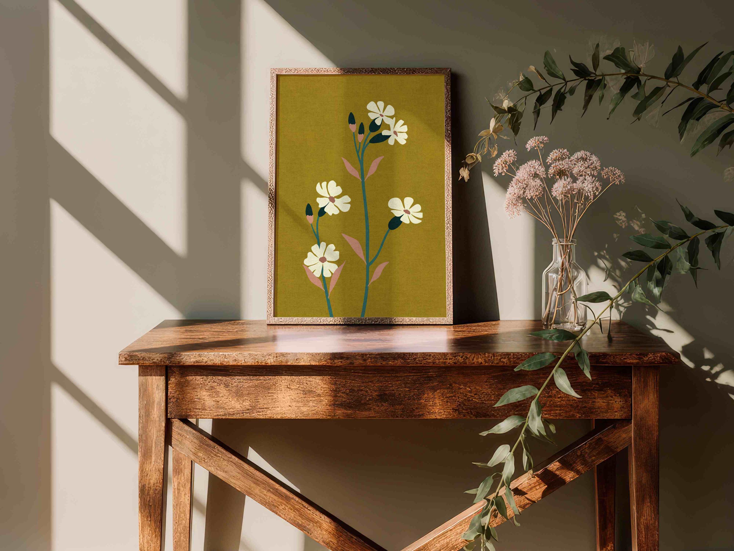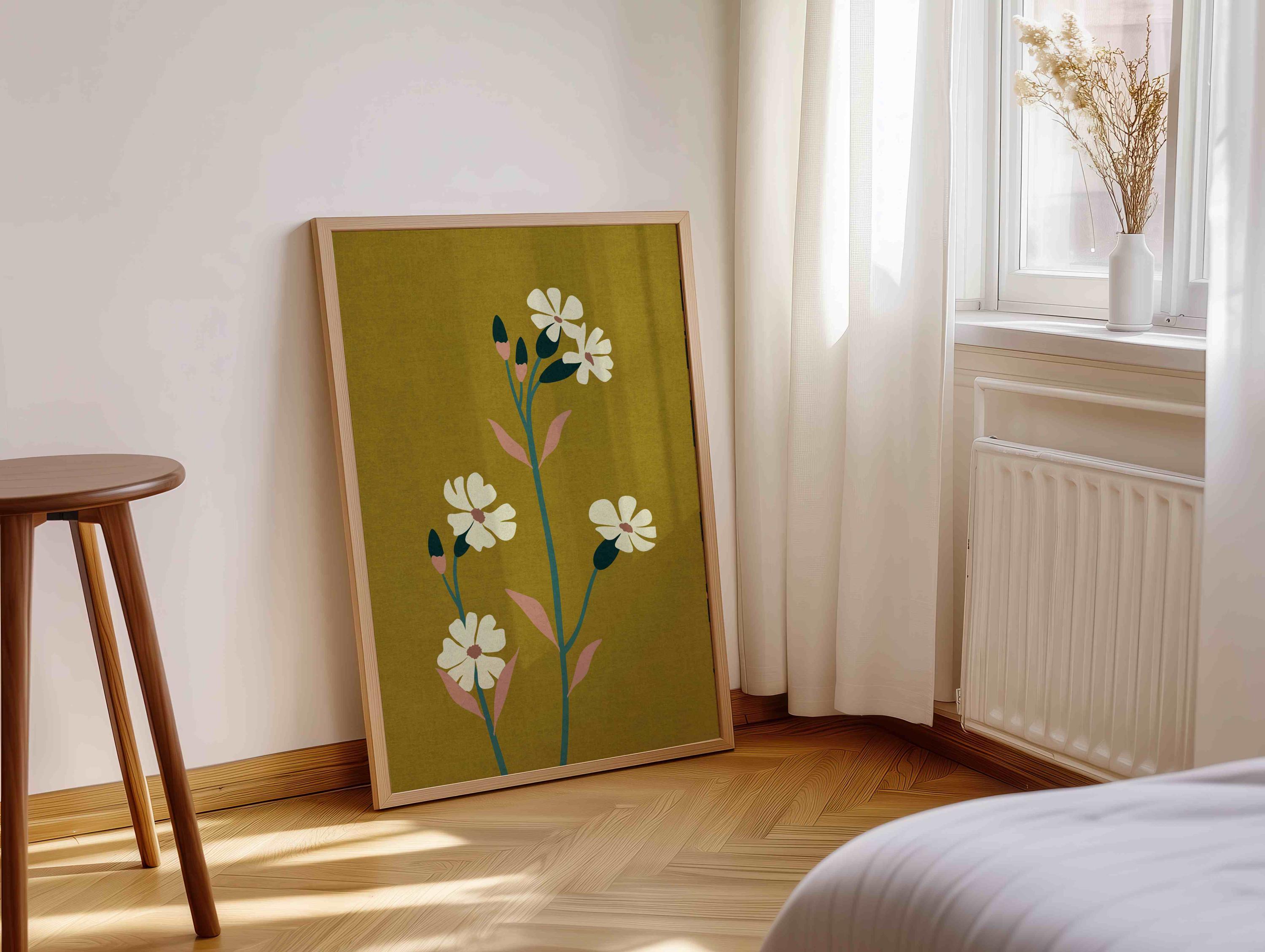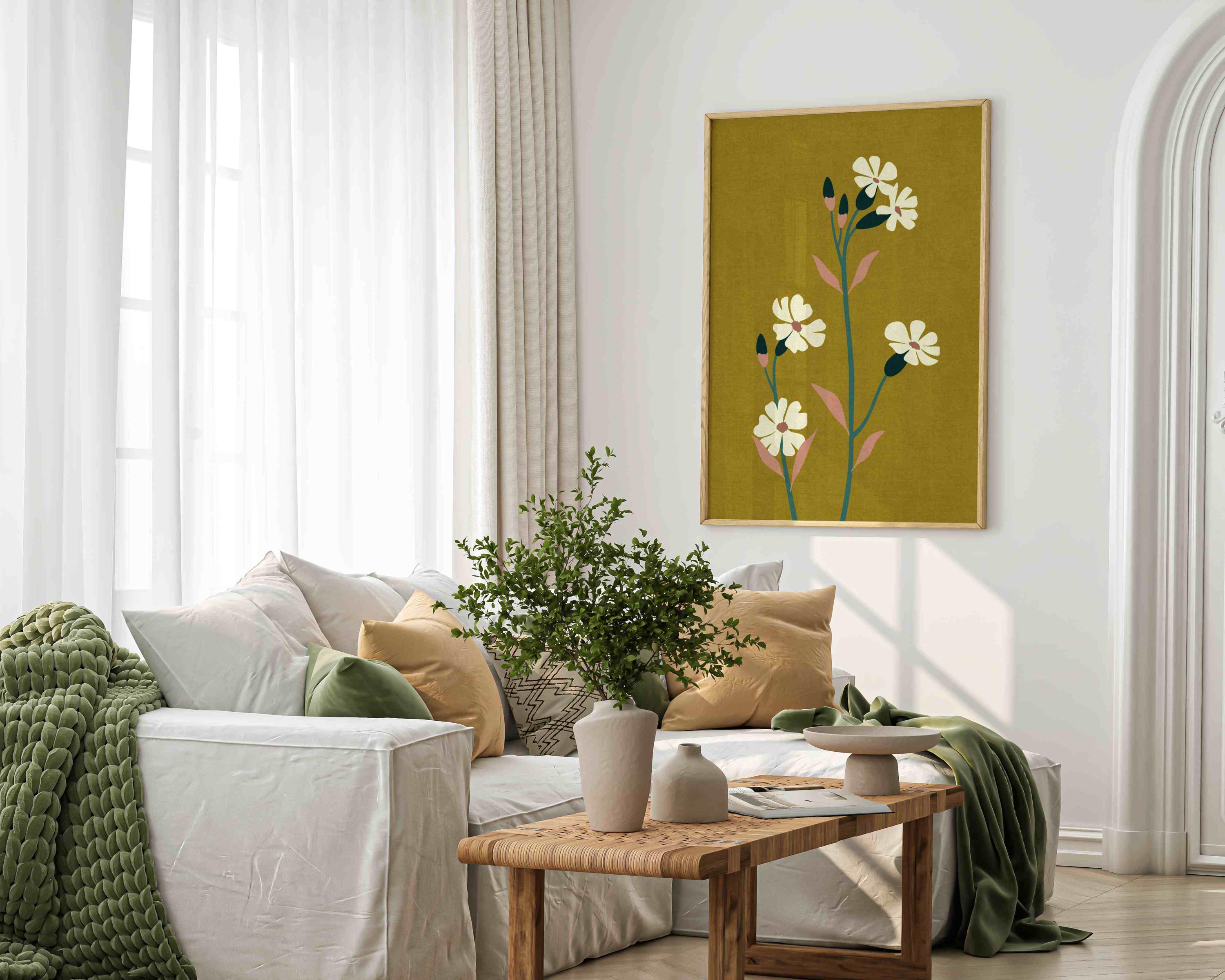 70s aesthetic floral art print with abstract flowers in lovely colors. Lovely retro flower illustration poster, perfect for enhancing up any space, be it your living room, bedroom, office, or anywhere else.