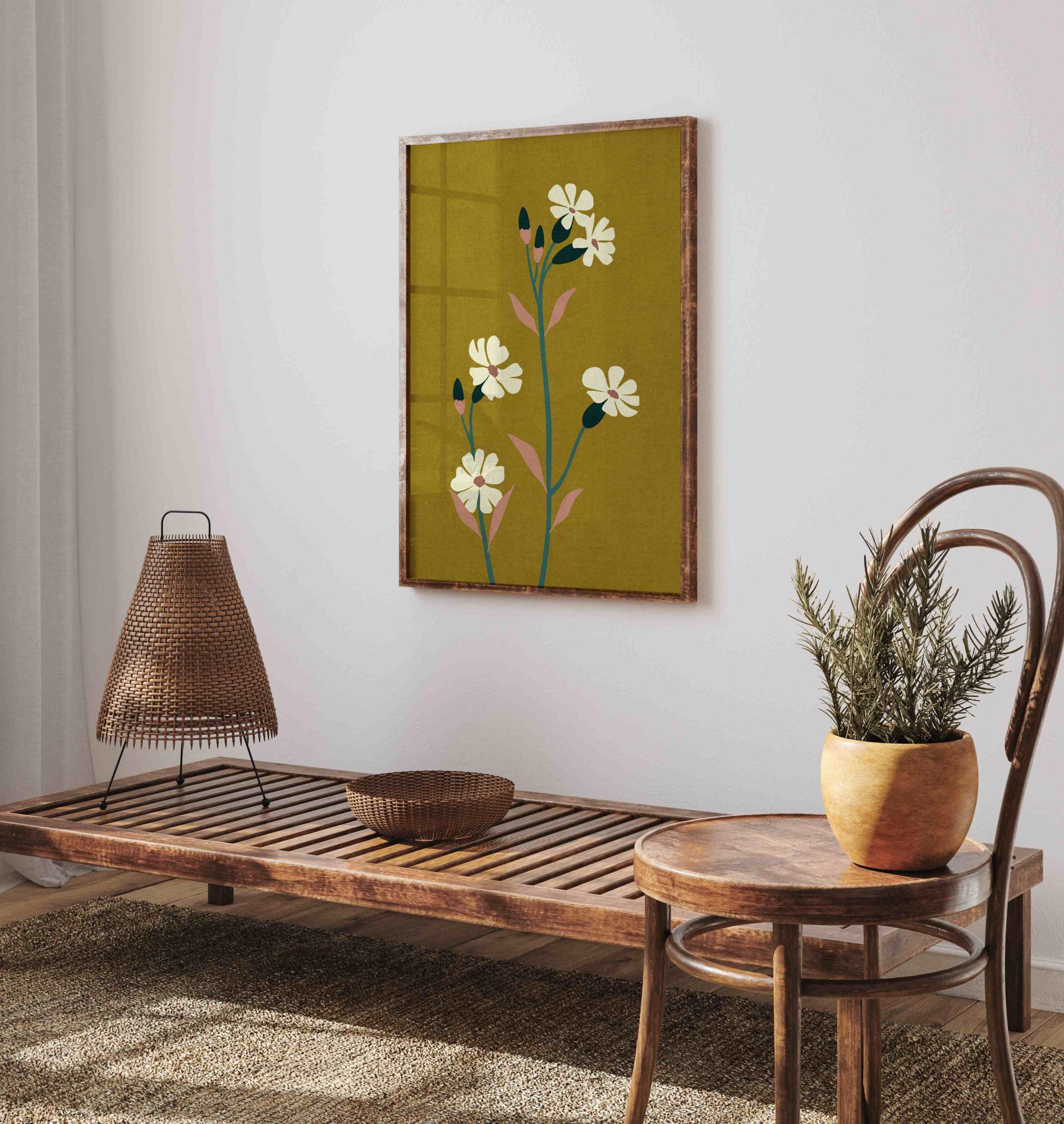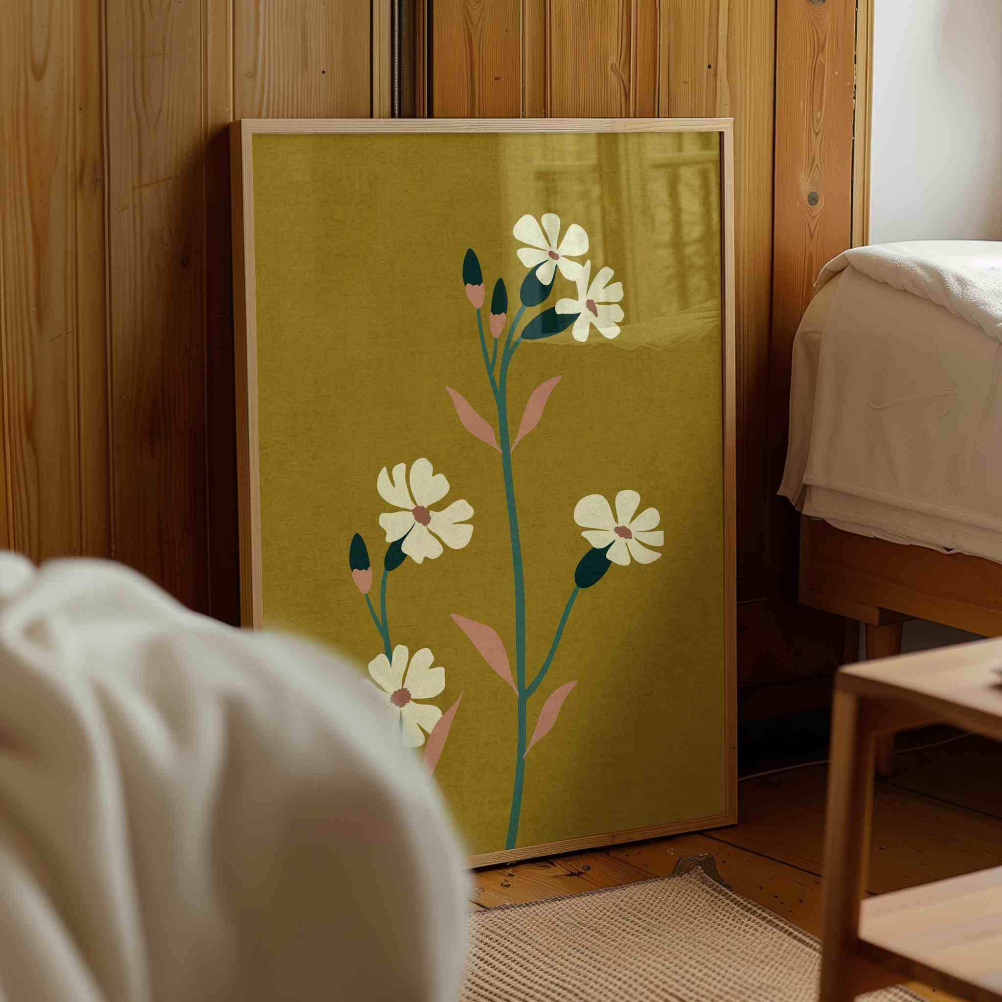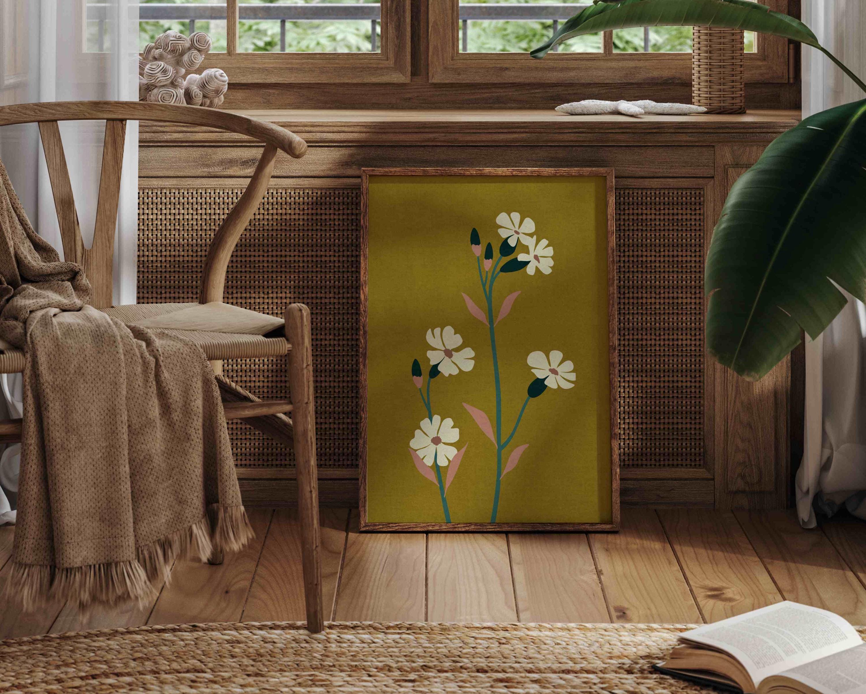 70s aesthetic floral art print with abstract flowers in lovely colors. Lovely retro flower illustration poster, perfect for enhancing up any space, be it your living room, bedroom, office, or anywhere else.