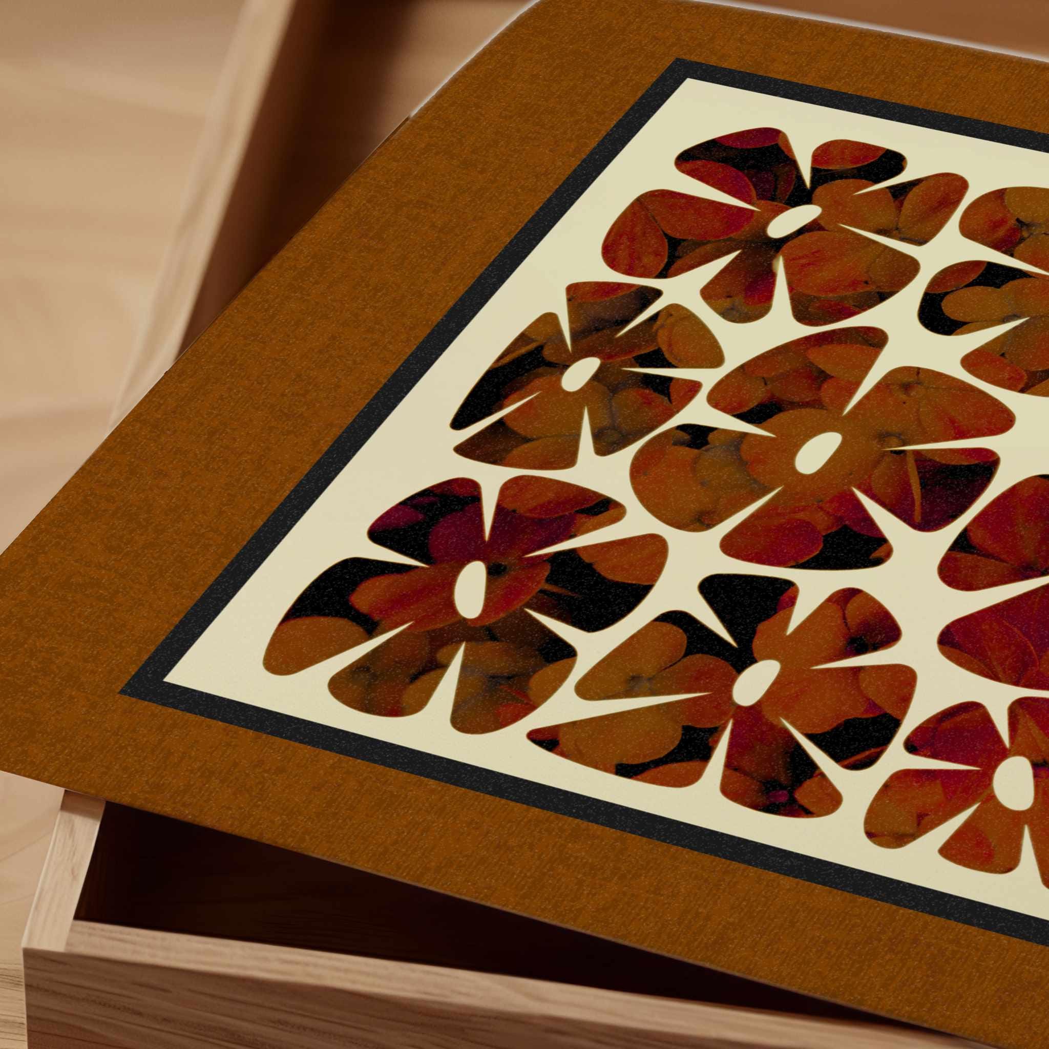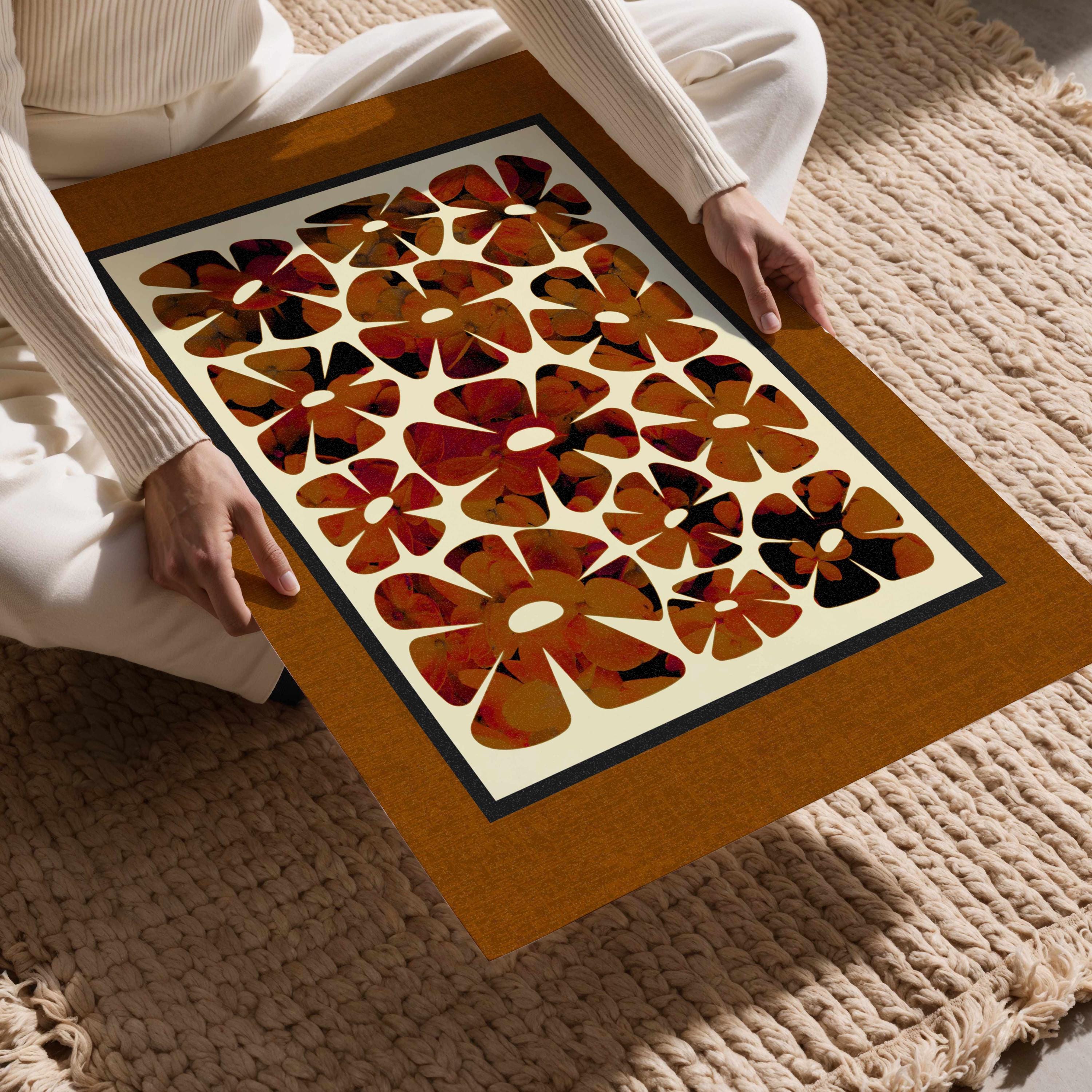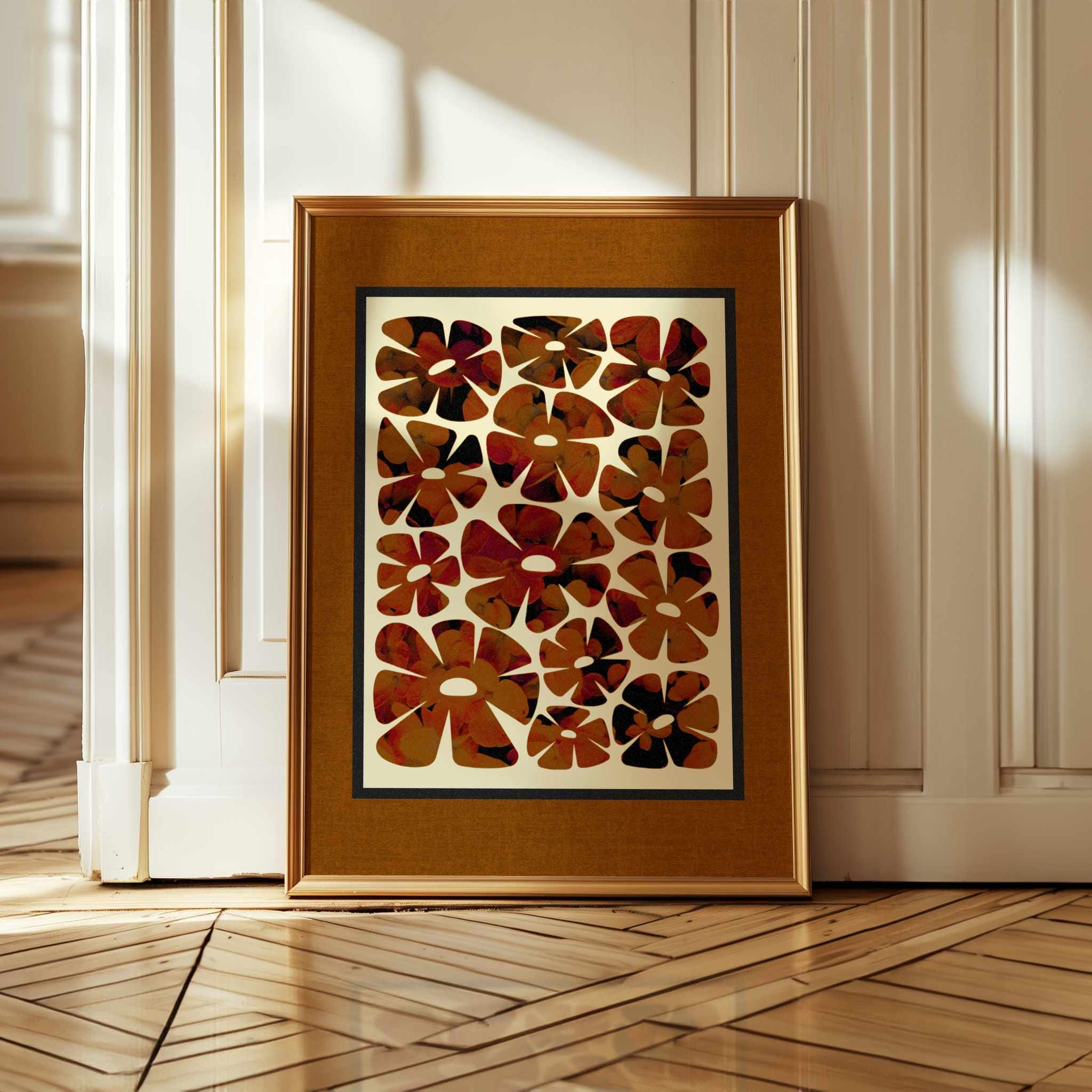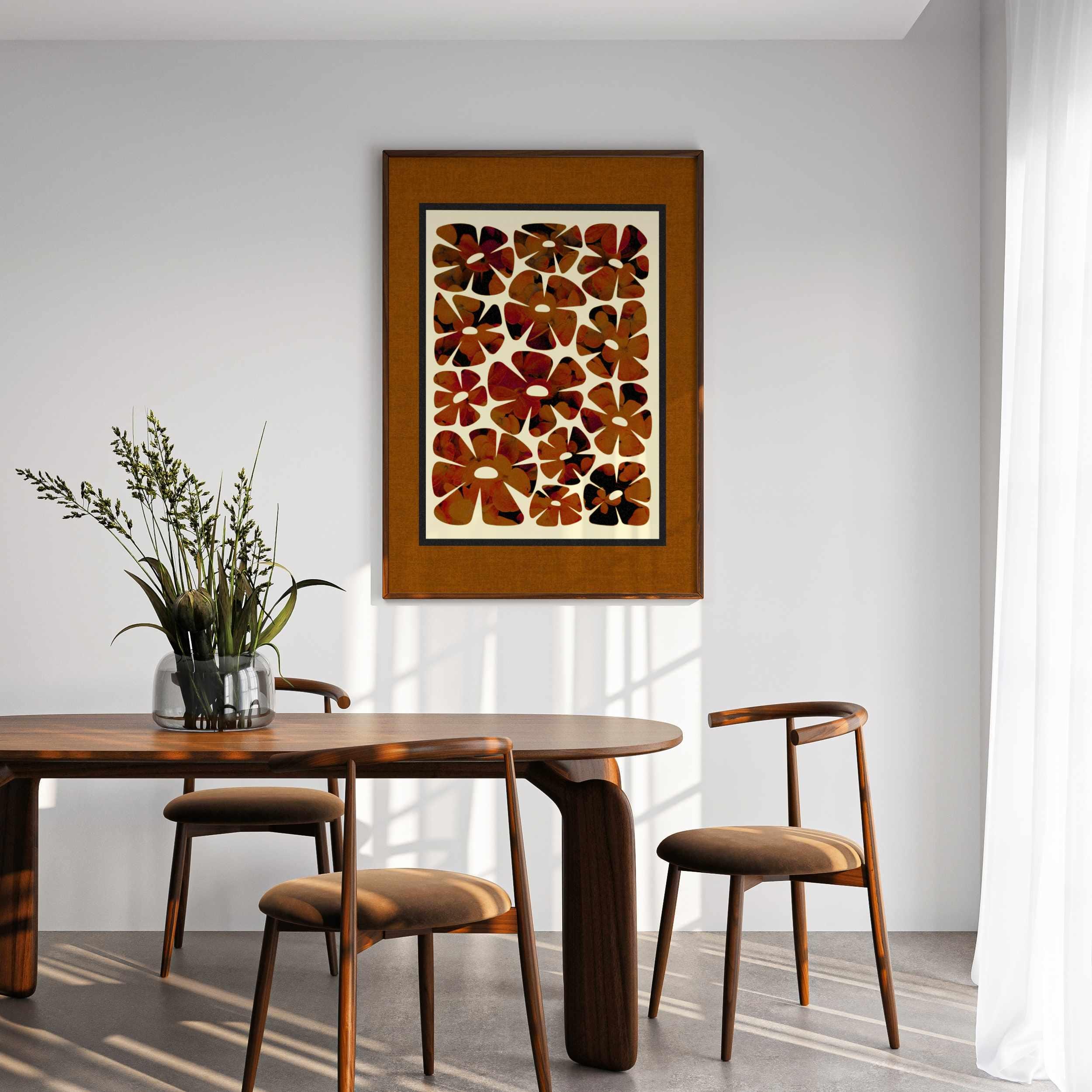 Abstract botanical print featuring soft organic plant shapes and a neutral retro floral design bordered with a warm brown mat. This artwork blends vintage-inspired aesthetics with a modern, boho home vibe, making it perfect for living rooms, bedrooms, offices, or gallery walls.