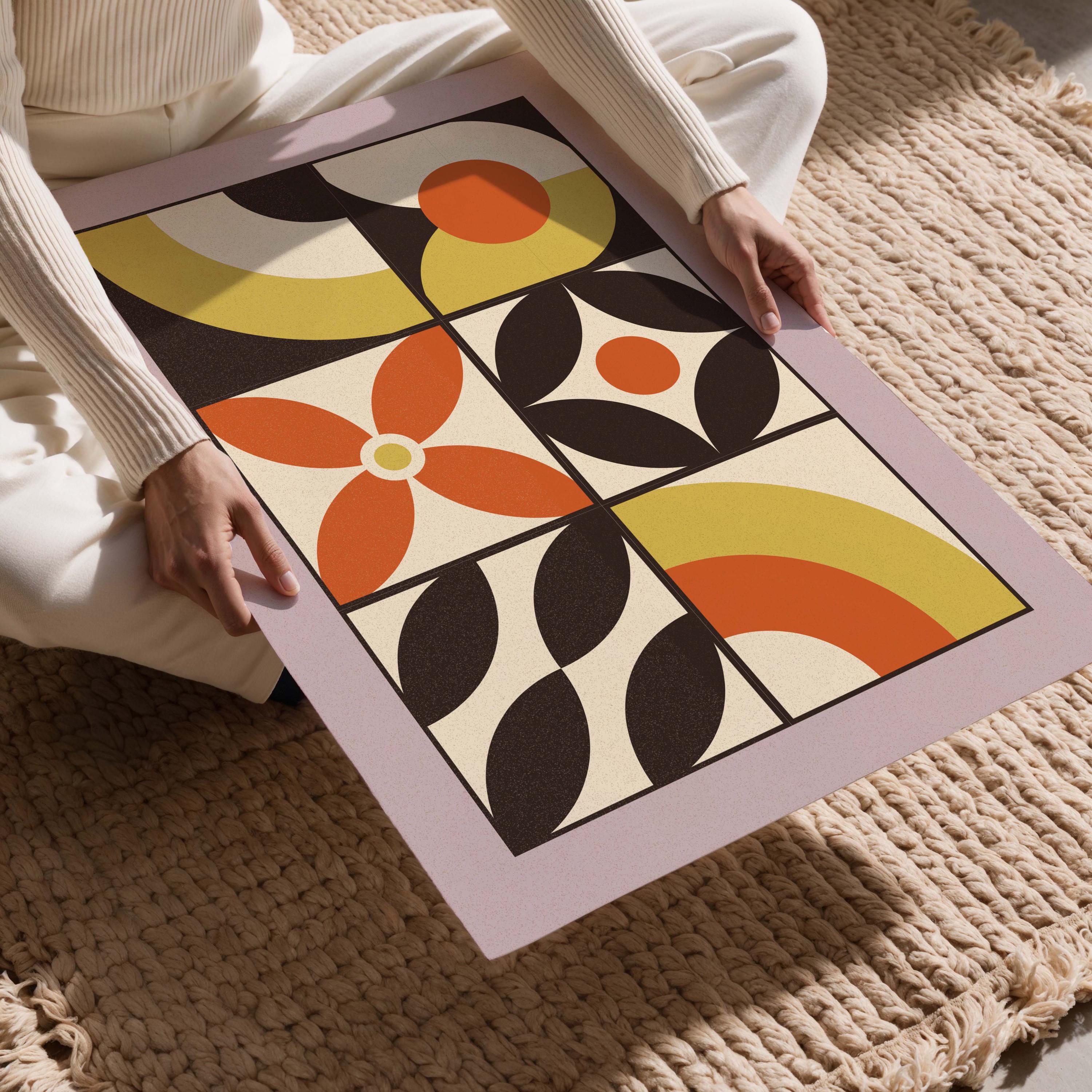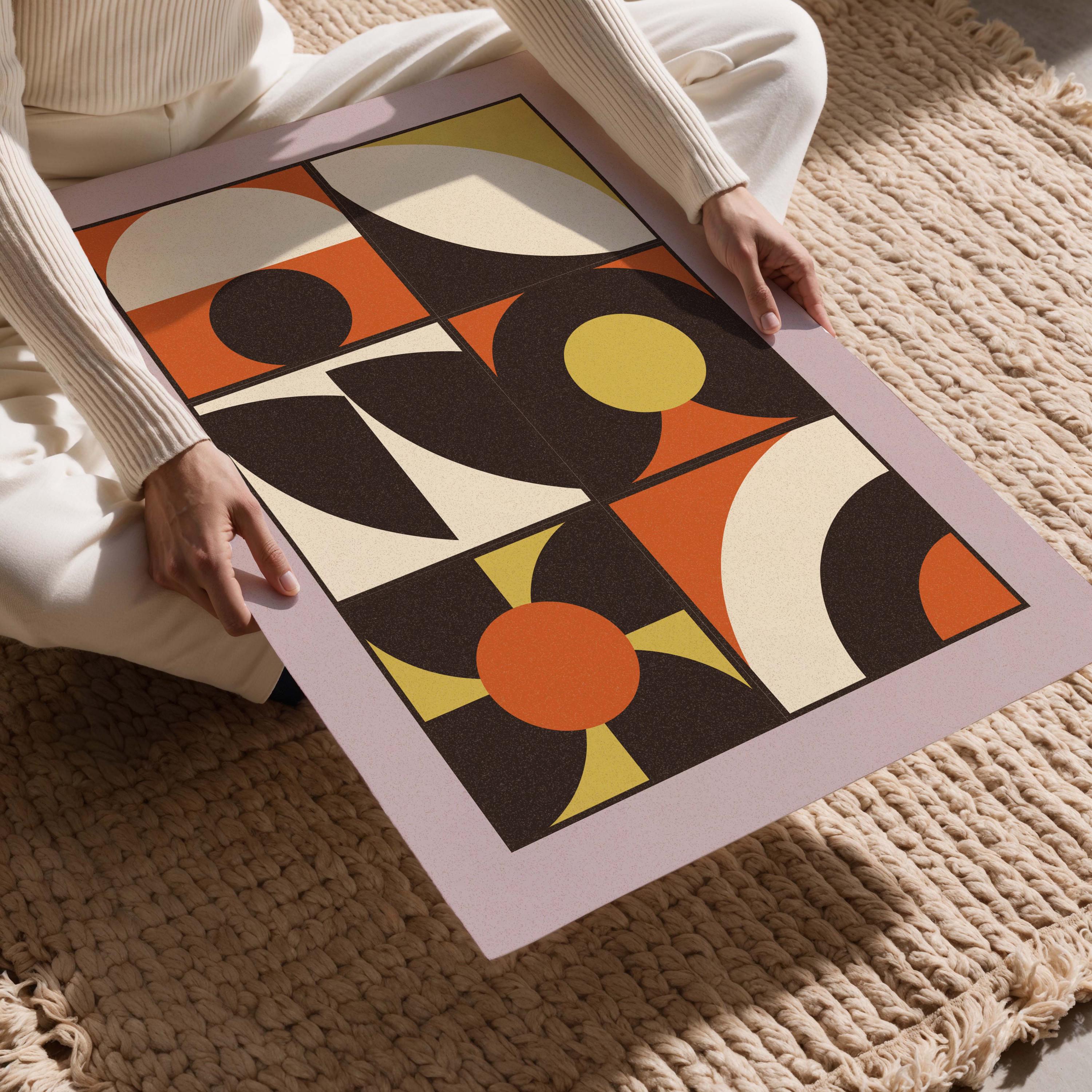 Colorful geometric wall art set with bauhaus-inspired shapes and funky colors. A mix of retro and modern energy, these prints are perfect for boho, eclectic, or mid century modern-inspired interiors.