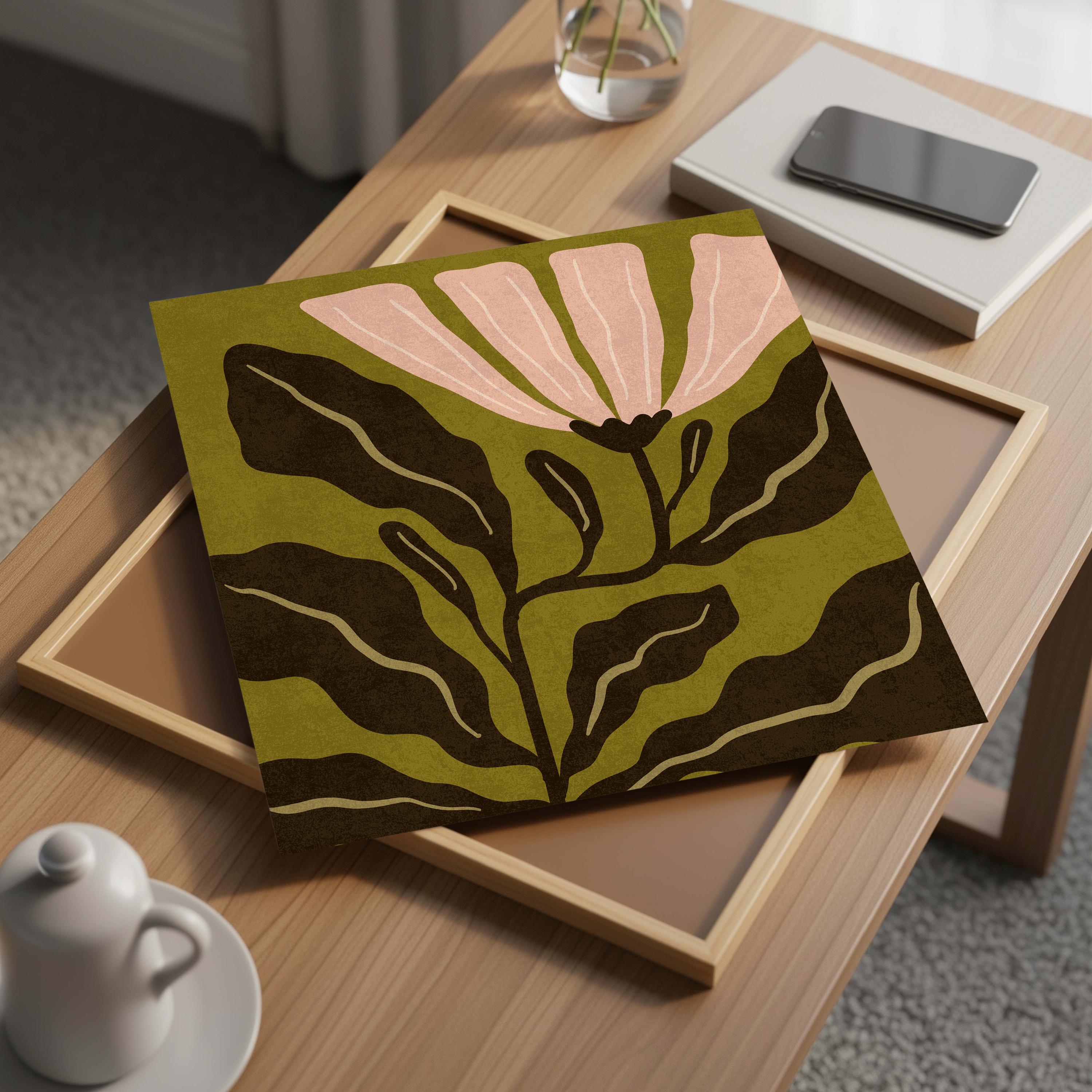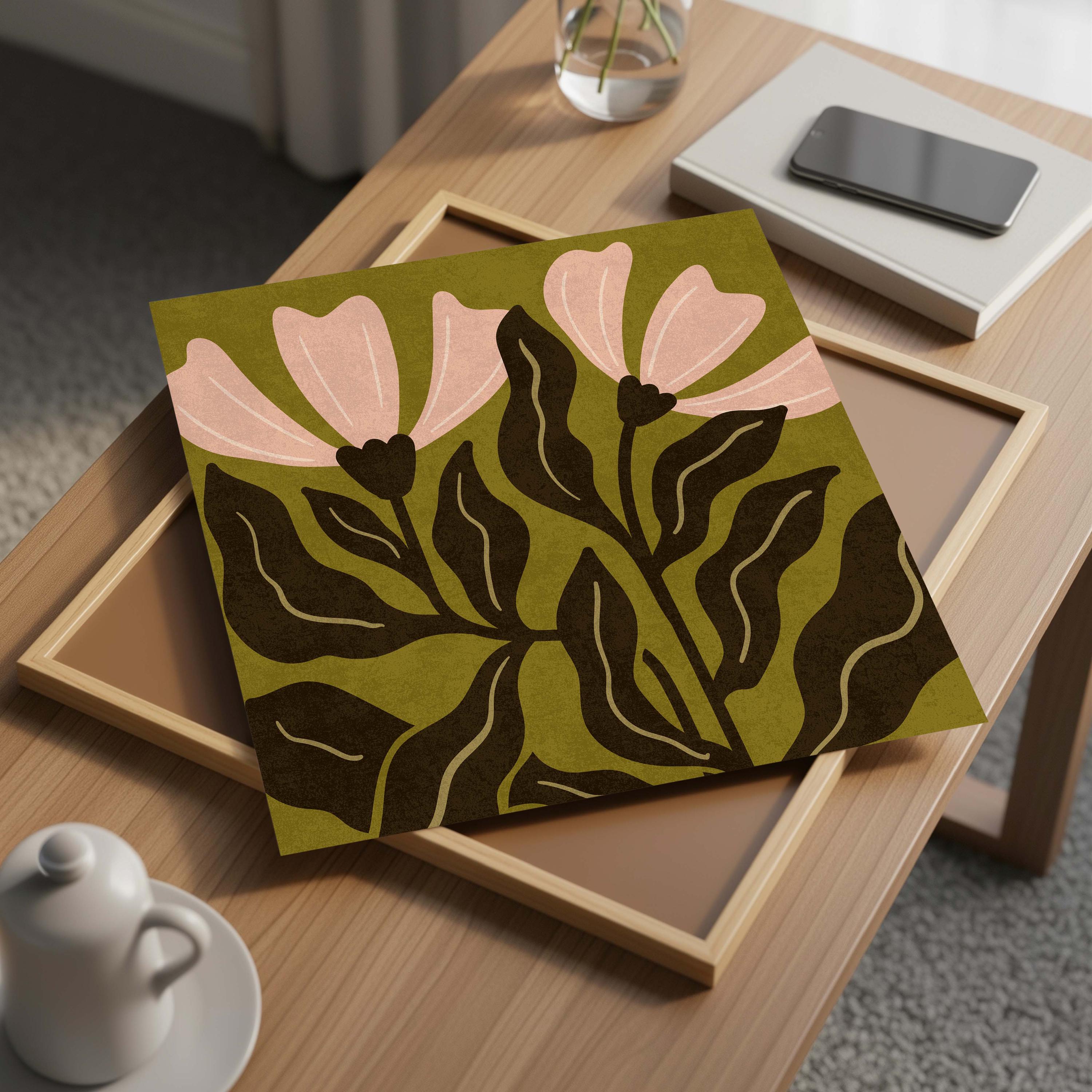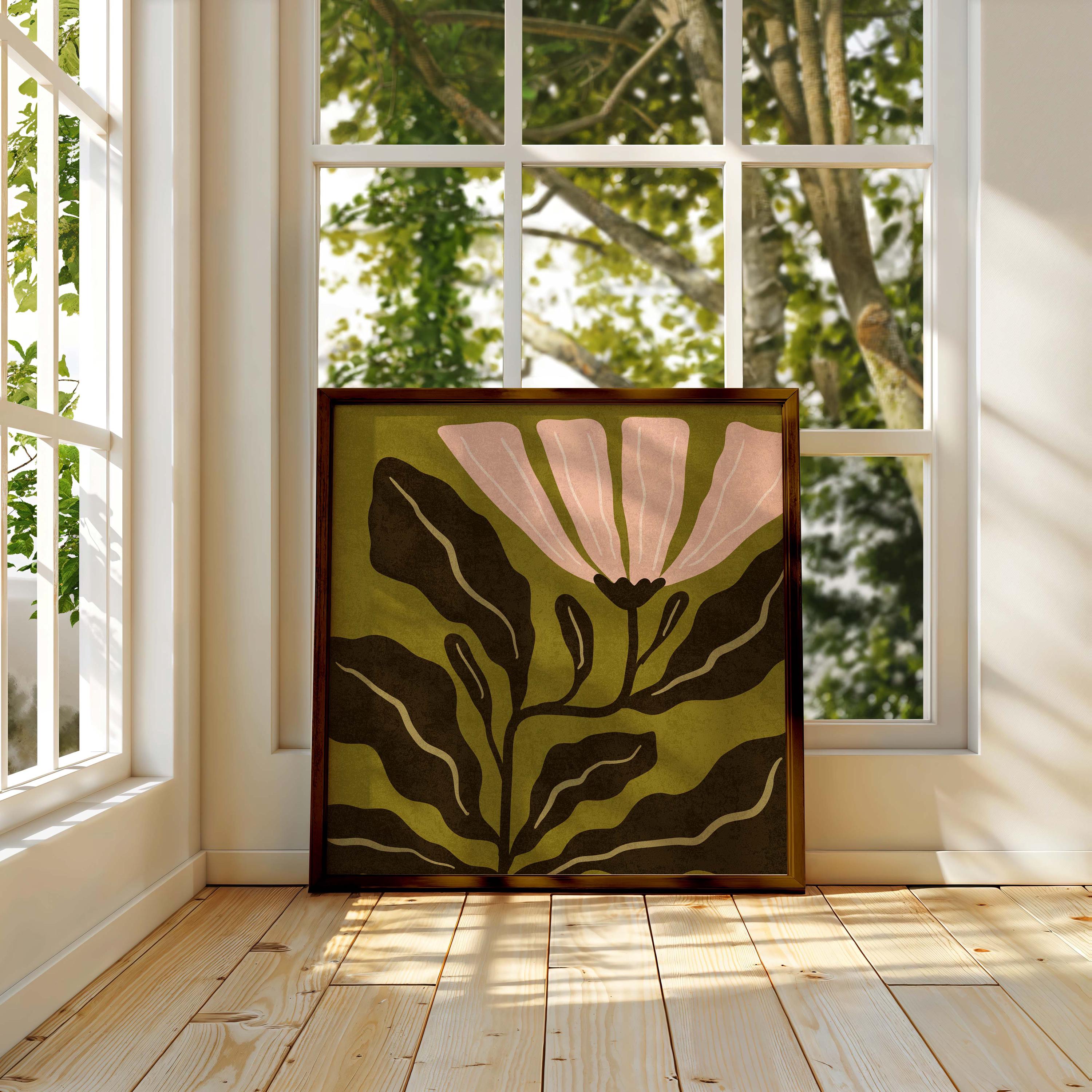 Retro floral print set of two featuring abstract botanical forms in earthy muted green and soft blush pink. Inspired by Matisse cutouts and 70s floral motifs, this set blends vintage style with modern minimalism.