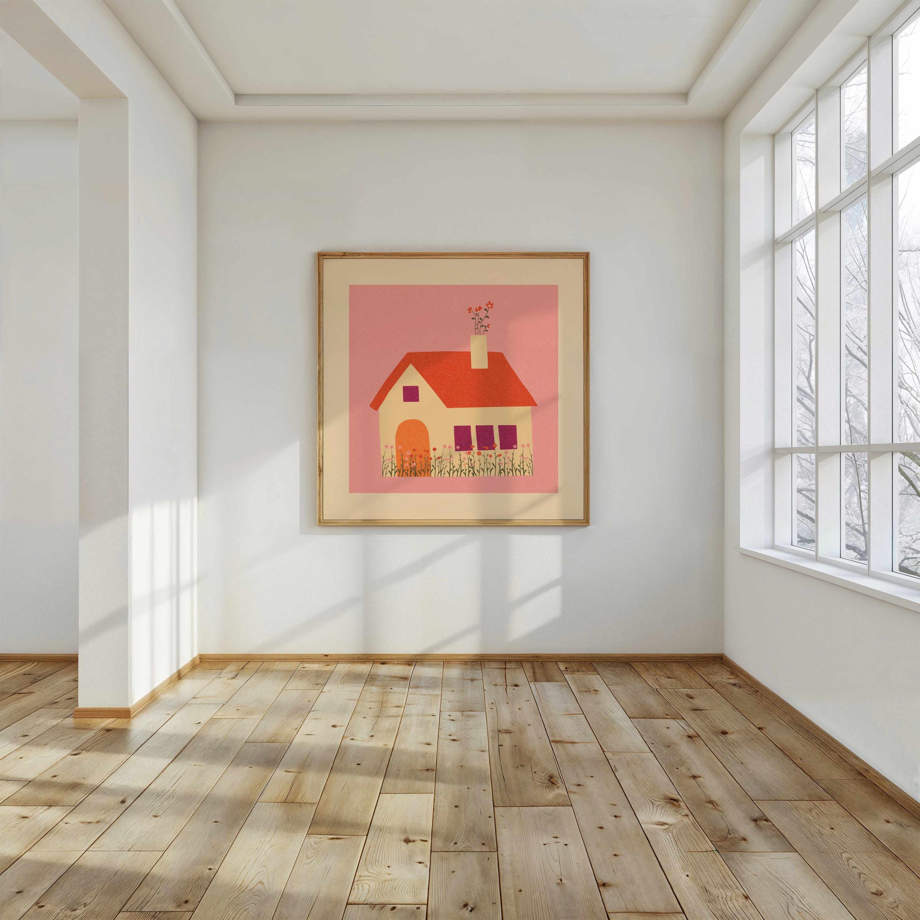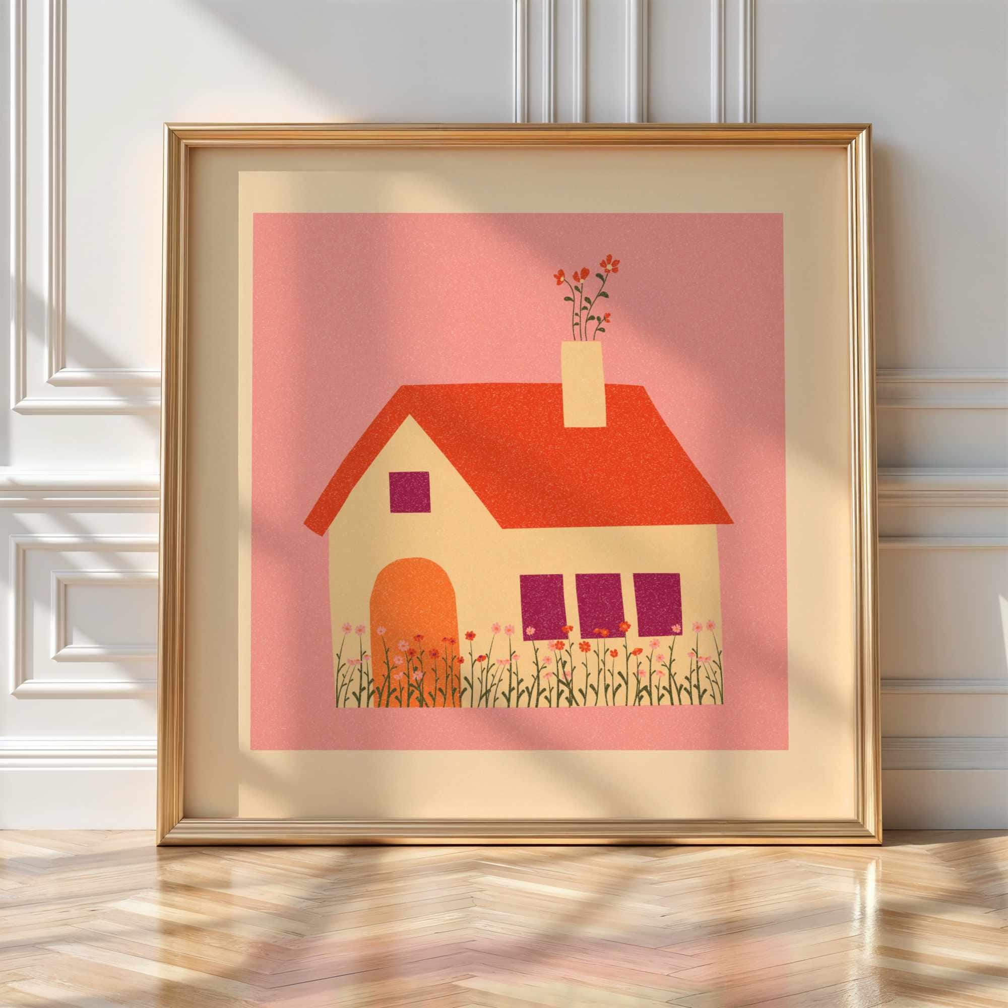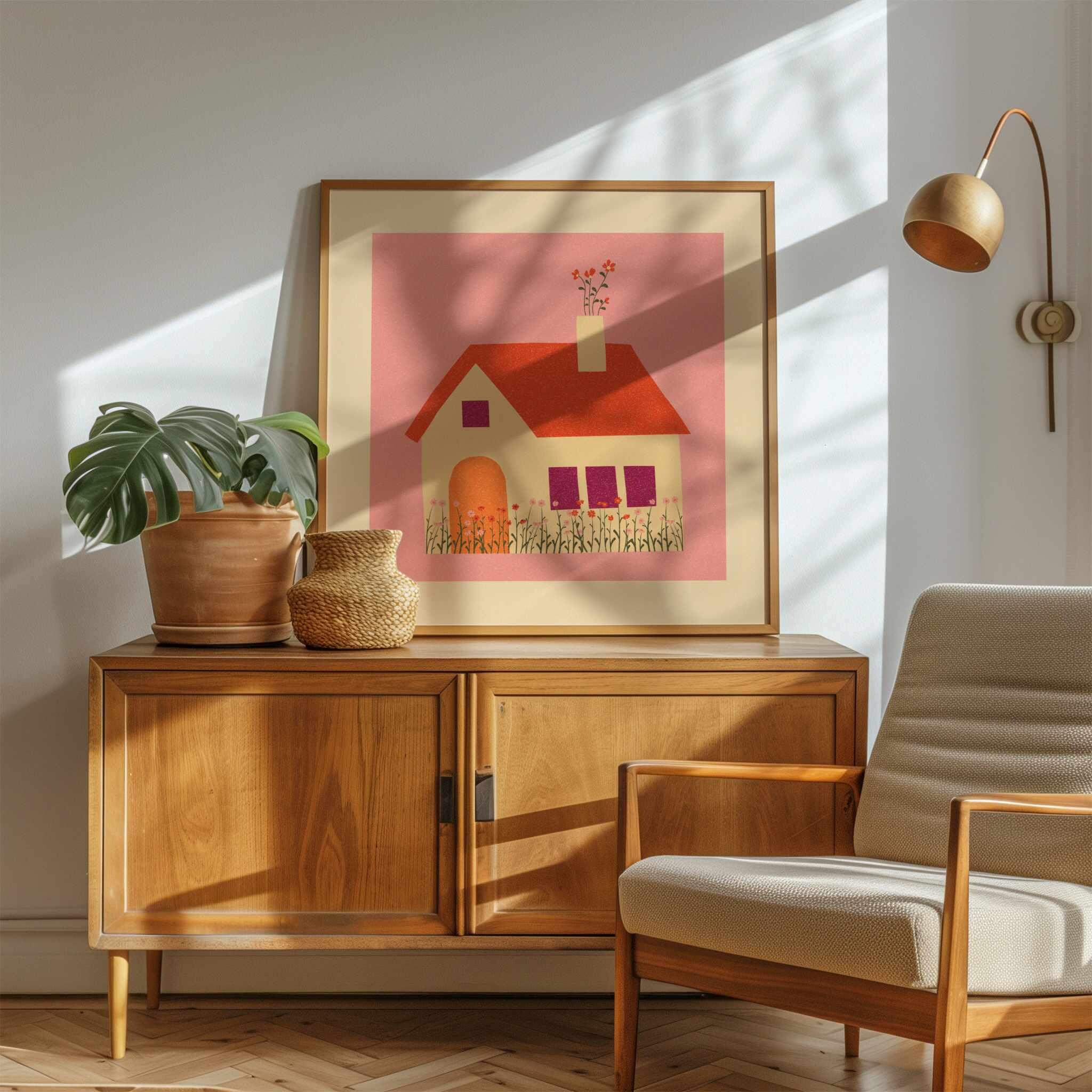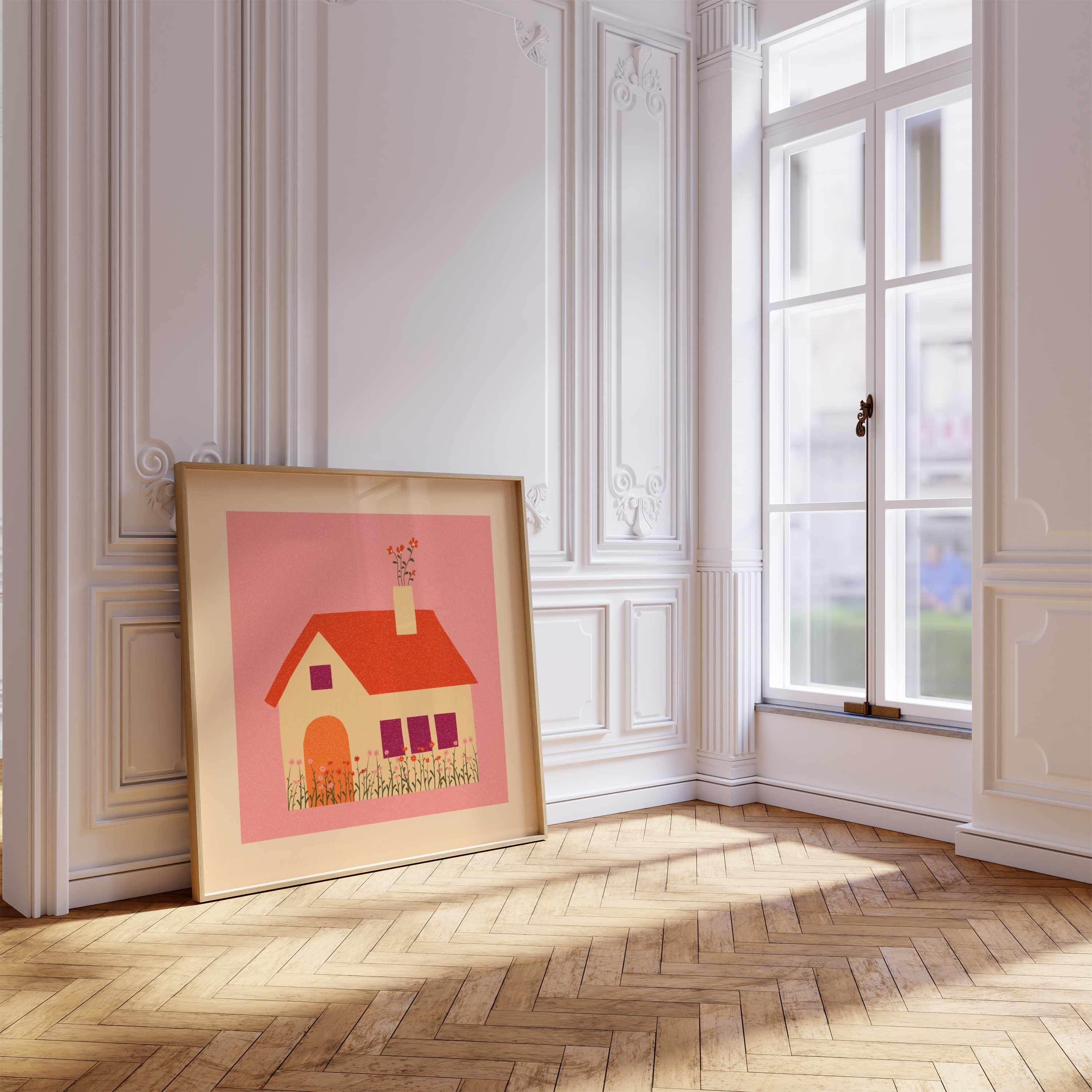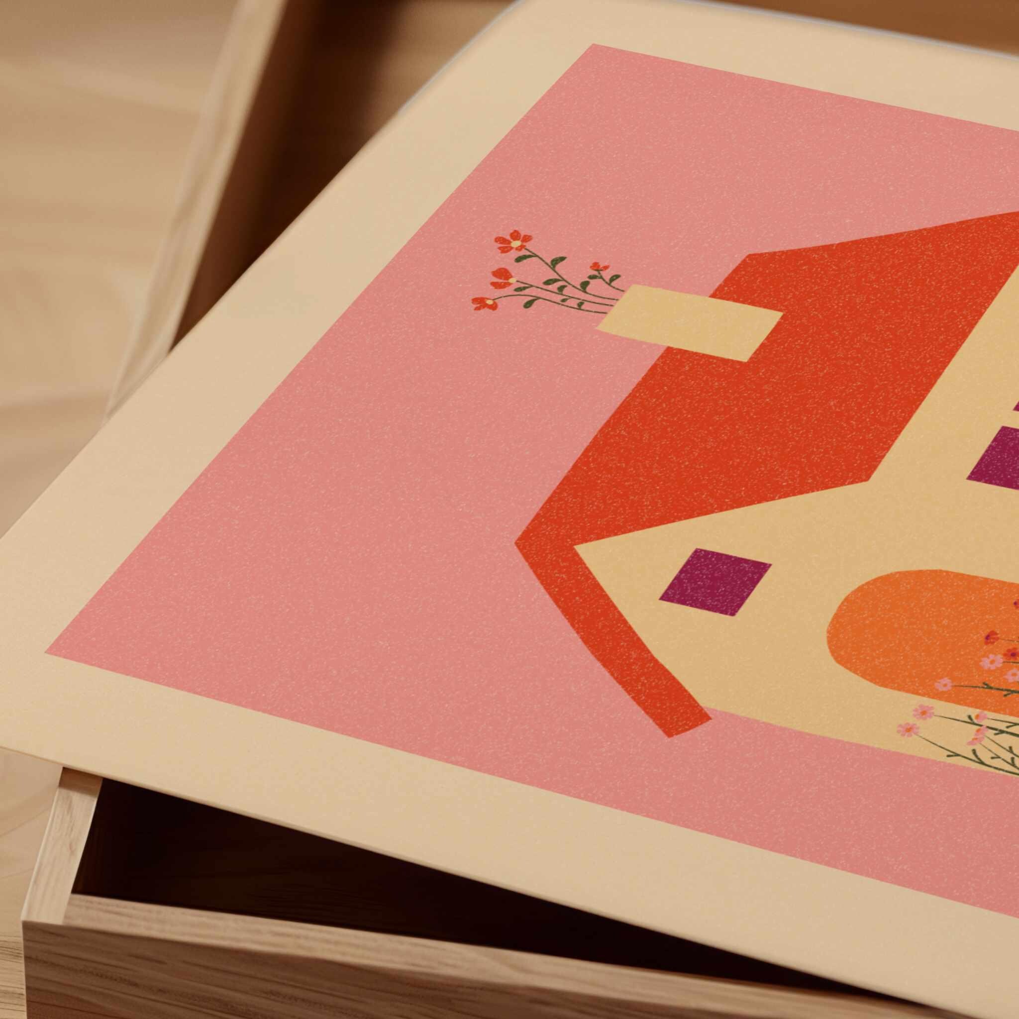 A heartwarming lesbian art print that feels like home. Celebrate love in the sweetest way with this romantic lesbian house art print that quietly celebrates identity through color.