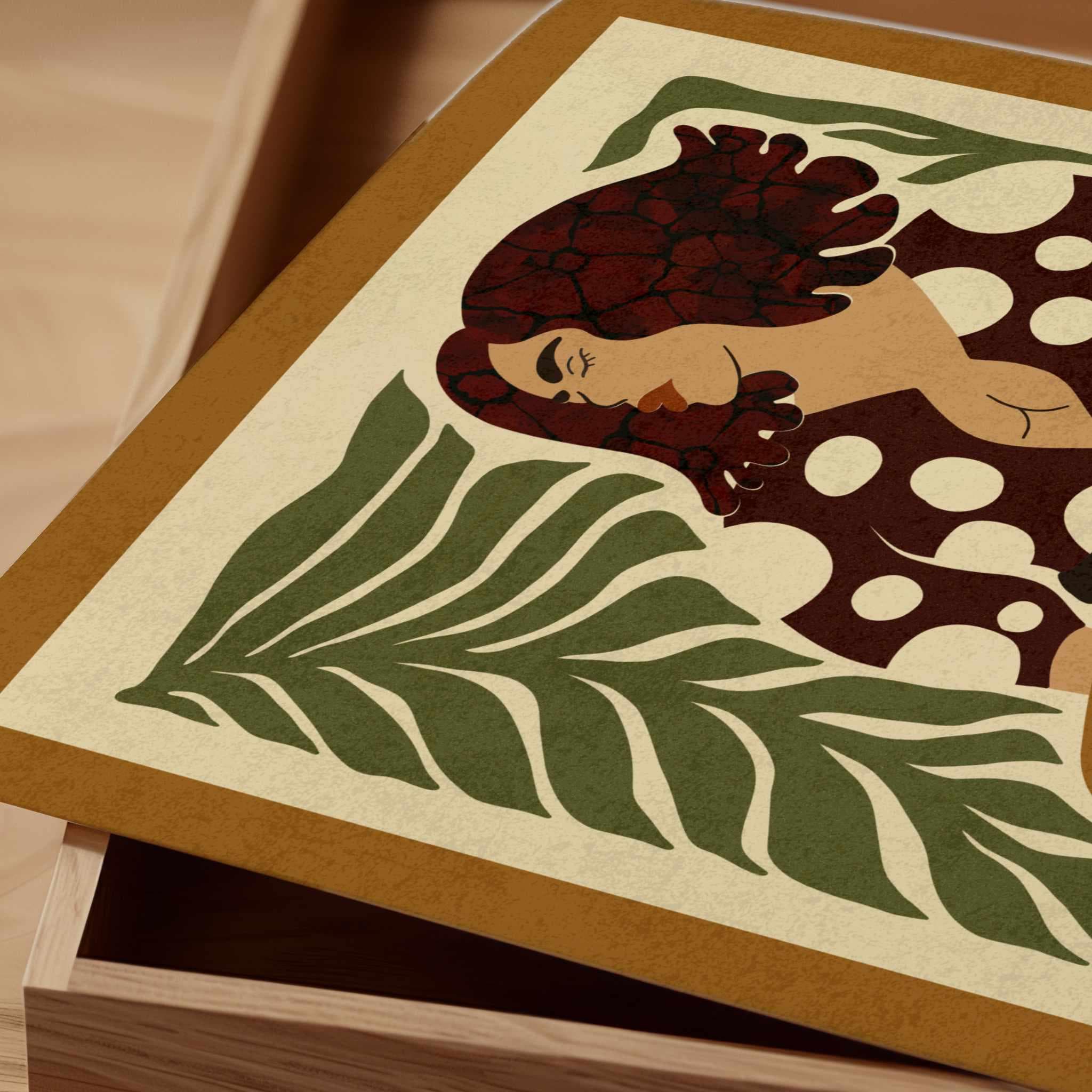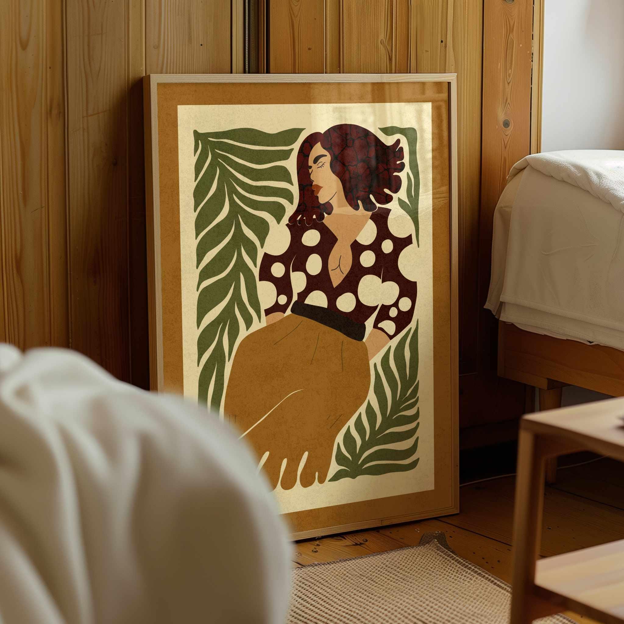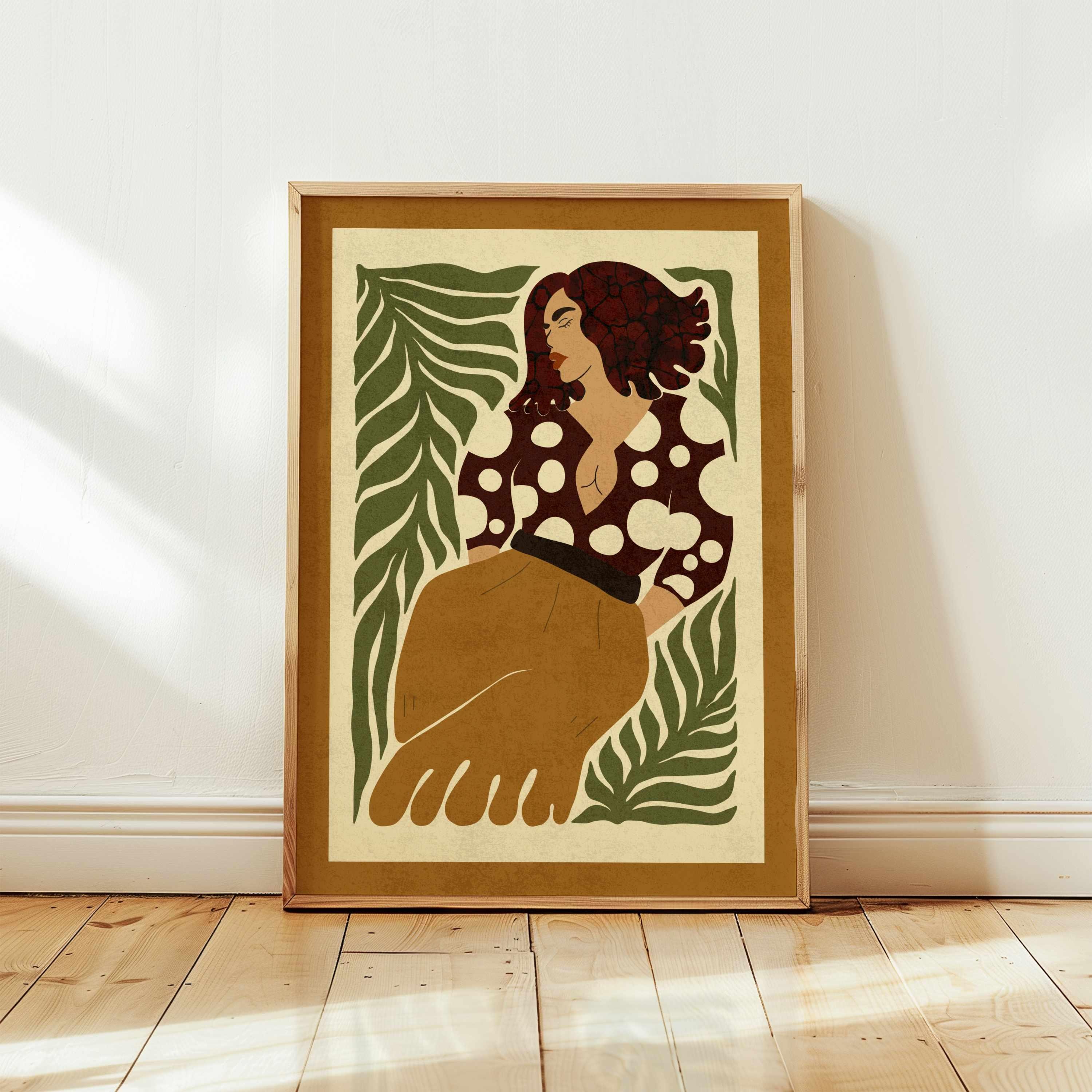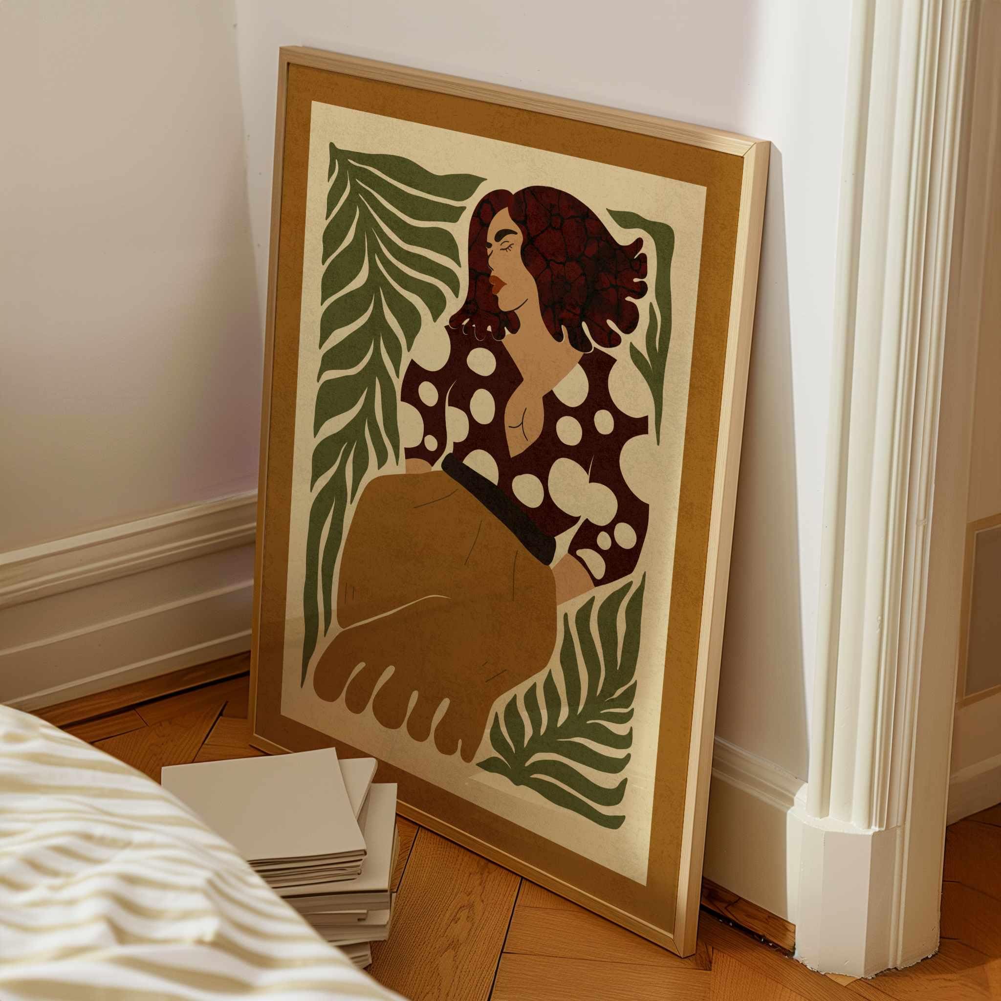 Abstract Matisse style woman art print featuring a feminine silhouette surrounded by botanical elements. With its earthy tones and soft, organic shapes, this piece complements a variety of interior styles, including Scandinavian, eclectic, and contemporary decor. This minimalist wall art blends boho aesthetics with mid-century modern design, making it perfect for living rooms, bedrooms, offices or as a unique gift for her.