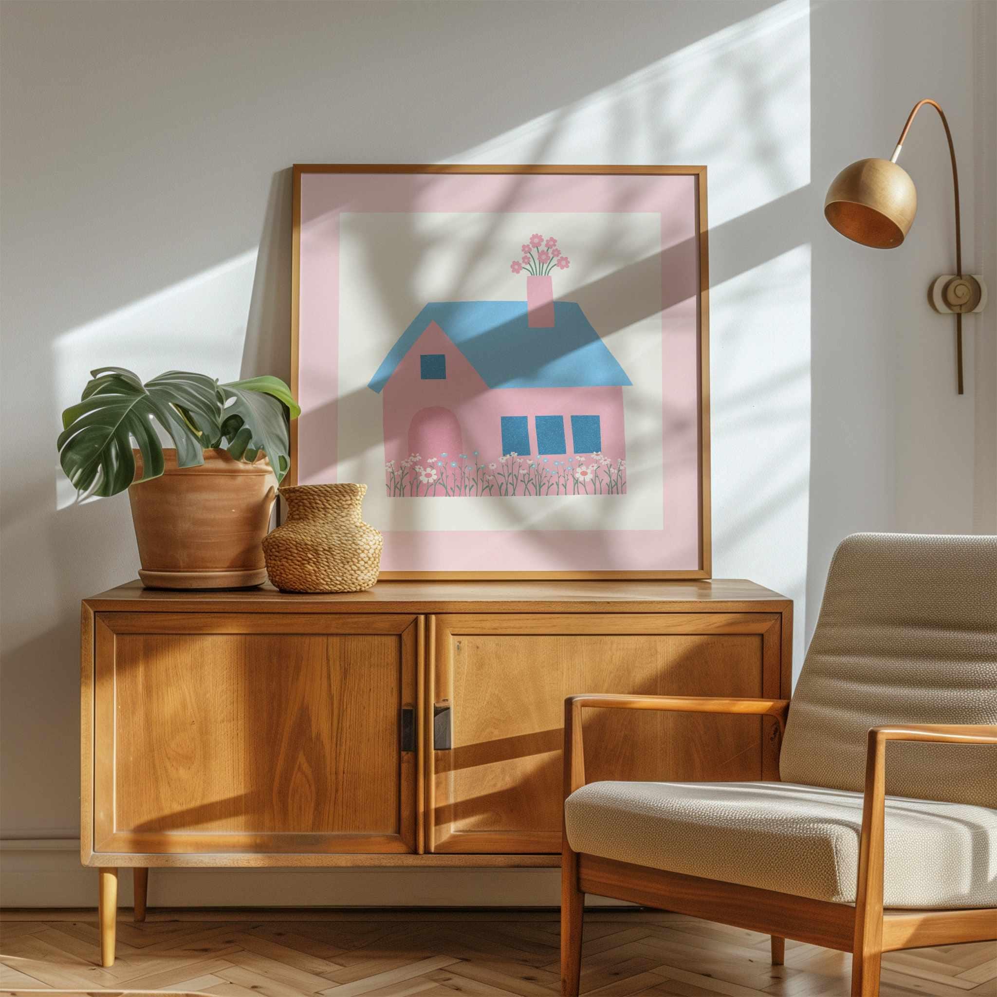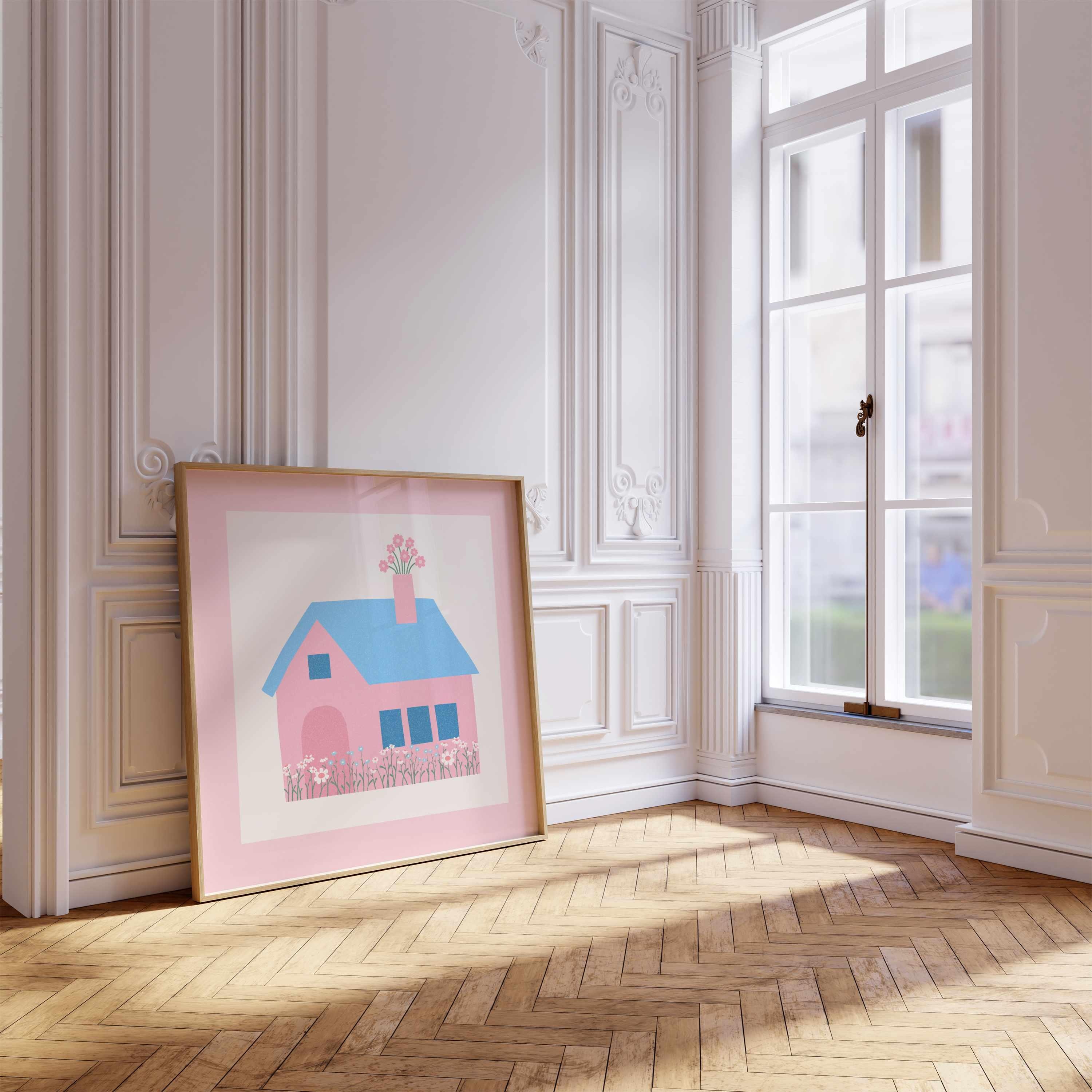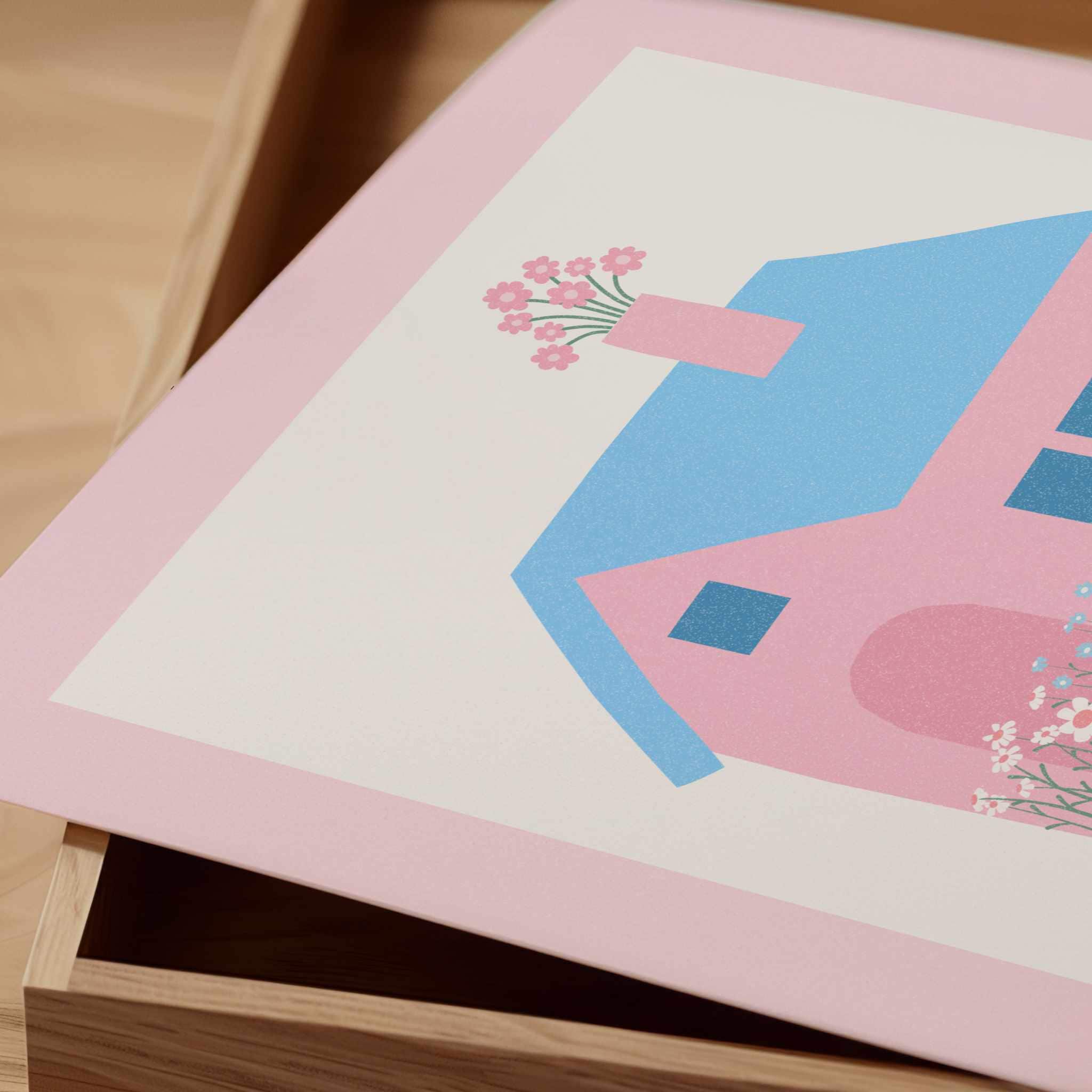 Minimal art print featuring a cute house that quietly celebrates identity through color. This piece uses the color palette of the transgender pride flag translated into blooming flowers and cozy home-like atmosphere that feels personal and open to interpretation. It's subtle enough for any room, and meaningful enough to carry weight. A gentle way to mark who you are, or support someone you love. ♡