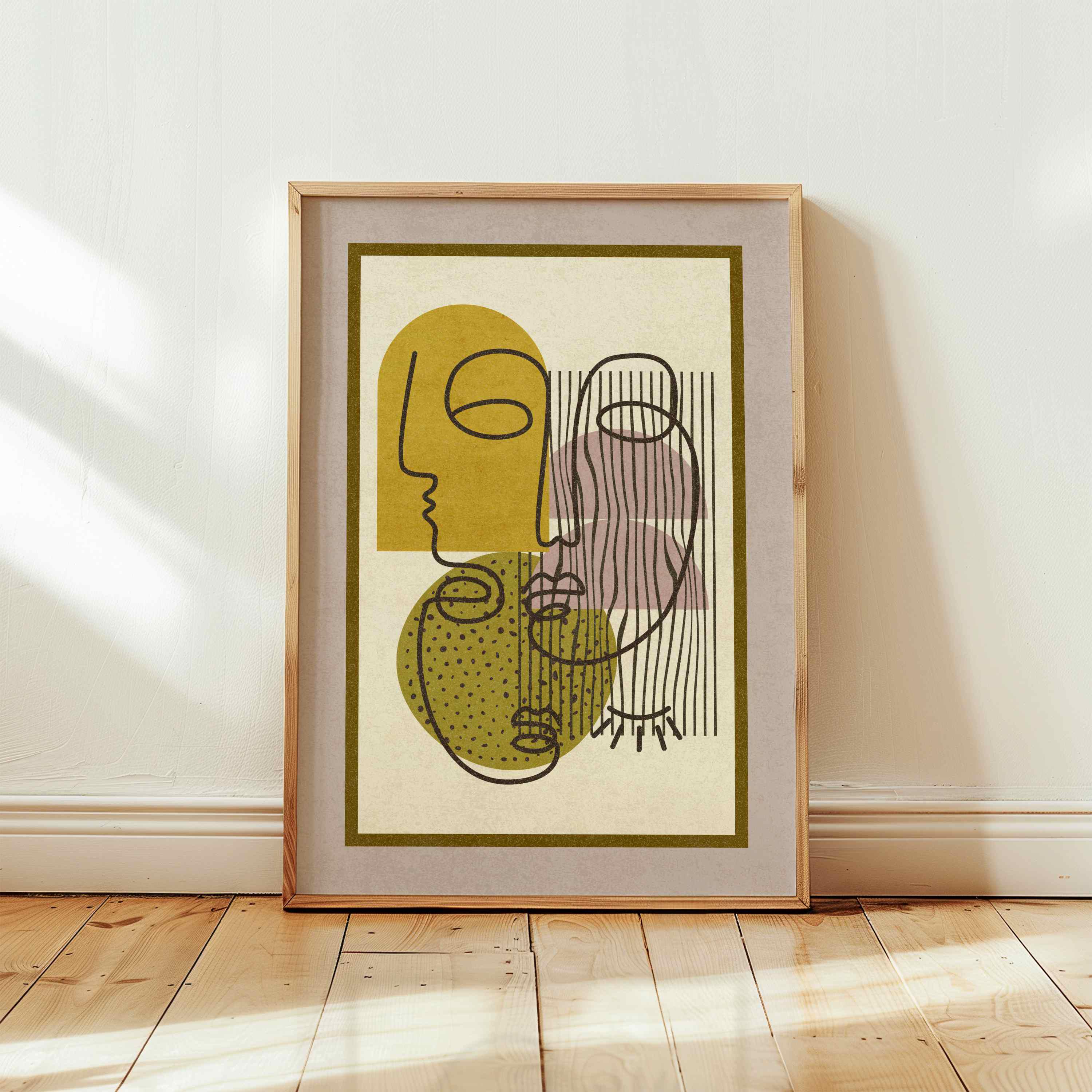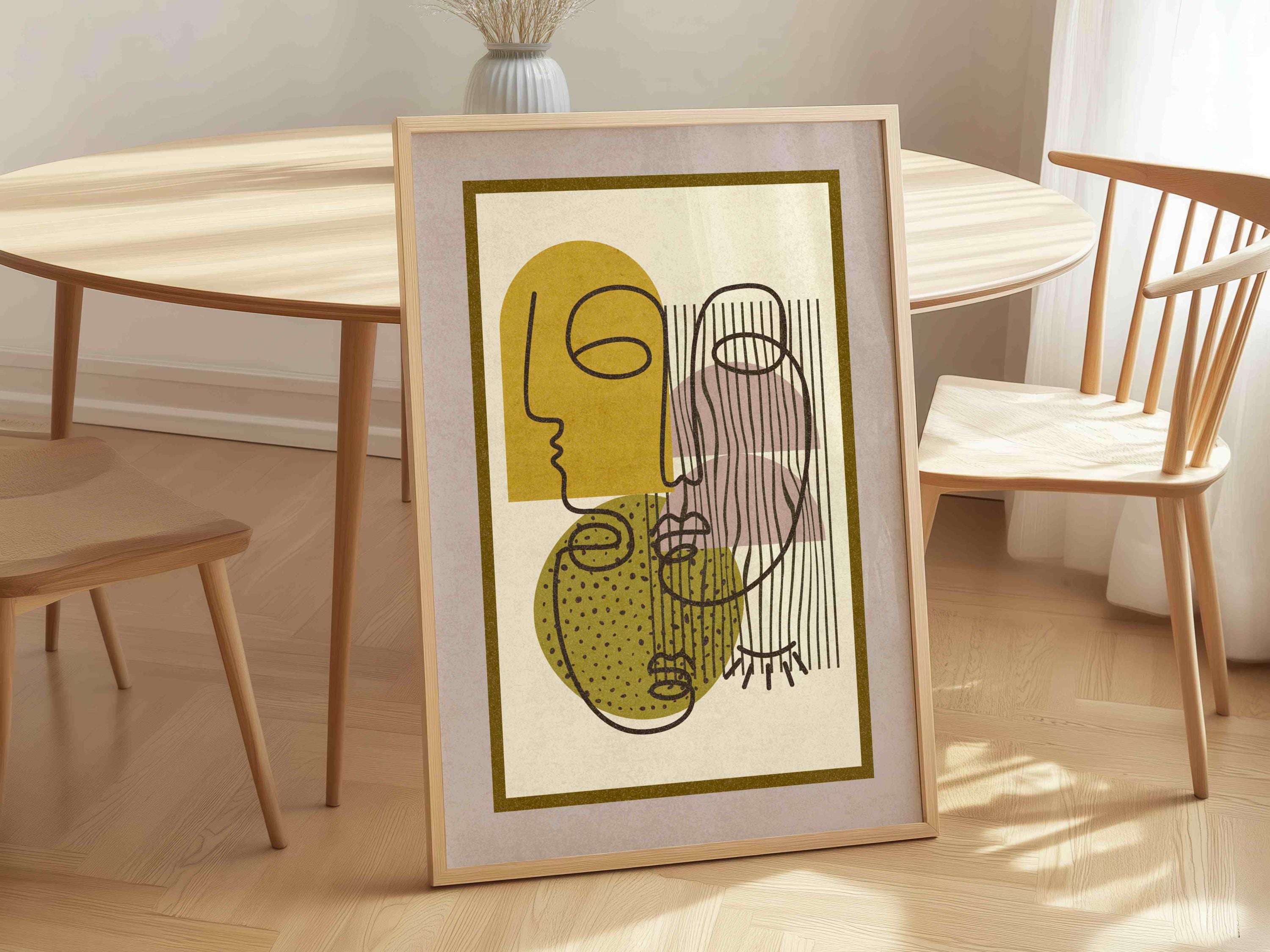 This modern abstract face print brings together clean lines and simple shapes for a bold yet minimal look. Inspired by mid-century design, it’s the kind of piece that works anywhere — your living room, bedroom, entryway, or office. It’s easy to style and adds a cool, modern vibe without being too loud.