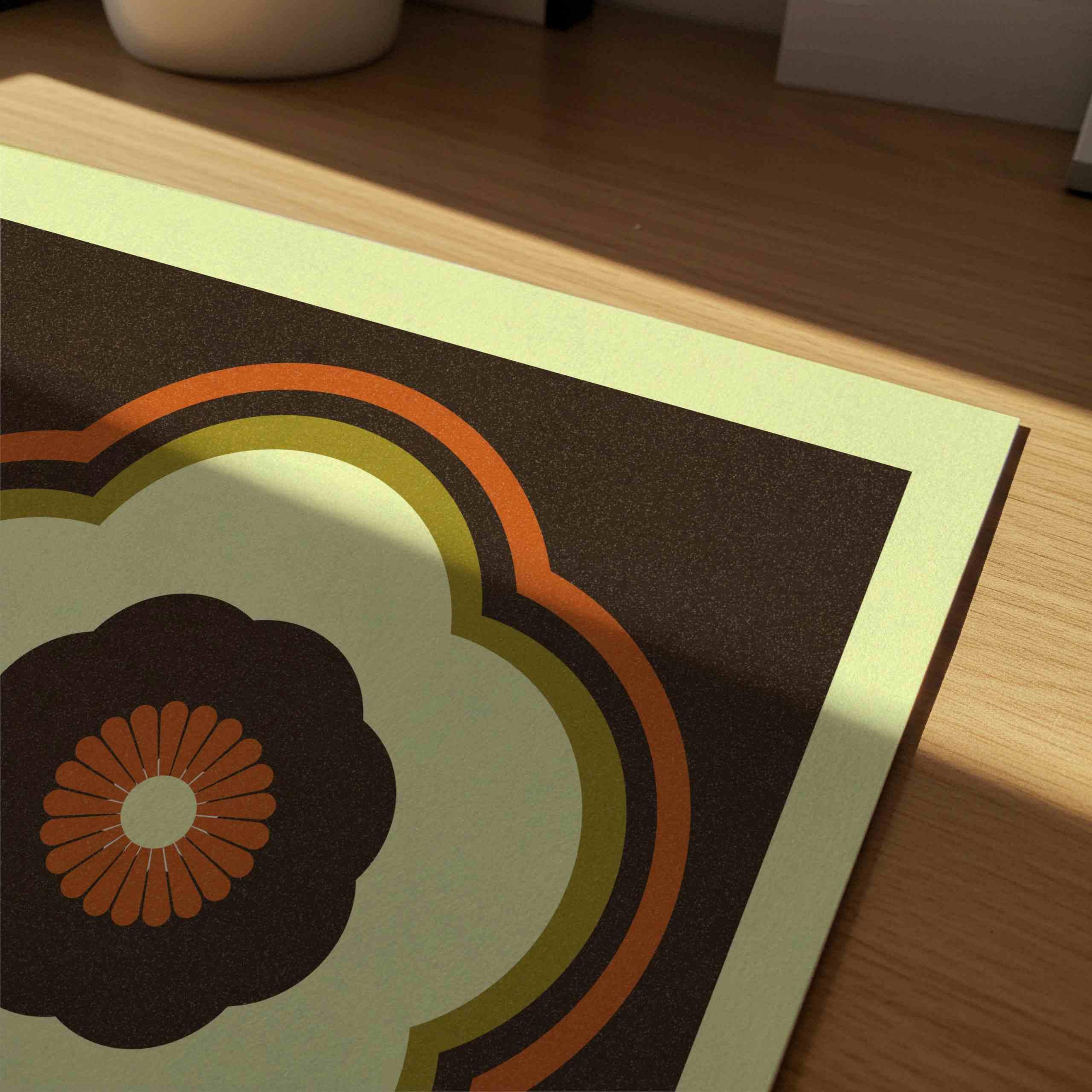 70s aesthetic art print with groovy geometric flower in funky colors. Abstract retro flower illustration poster, perfect for enhancing up any space, be it your living room, nursery, bedroom, office, or anywhere else. This print also makes a thoughtful and unique gift for your friend for a special event like Christmas, birthday, or housewarming.