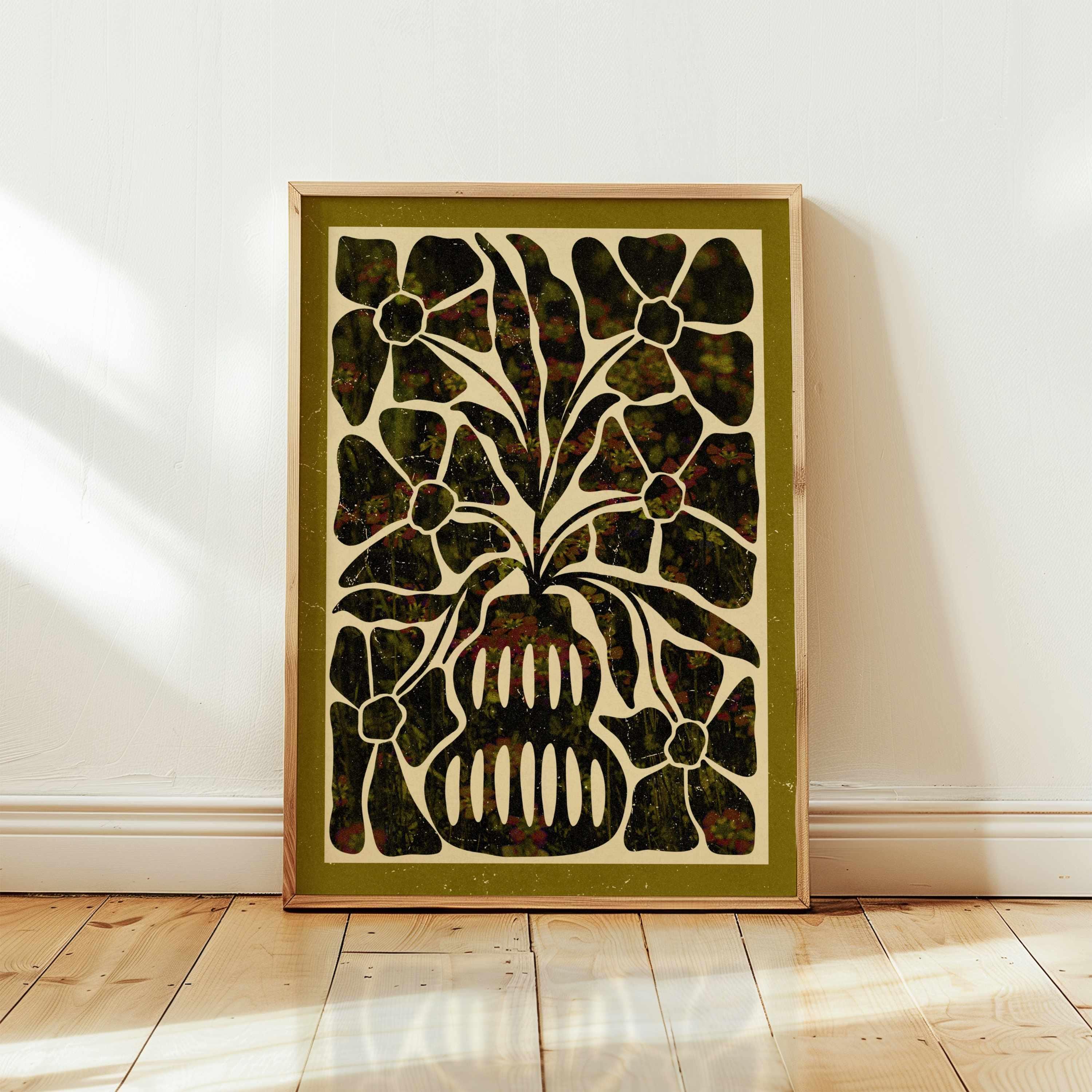 Abstract retro flower print with mid century vibes, Matisse-inspired botanical elements and lovely earthy colors. This 60s-70s aesthetic floral print is perfect for enhancing up any space, be it your living room, bedroom, dining room, office, or anywhere else. This print also makes a thoughtful and unique gift for your friend for a special event like Christmas, birthday, or housewarming.