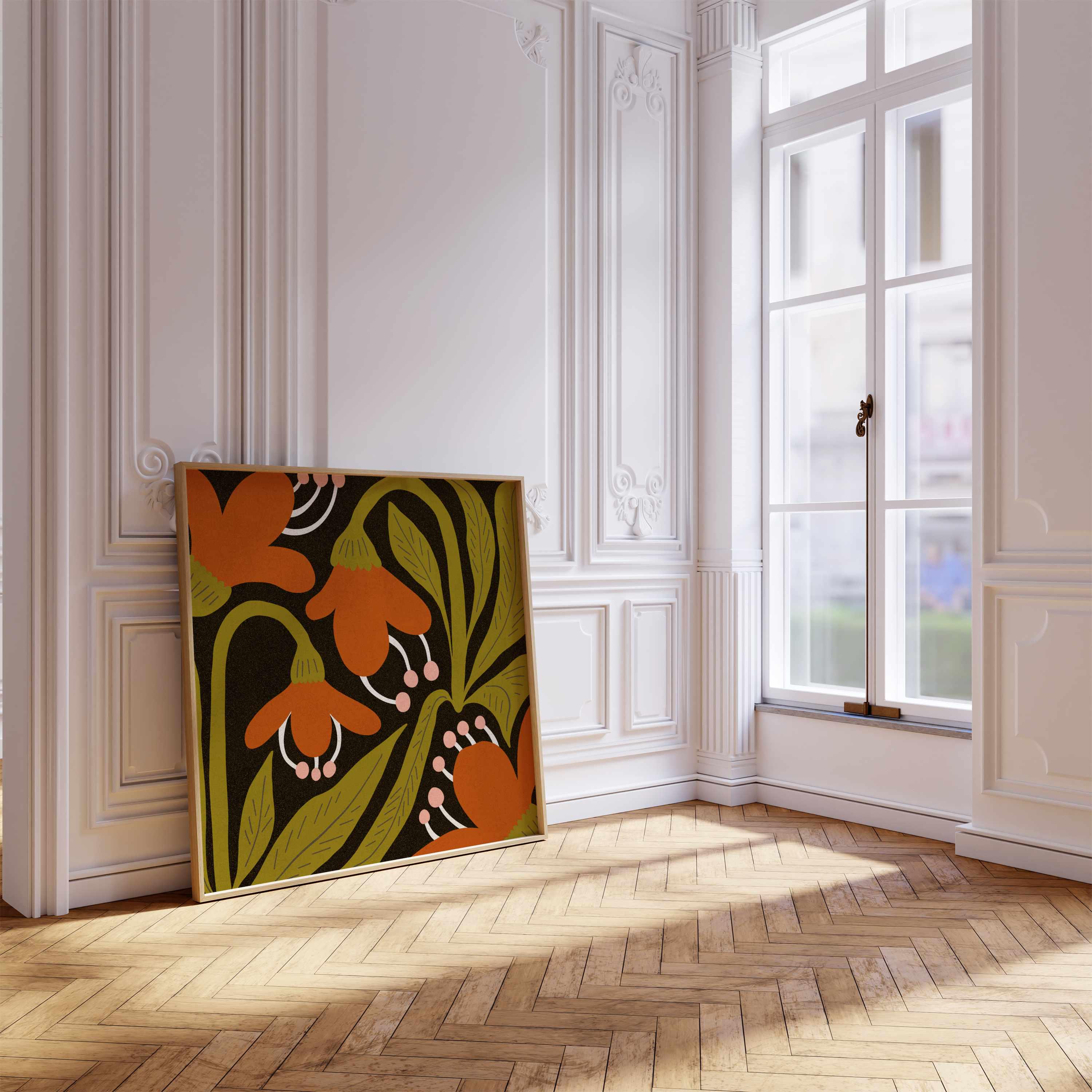 Retro 70s aesthetic floral art print with Matisse style flowers on a dark background. Abstract retro flower illustration poster, perfect for enhancing up any space, be it your living room, bedroom, office, or anywhere else. This print also makes a thoughtful and unique gift for your friend for a special event like Christmas, birthday, or housewarming.