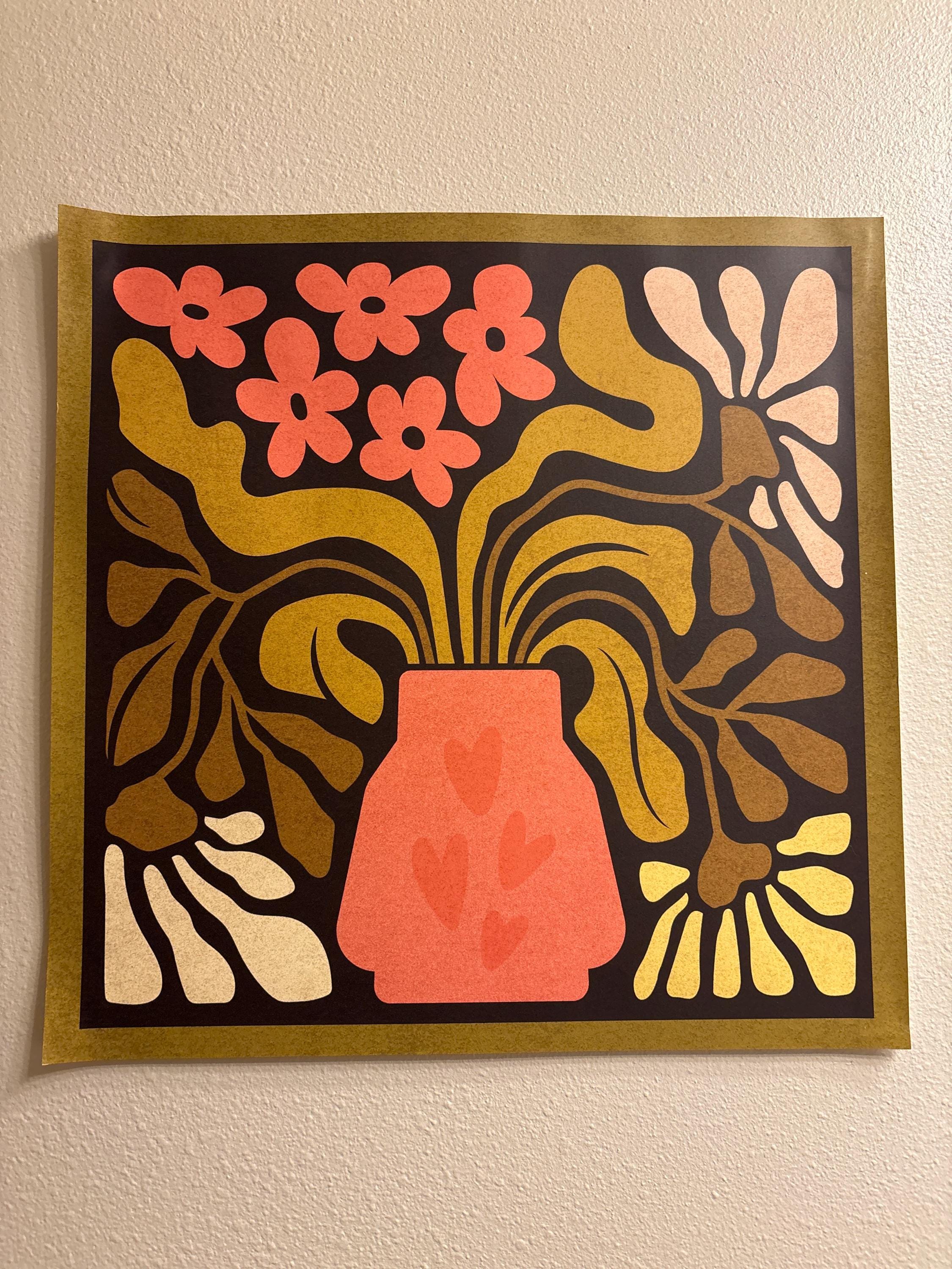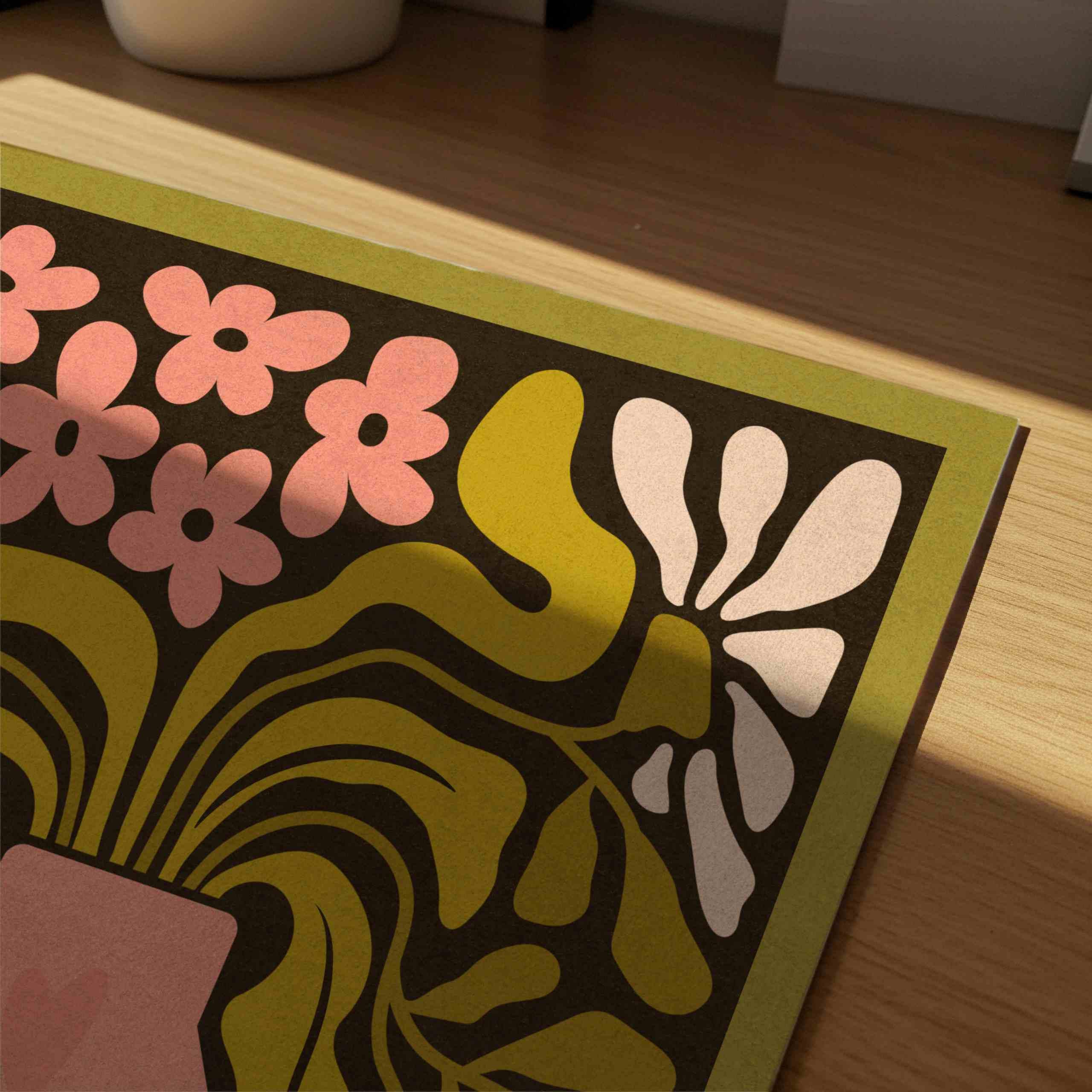 Bring a little retro sunshine into your space with this groovy 70s flower print. Inspired by Matisse-style cutouts and mid-century design, it’s the kind of piece that instantly livens up a wall, whether you’re going full-on maximalist or just want a pop of color. It looks great in a gallery wall, a reading nook, or wherever you feel like your space could use a little personality. Perfect if you’re into retro art, fun florals, or just love a bit of 60s and 70s charm in your space.