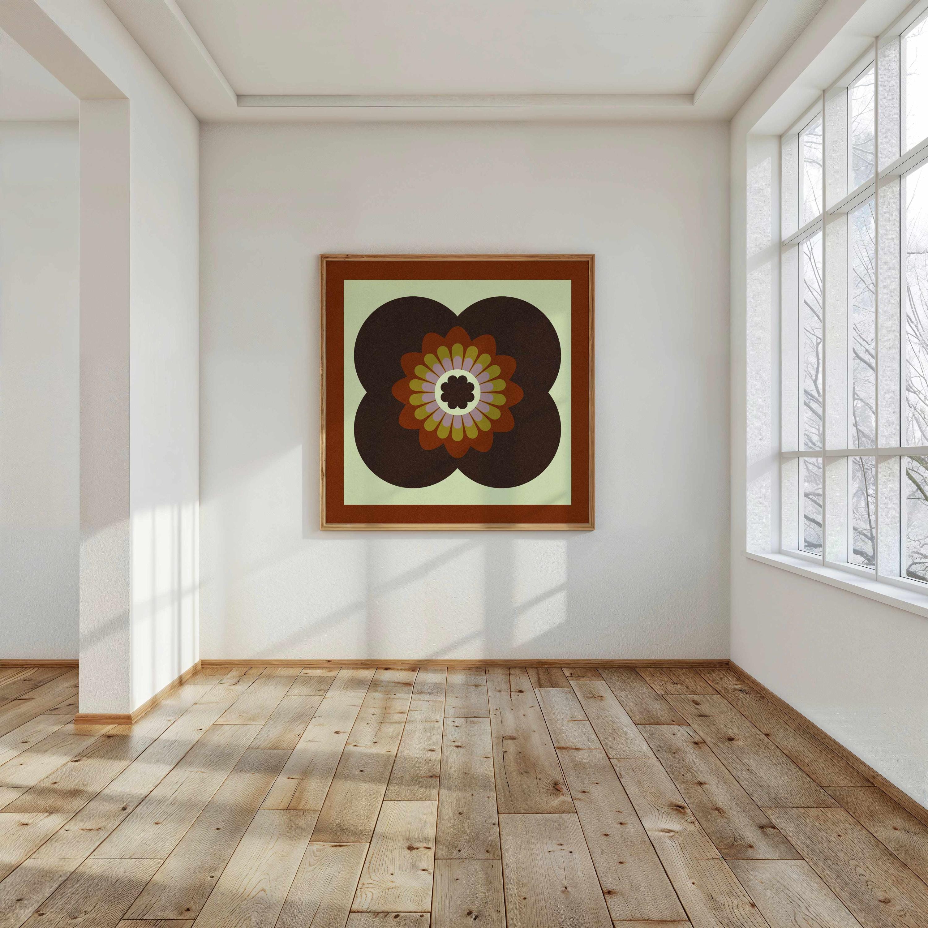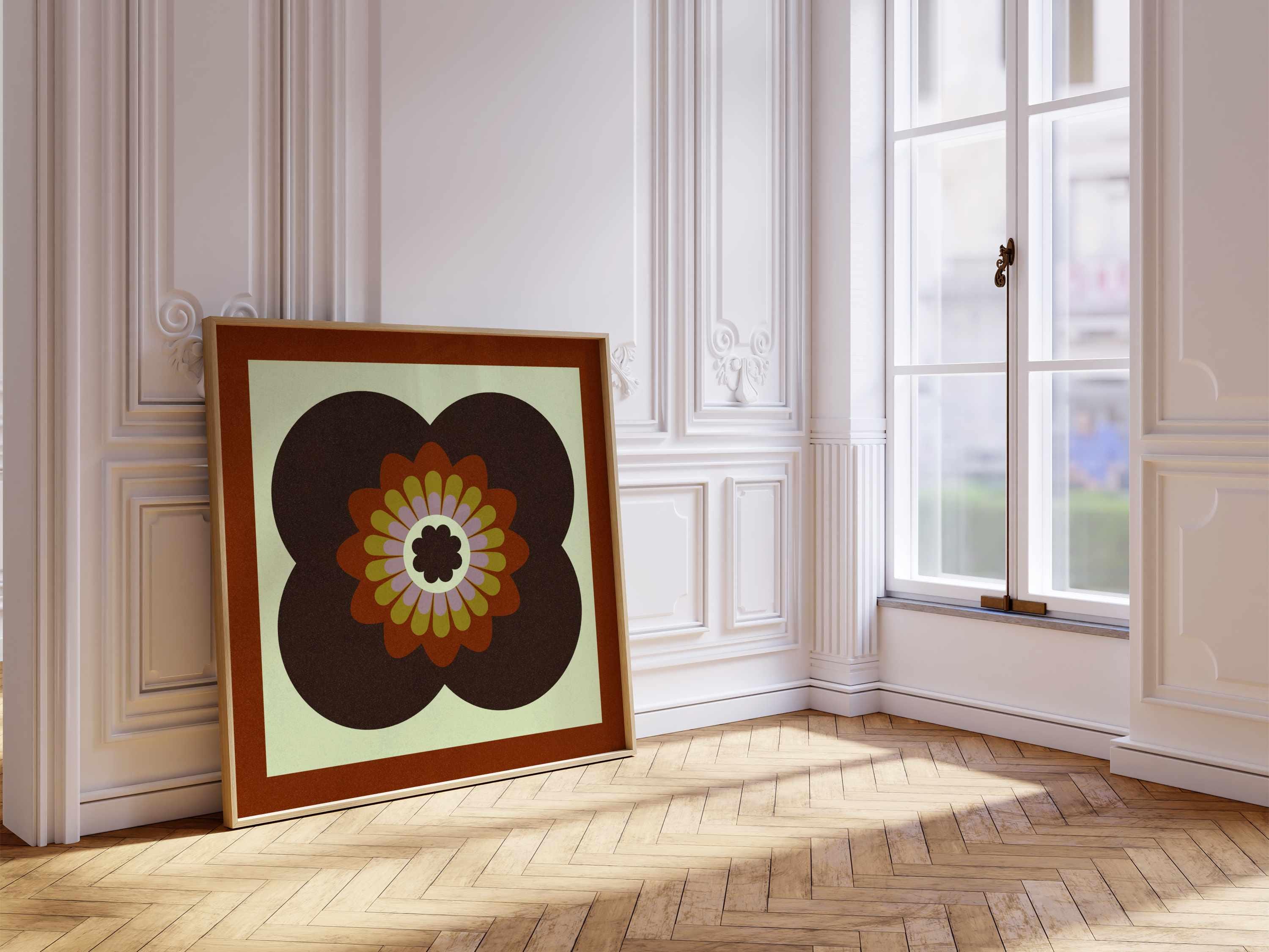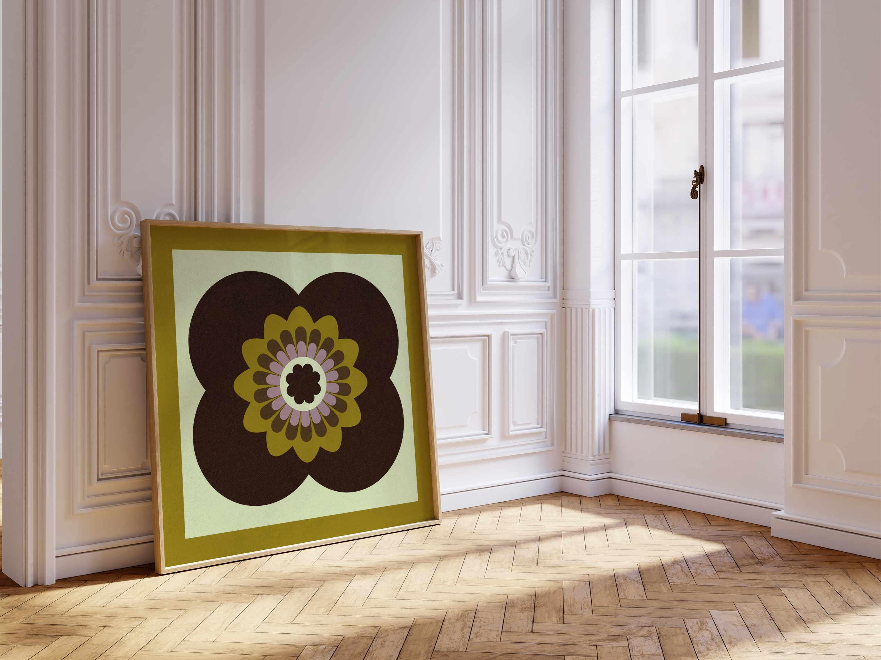 60s-70s aesthetic art print with groovy geometric flower in funky colors. Abstract retro flower illustration poster, perfect for enhancing up any space, be it your living room, bedroom, office, dorm room, or anywhere else. This print also makes a thoughtful and unique gift for your friend for a special event like Christmas, birthday, or housewarming.