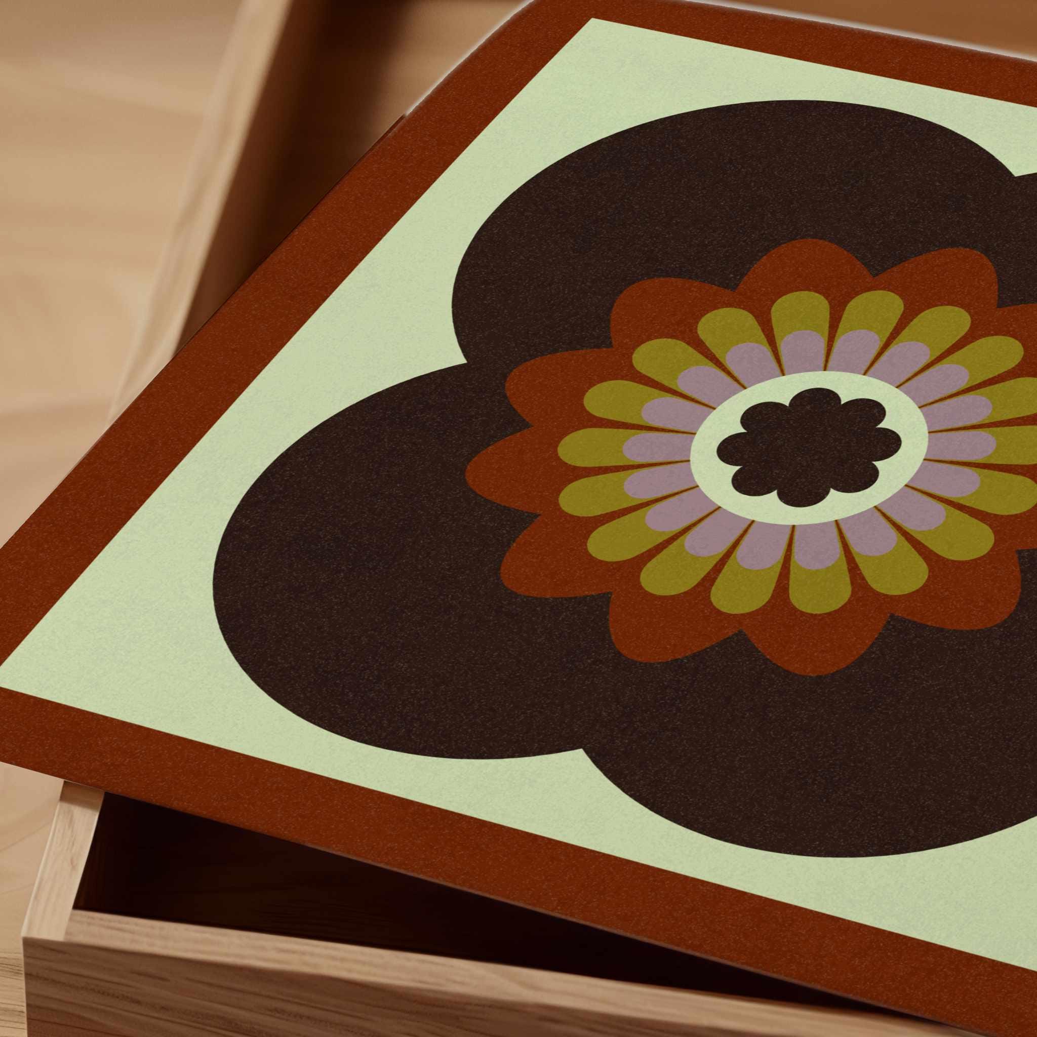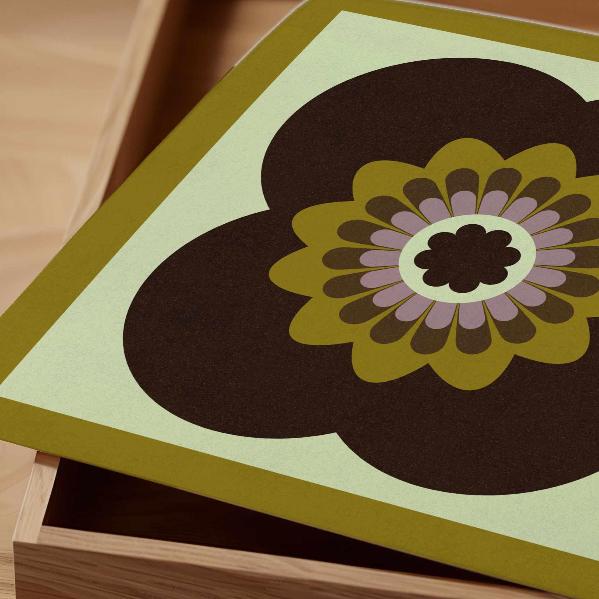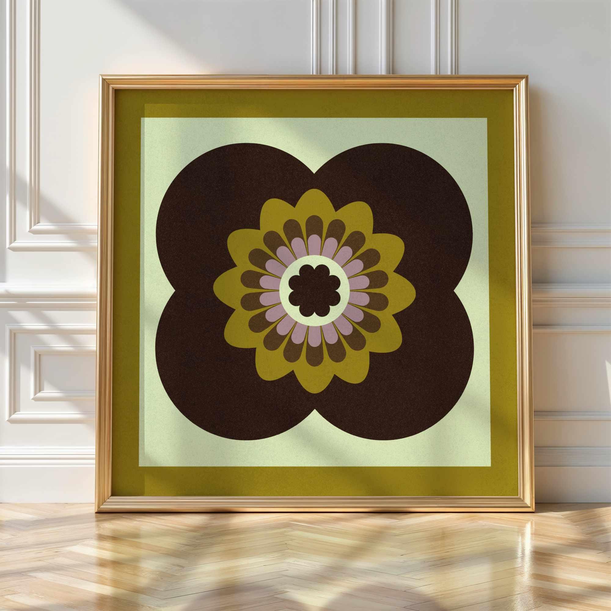 60s-70s aesthetic art print with groovy geometric flower in funky colors. Abstract retro flower illustration poster, perfect for enhancing up any space, be it your living room, bedroom, office, dorm room, or anywhere else. This print also makes a thoughtful and unique gift for your friend for a special event like Christmas, birthday, or housewarming.