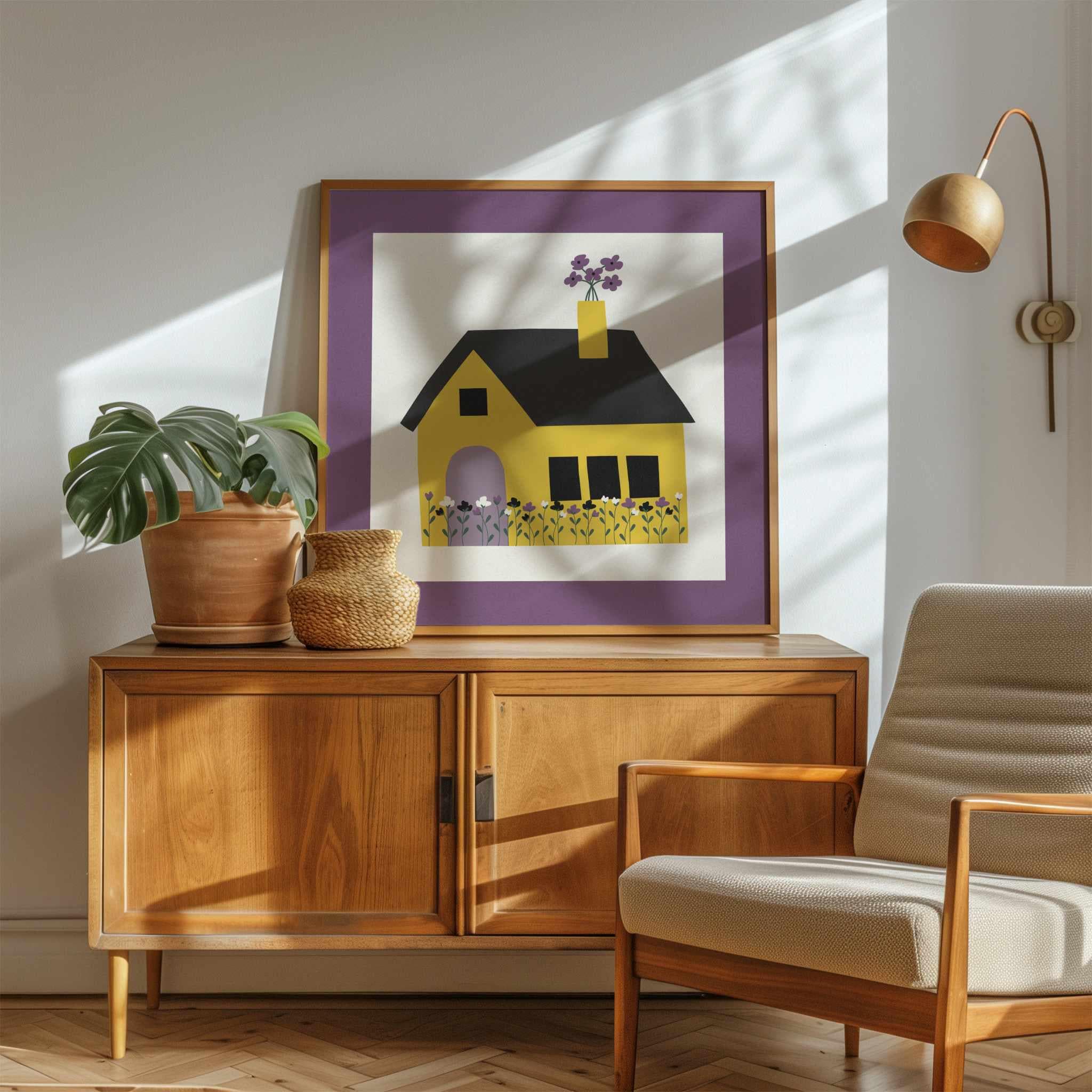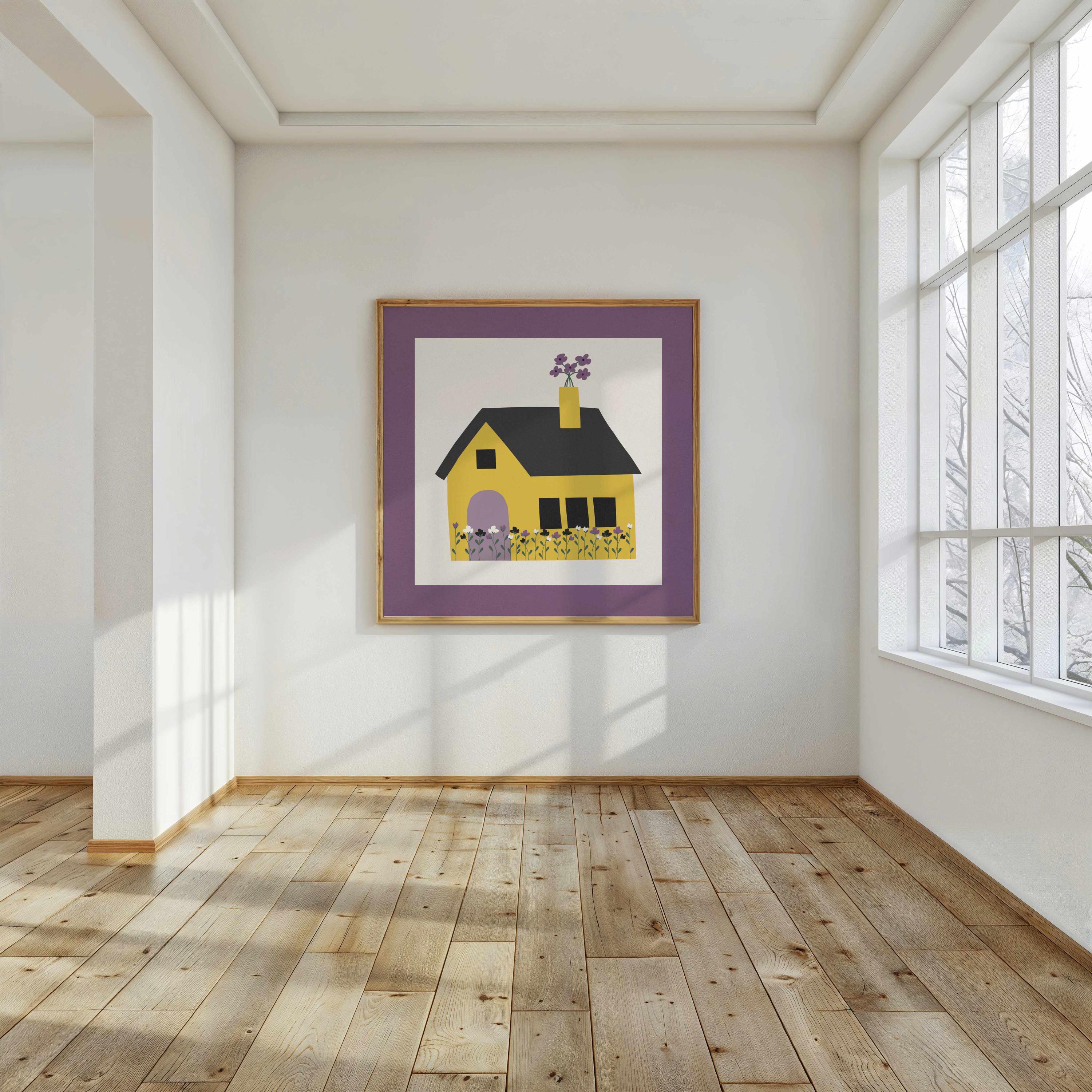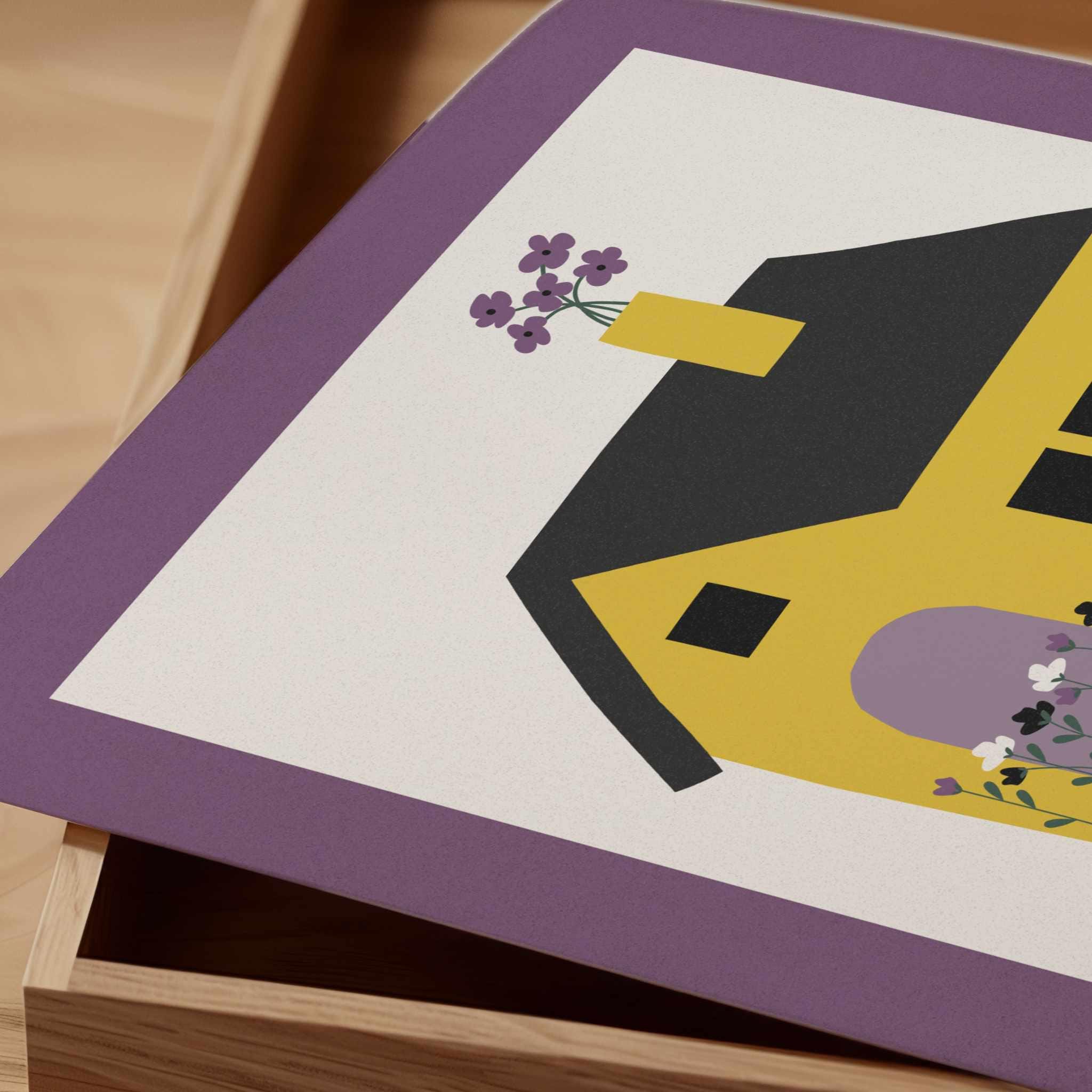 Minimal art print featuring a cute house that quietly celebrates identity through color. This piece uses the color palette of the nonbinary pride flag translated into blooming flowers and cozy home-like atmosphere that feels personal and open to interpretation. It's subtle enough for any room, and meaningful enough to carry weight. A gentle way to mark who you are, or support someone you love. ♡