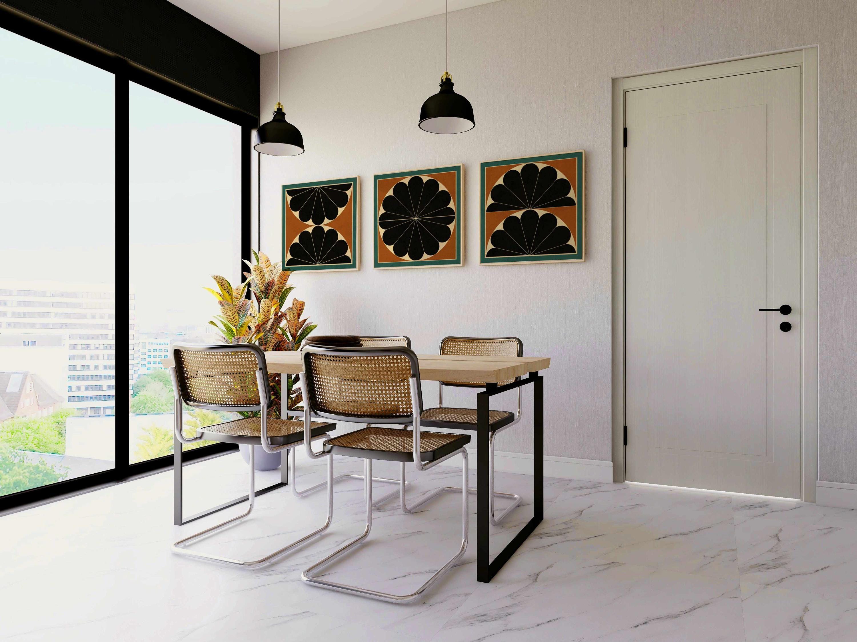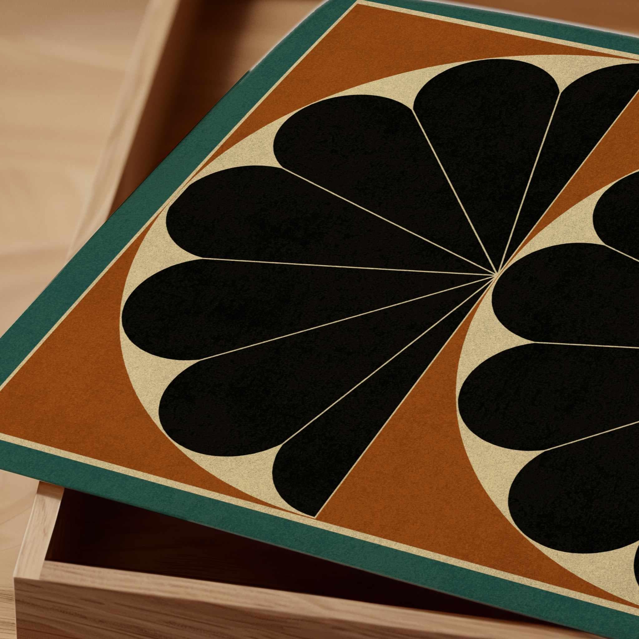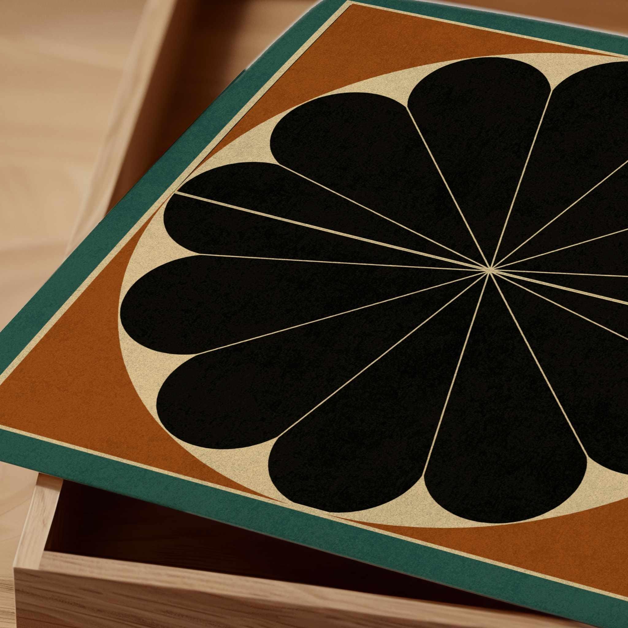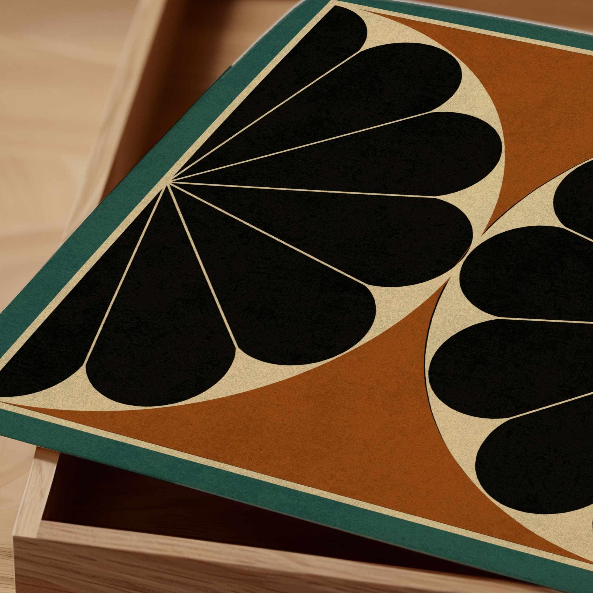 Abstract mid-century print set featuring geometric floral elements in a bold color palette of burnt orange, teal, cream and black. This gallery wall set is perfect for enhancing up any modern boho, mid century, or contemporary space, be it your living room, bedroom, office, dining room, or anywhere else.