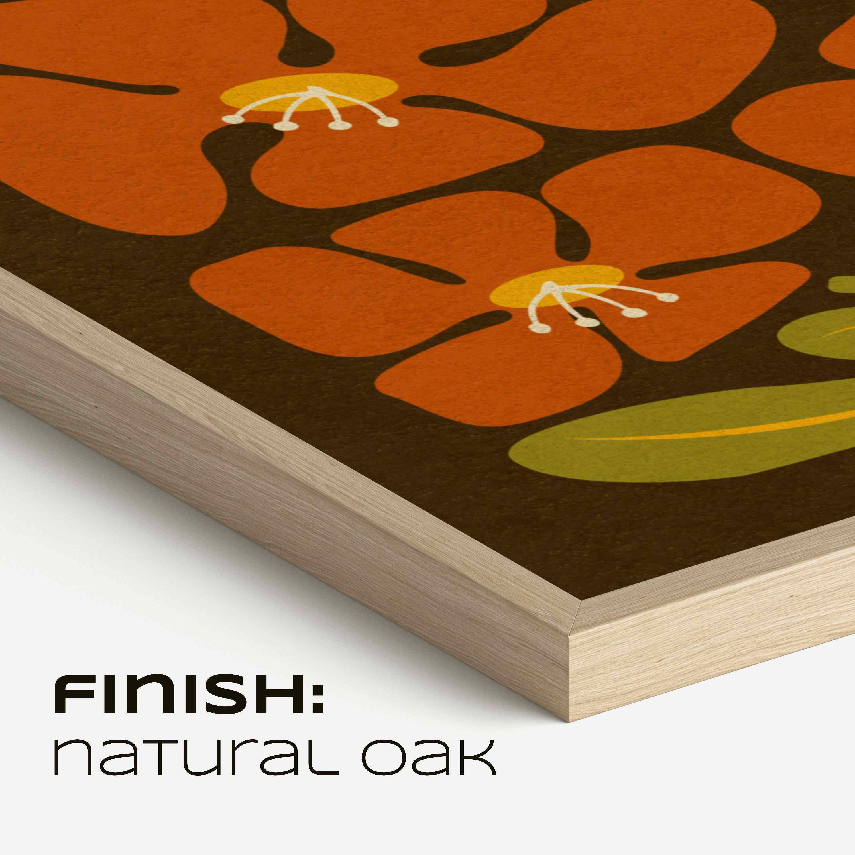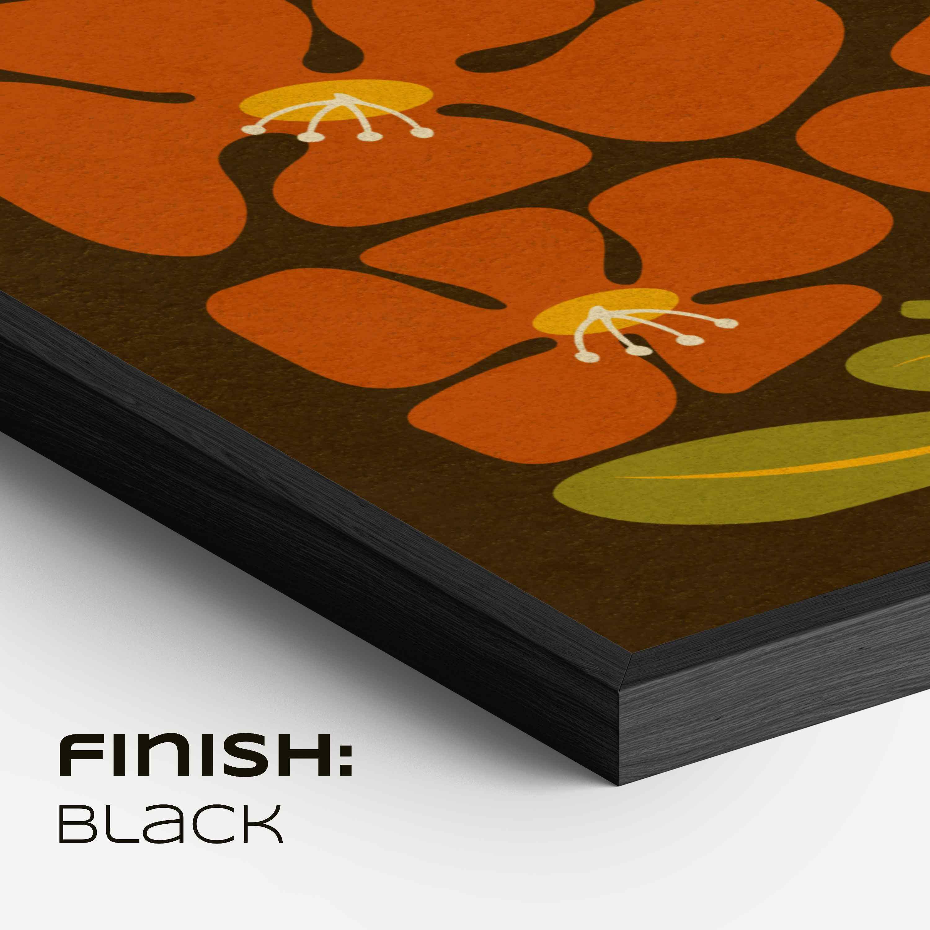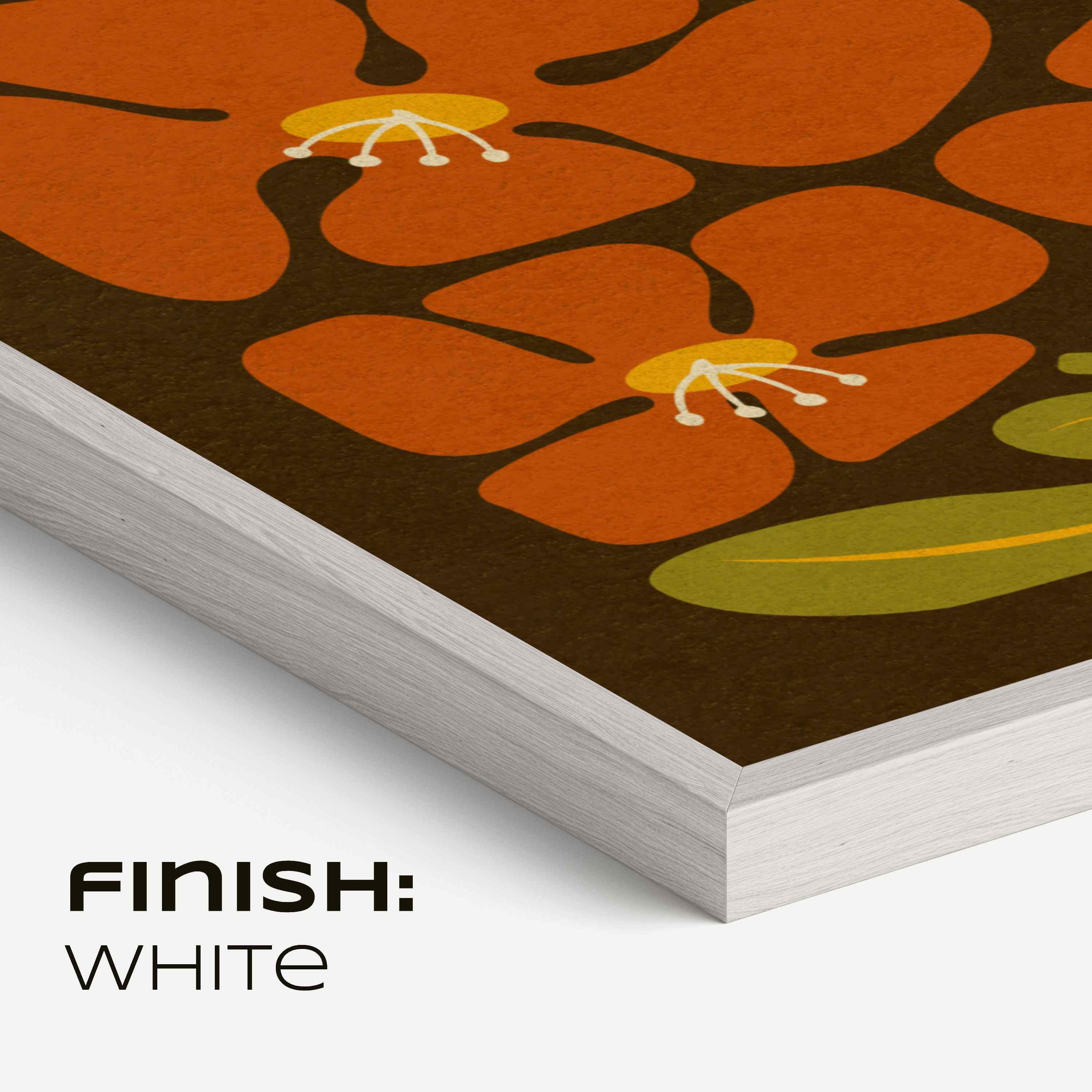 Framed retro floral print set featuring abstract Matisse-inspired botanical shapes in rich, nostalgic tones of mustard yellow, burnt orange-red, olive green, and cozy brown.