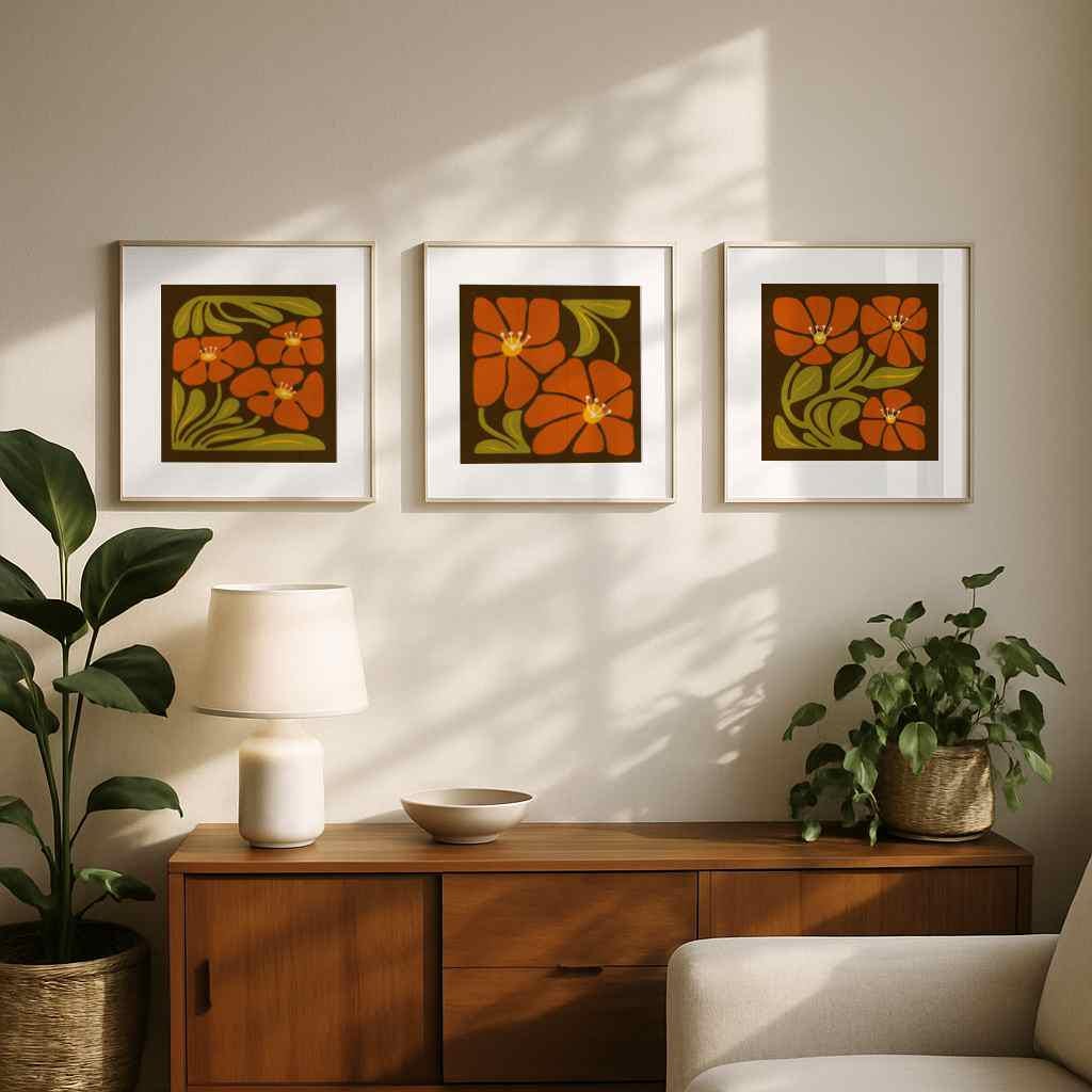 This square trio adds a funky 60s-70s vibe to any room – perfect for eclectic, boho, and vintage-inspired interiors.